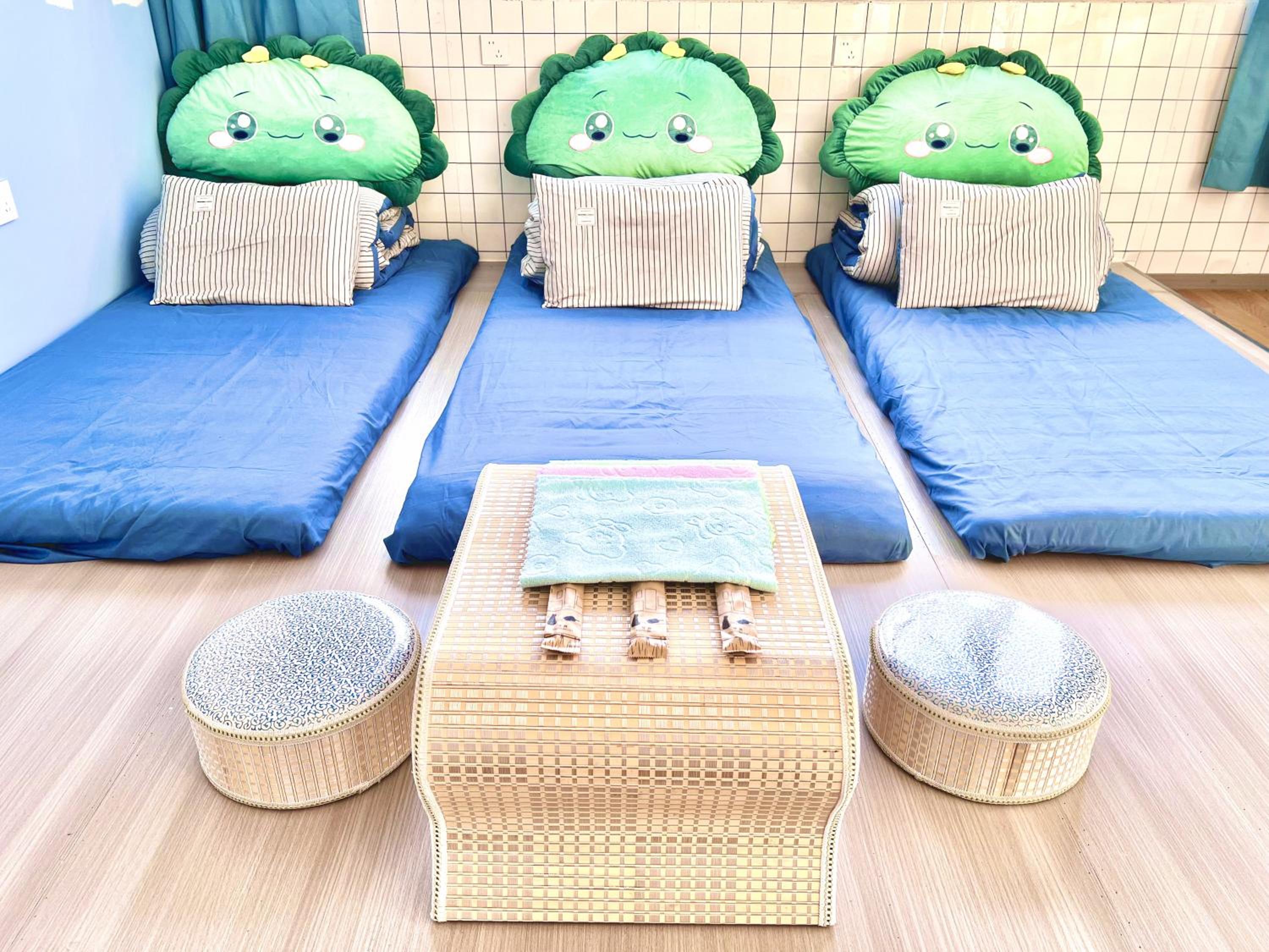 Les lits, des mini matelas tout fins, posés au sol. Donc, assez dur. La porte d 'entrée qui claque matin et soir, les escaliers qui grincent, les gens des étages supérieurs qui sautent ou courent, et les gens du restaurant à côté qui restent dehors toute la nuit devant le fenêtre . Bref ,pas le top pour bien dormir.