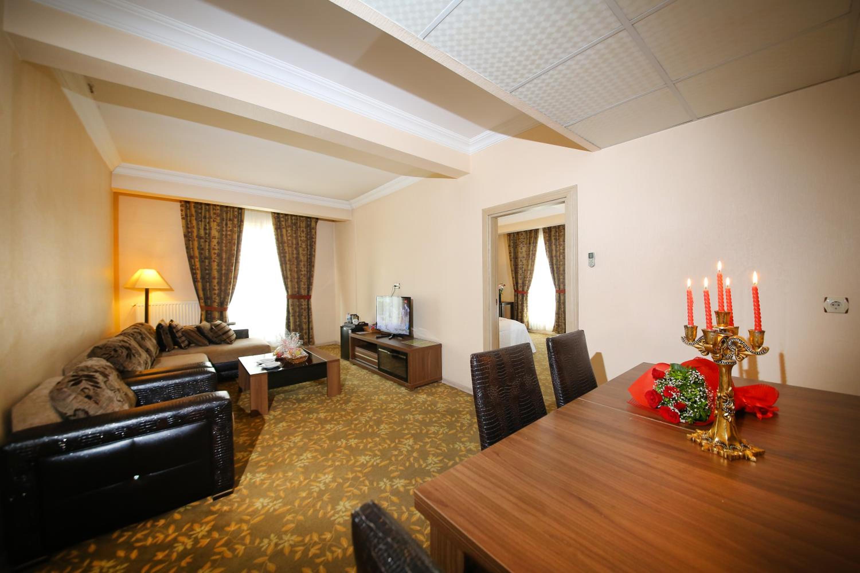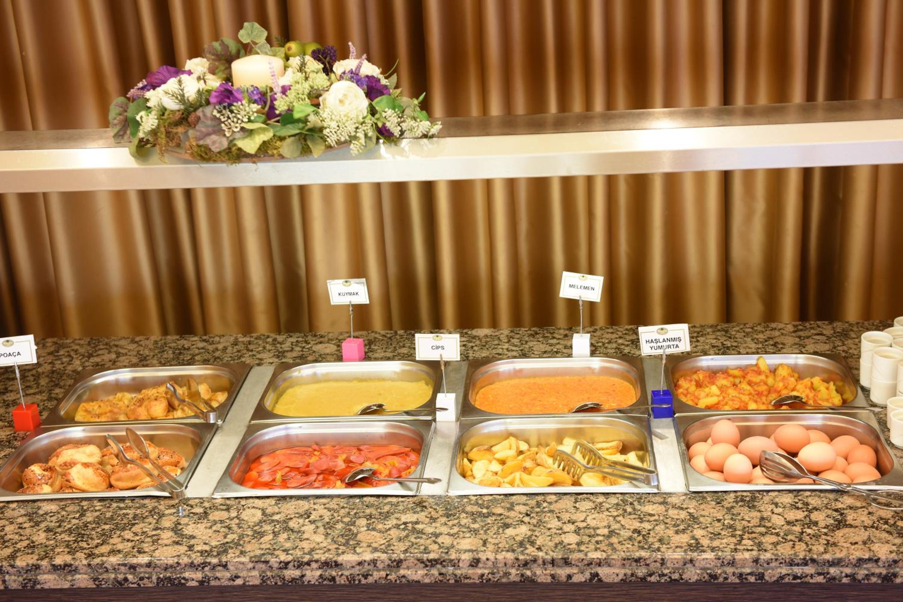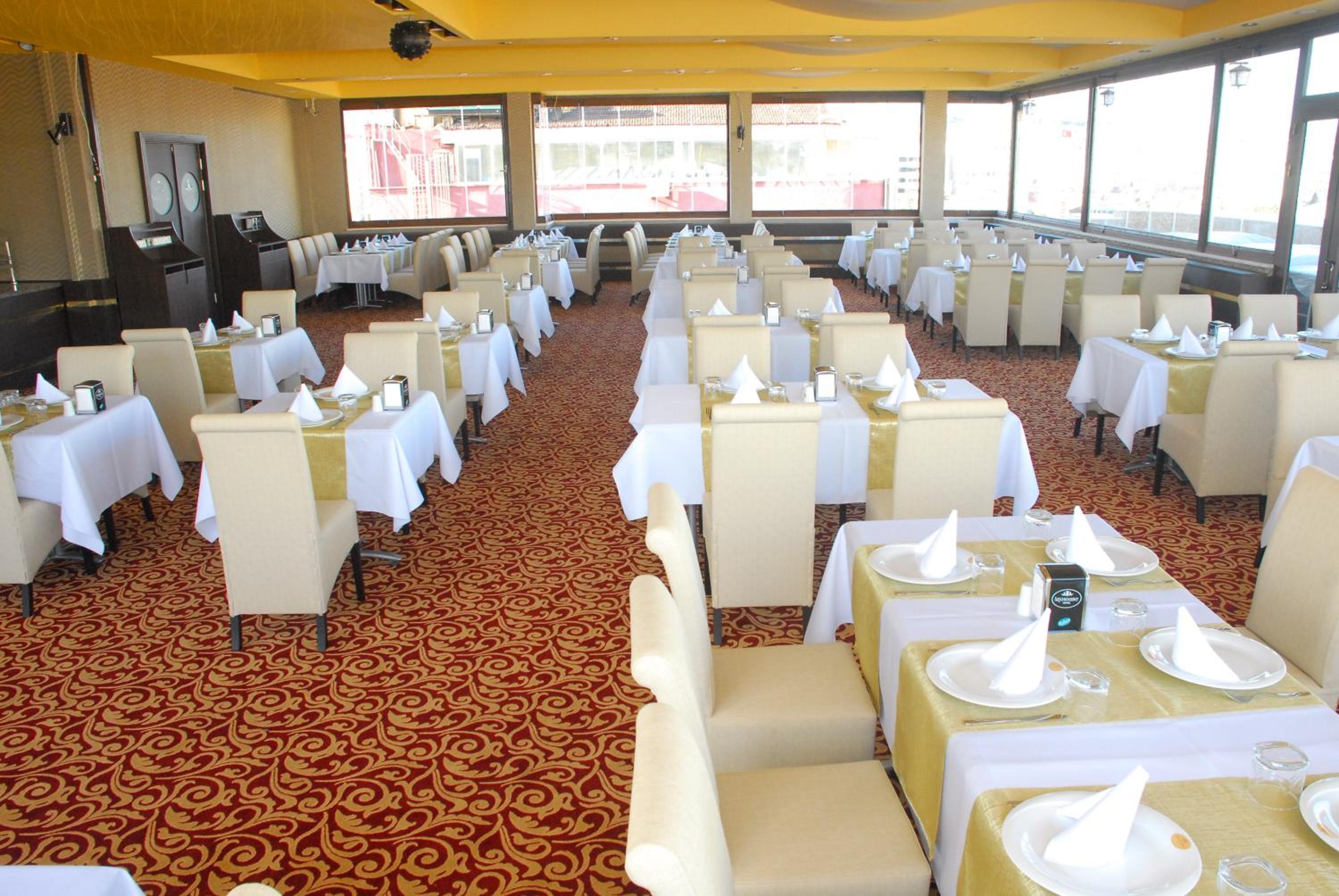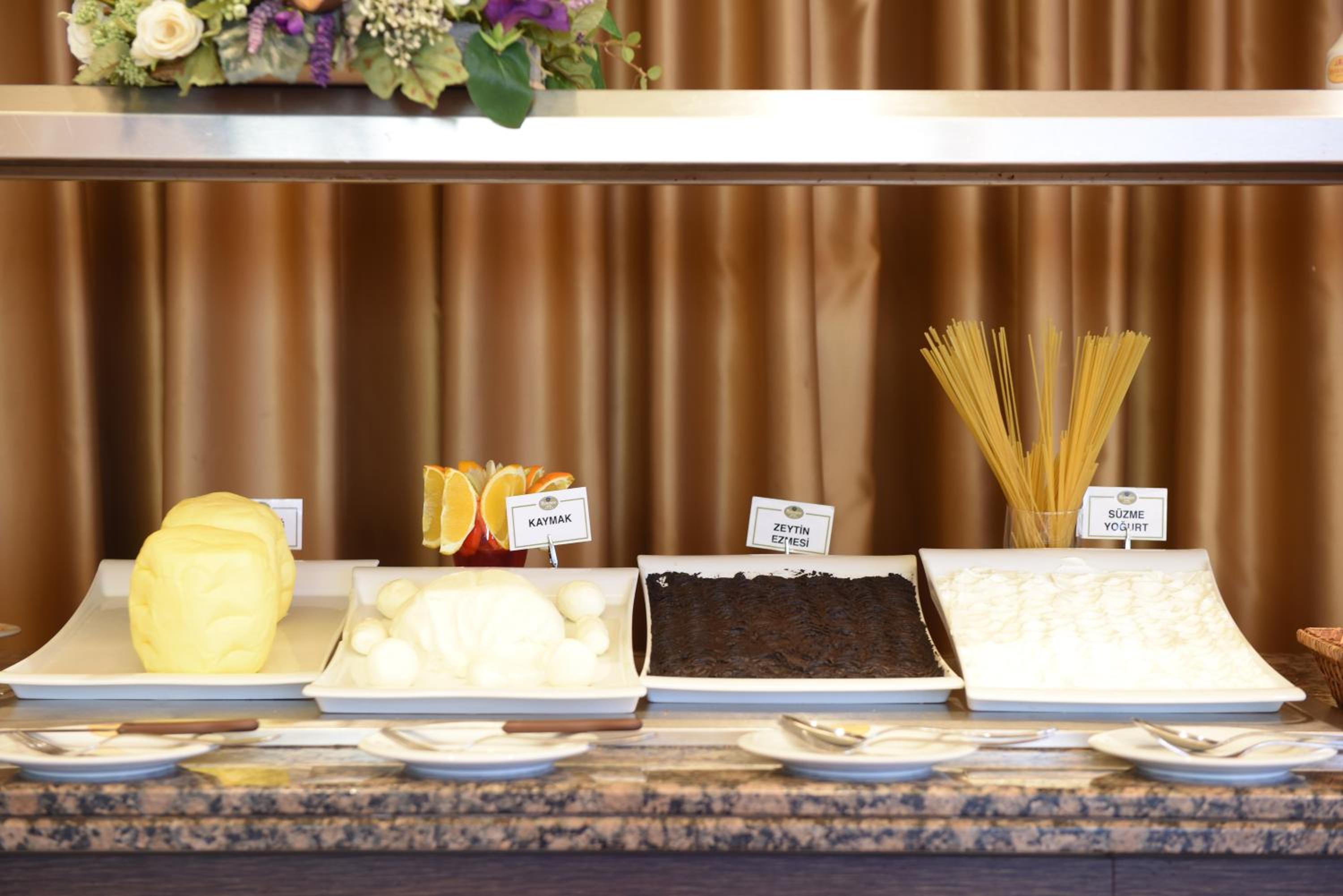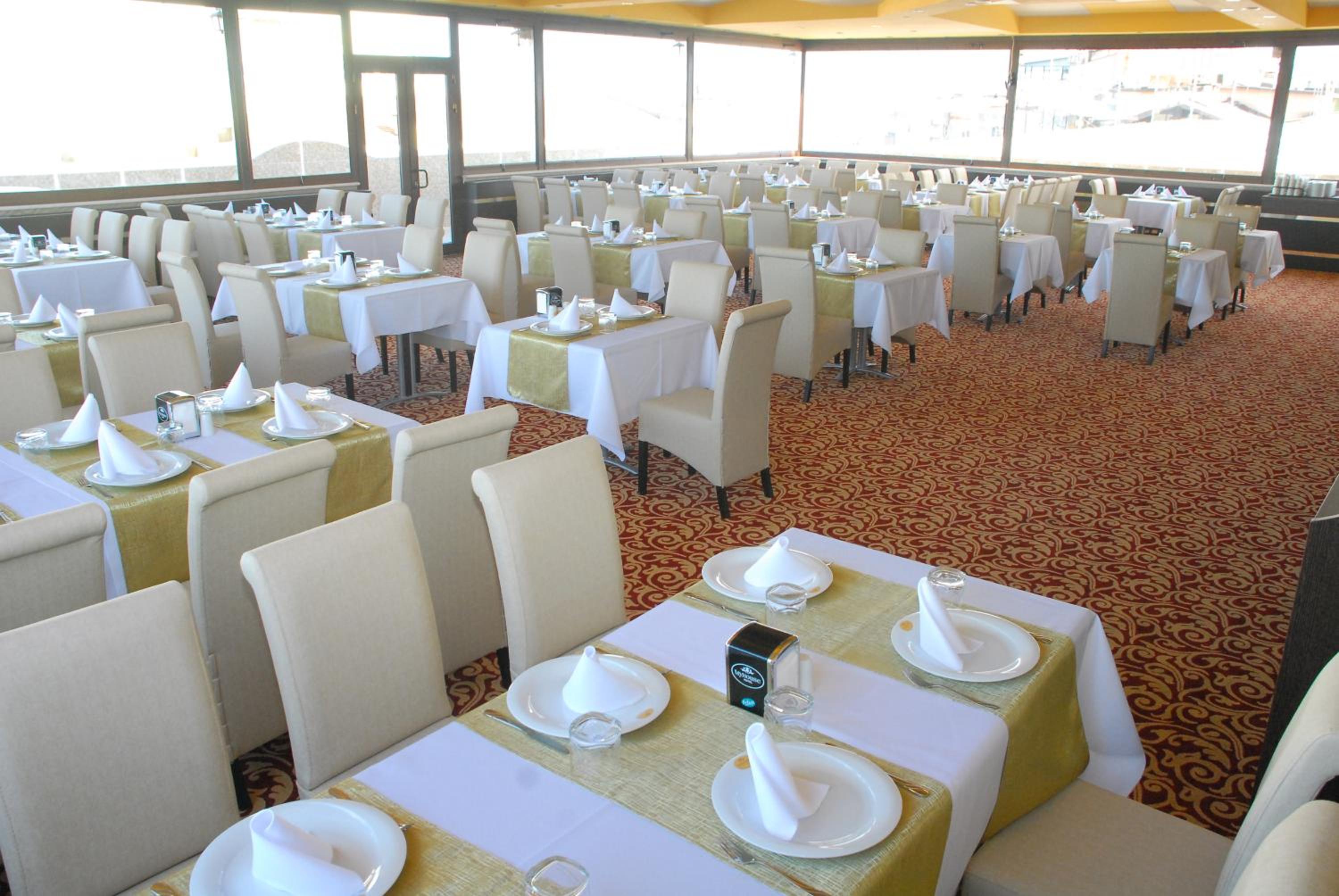 Indulge in a delightful culinary experience at the hotel's two on-site restaurants offering a breakfast buffet with a variety of options and a choice between traditional Ottoman and Turkish cuisine for dinner. Craving a snack or a cold beverage? Visit the small supermarket within the hotel premises.