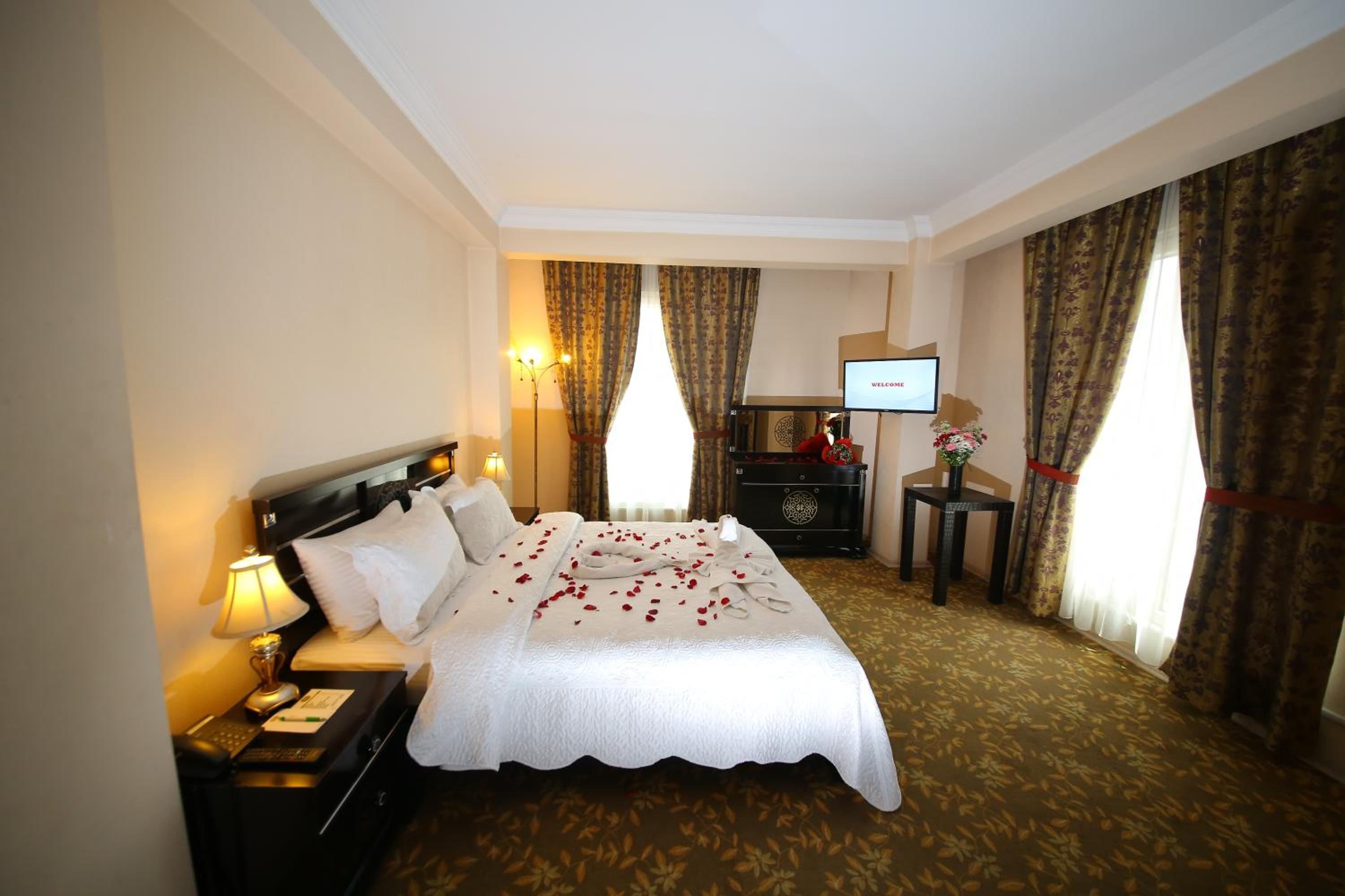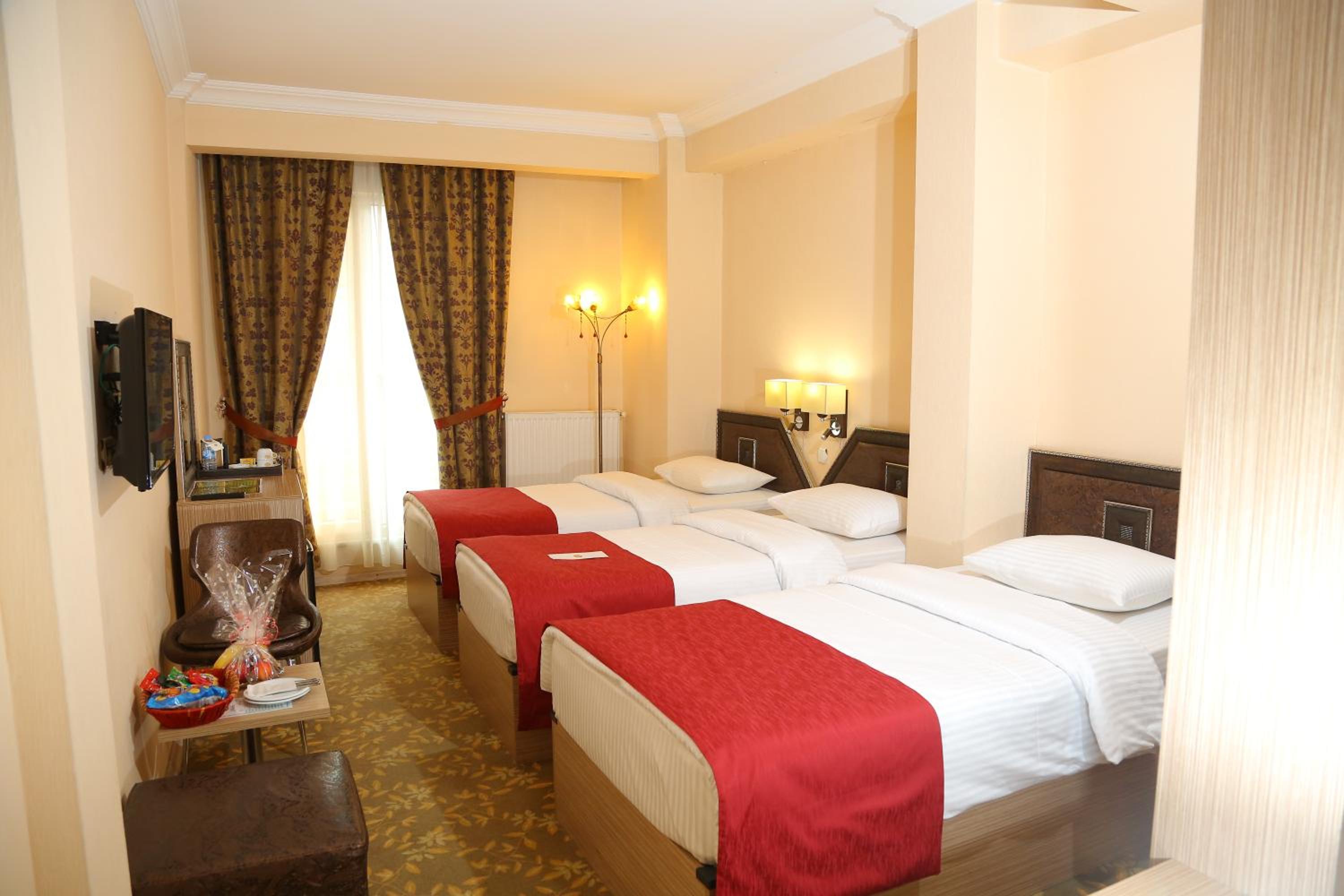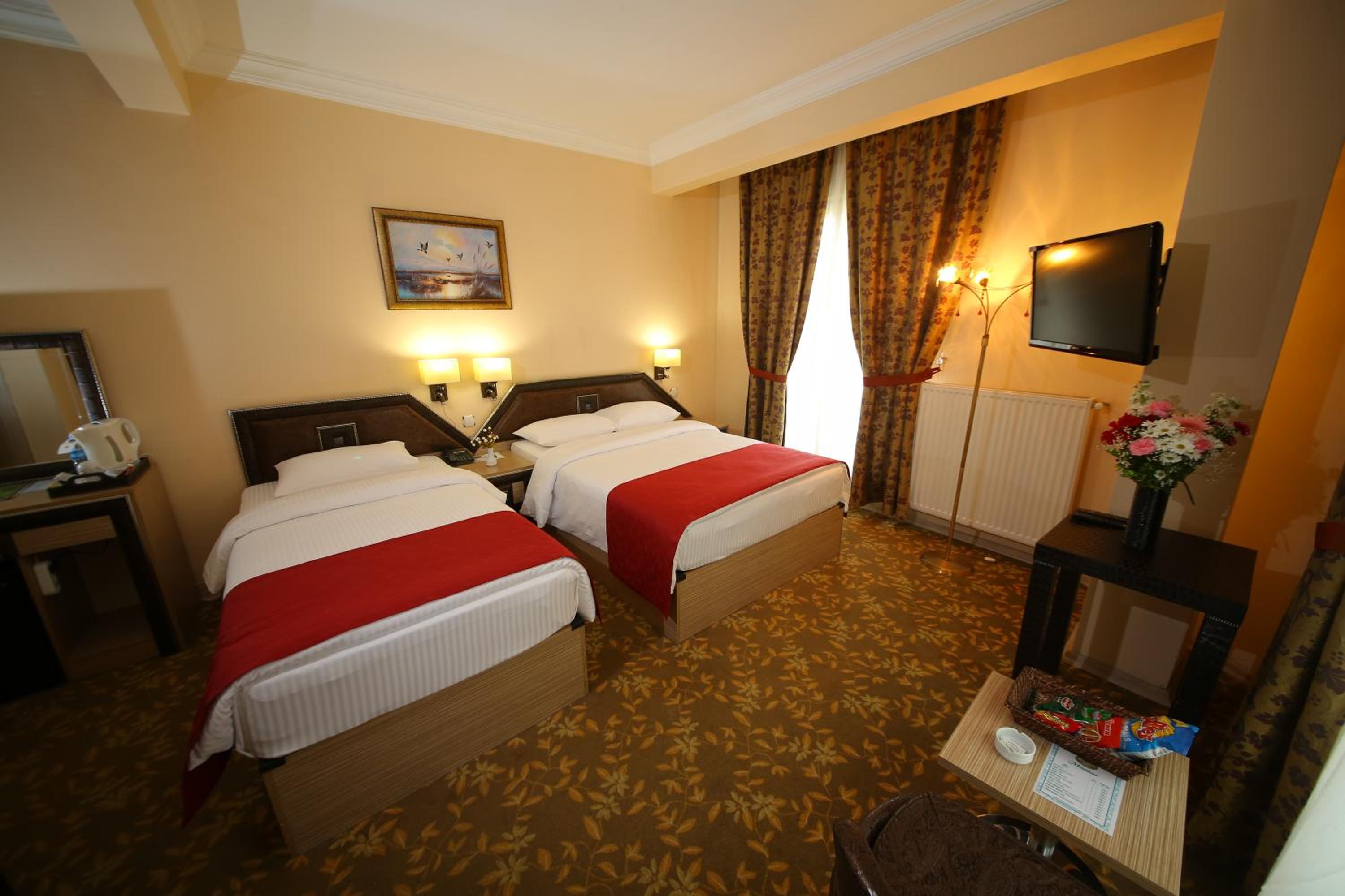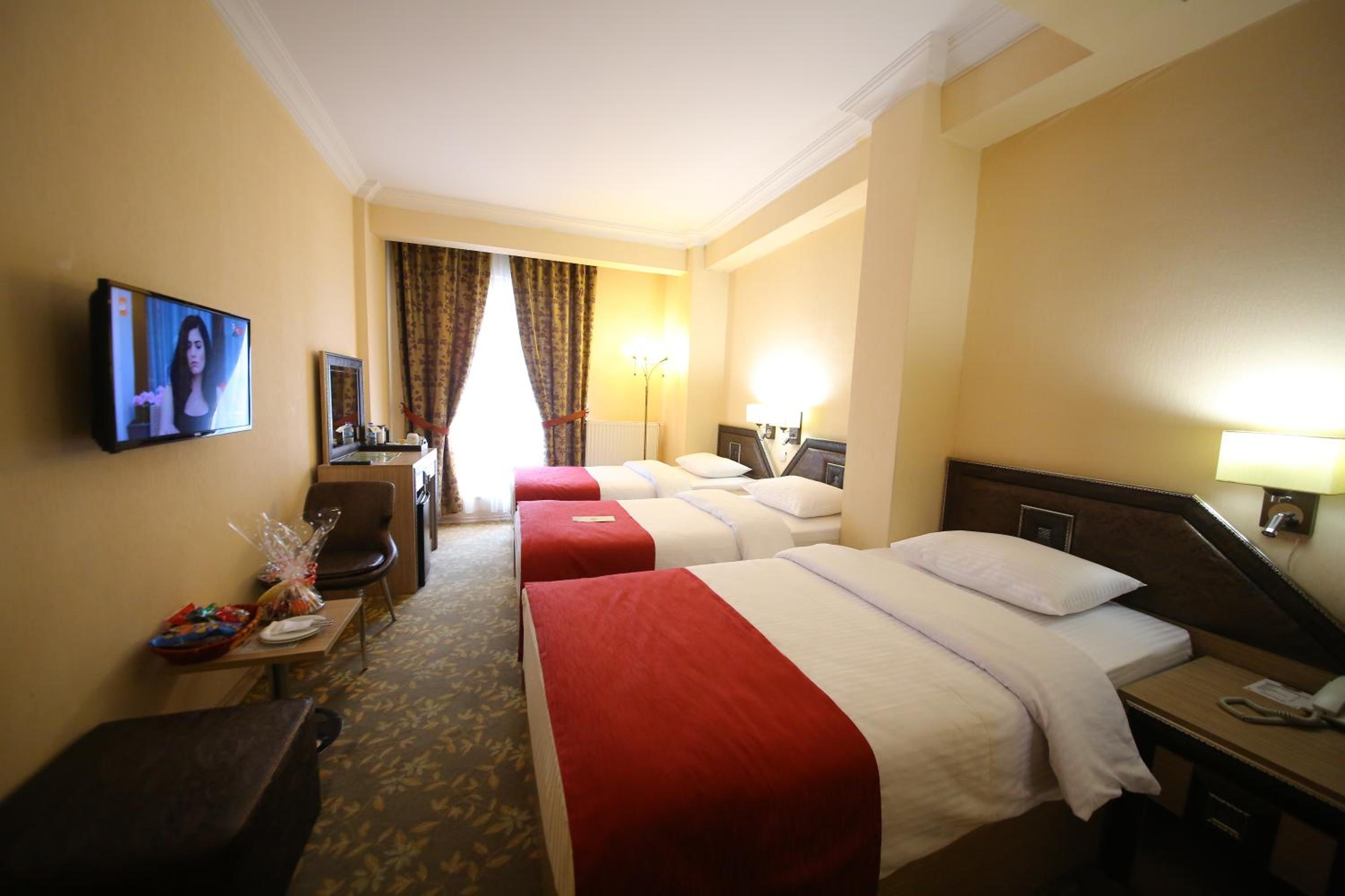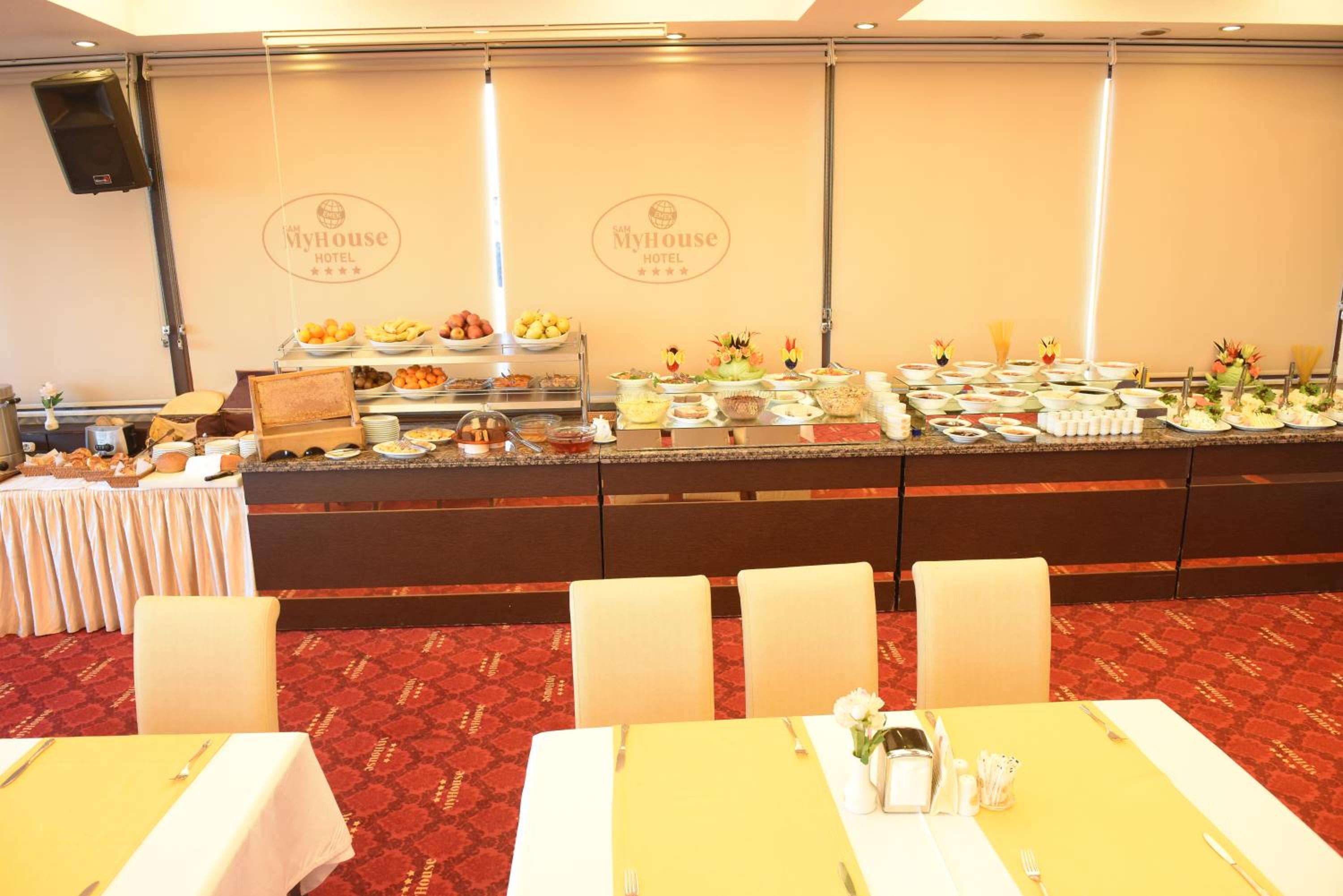 Indulge in a delightful culinary experience at the hotel's two on-site restaurants offering a breakfast buffet with a variety of options and a choice between traditional Ottoman and Turkish cuisine for dinner. Craving a snack or a cold beverage? Visit the small supermarket within the hotel premises.
