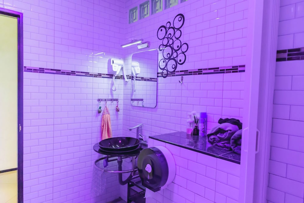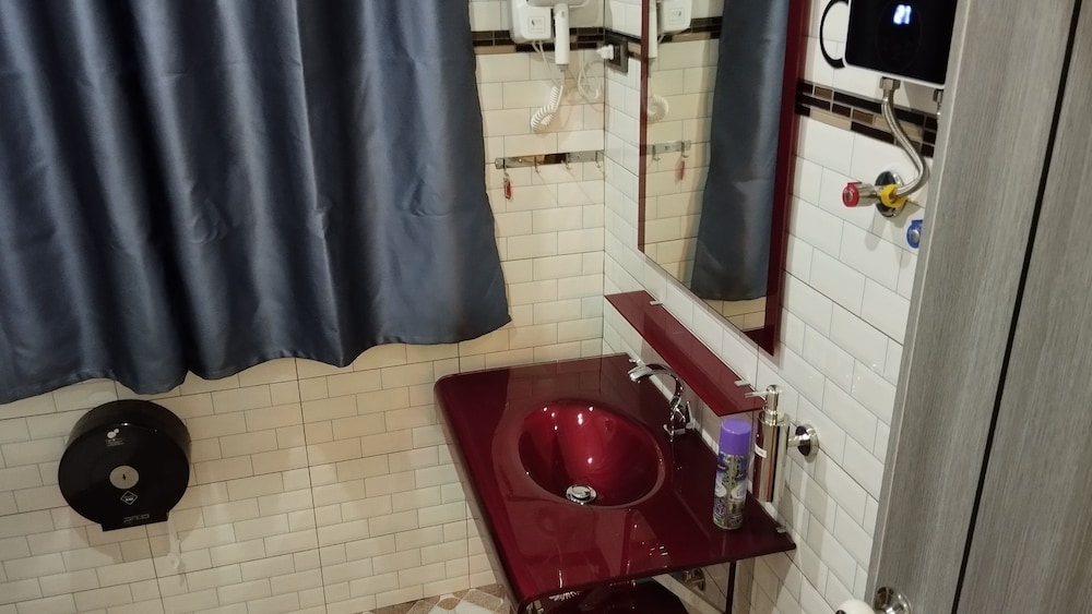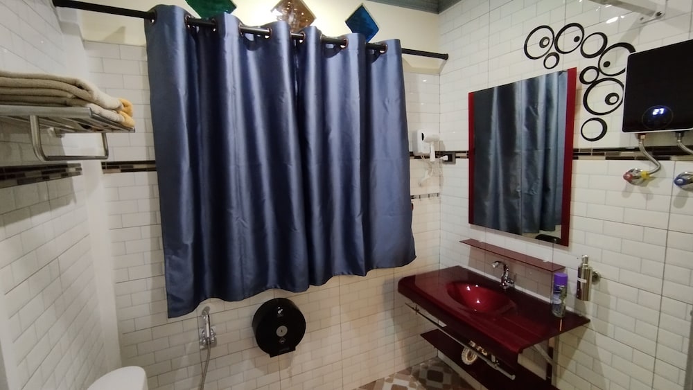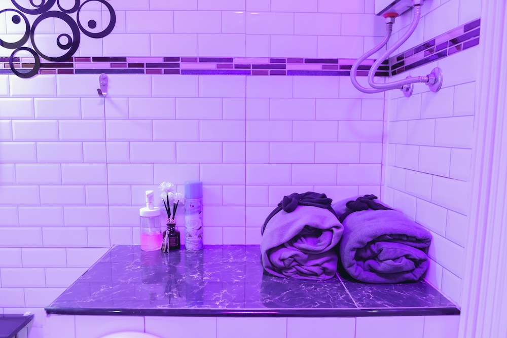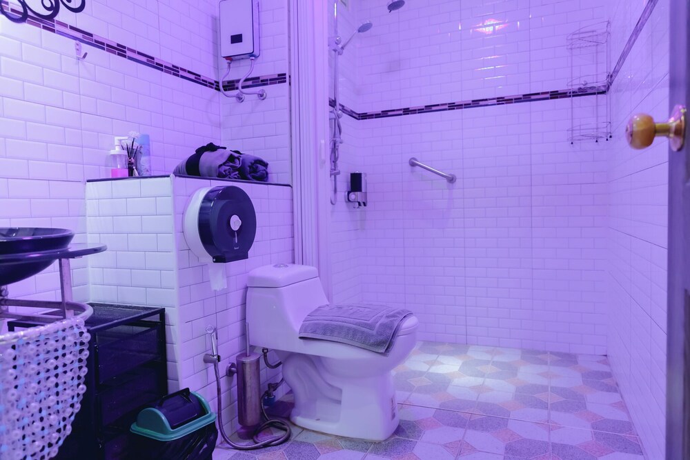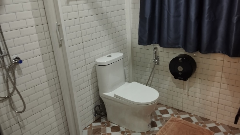 - The shower and wash basin could have been separated better by using a glass door maybe, which could prevent the bathroom floor from getting all wet after the shower.
