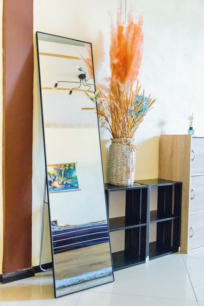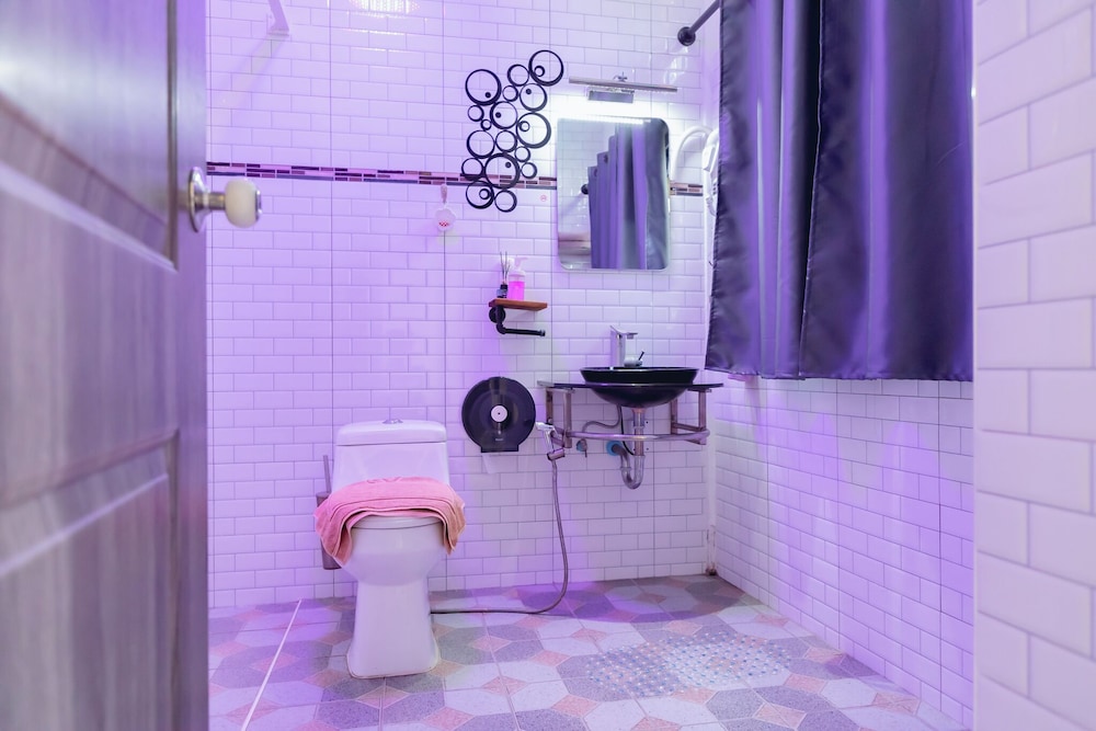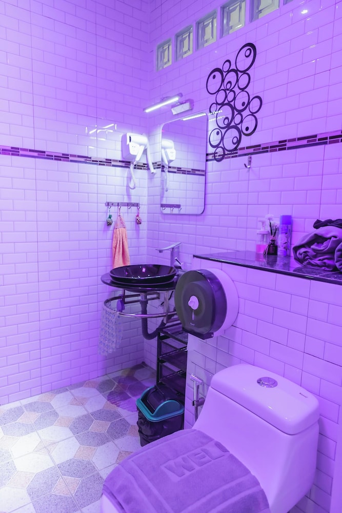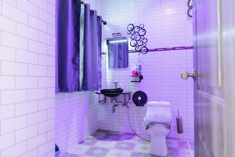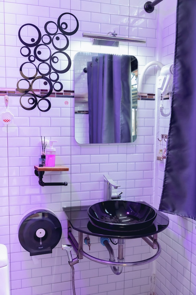 - The shower and wash basin could have been separated better by using a glass door maybe, which could prevent the bathroom floor from getting all wet after the shower.