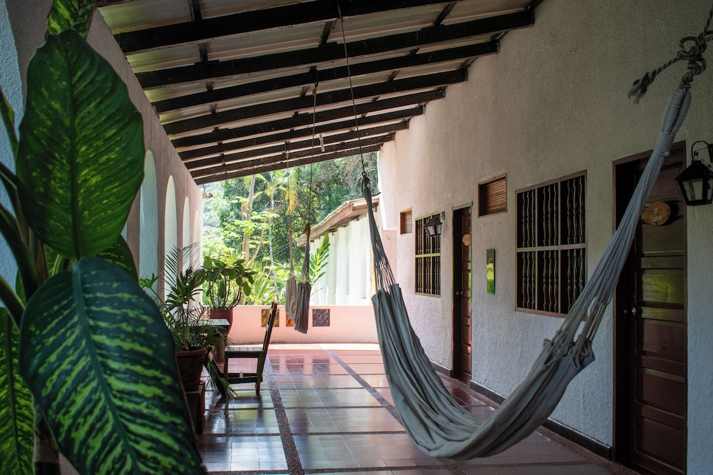 Imaginez un ancien couvent qui a conservé son âme, une terrasse qui offre une vue spectaculaire sur les montagnes, manger un délicieux déjeuner au son des ailes des colibris, une équipe ( toujours un membre sur place qui parle bien l’anglais) absolument efficace ( merci pour vos nombreux contacts pour les visites et taxis) , des chambres propres et une bonne pression dans la douche, le tout à environ 200 m de la ville ! Bref, c’est l’hôtel idéal à Minca et je le recommande assurément! 3 nuits et j’y serais restée! Apportez un bon roman, les hamacs sont confortables!