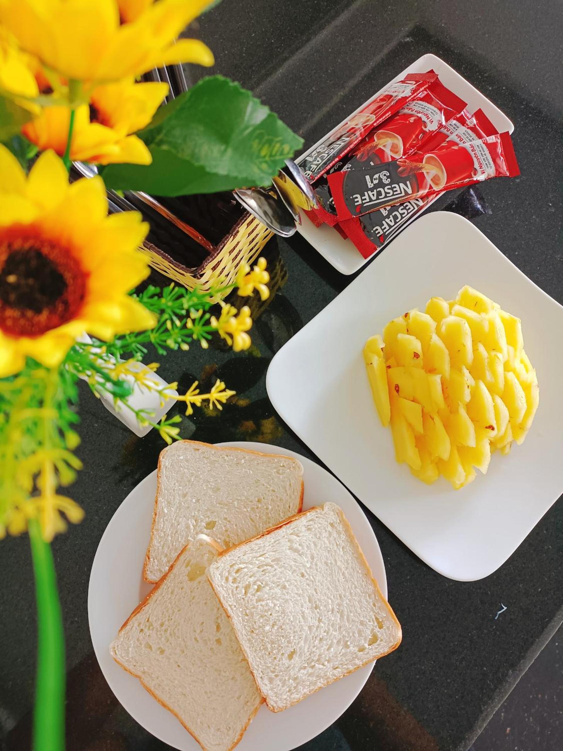 Phòng kèm bữa sáng với một vài lựa chọn khá ổn, mà ở nhiều ngày thì ăn đi ăn lại cũng hơi ngán :)))) Bánh mì ăn tạm ổn. Bún bò bình thường. Có cà phê muối ngon, không muốn ăn sáng thì xuống uống ly cà phê chill chill cũng được.