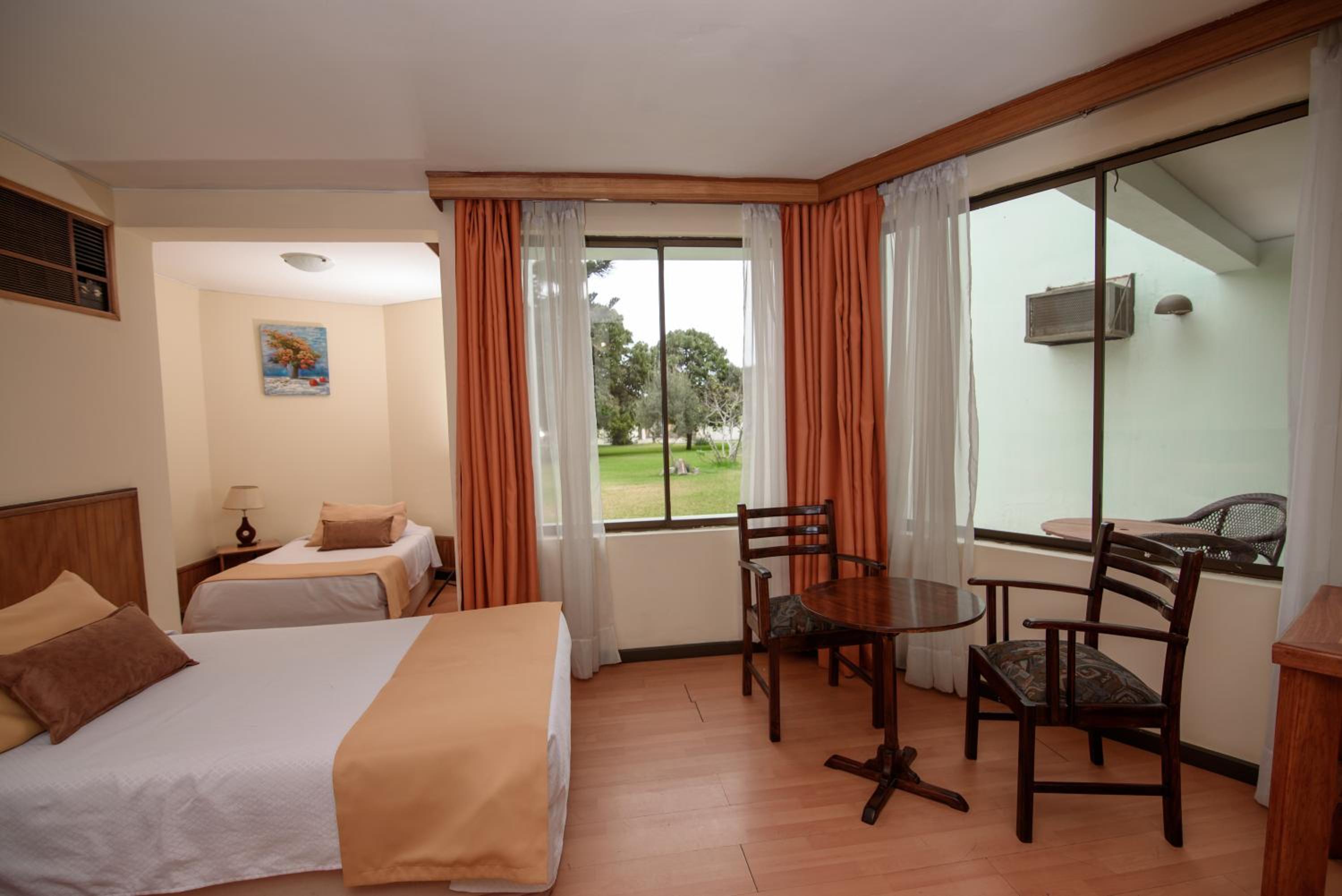 La amplitud de las habitaciones, el aire acondicionado, el parque, la piscina, la amabilidad del personal.