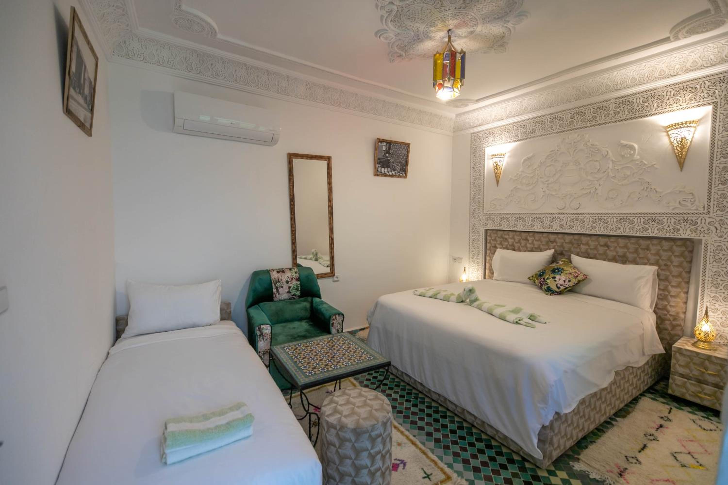 Ubicación excelente para descubrir Fes casco antiguo, el edificio muy bonito con una decoración exquisita, personal muy profesional y amable, la habitación espaciosa y comoda