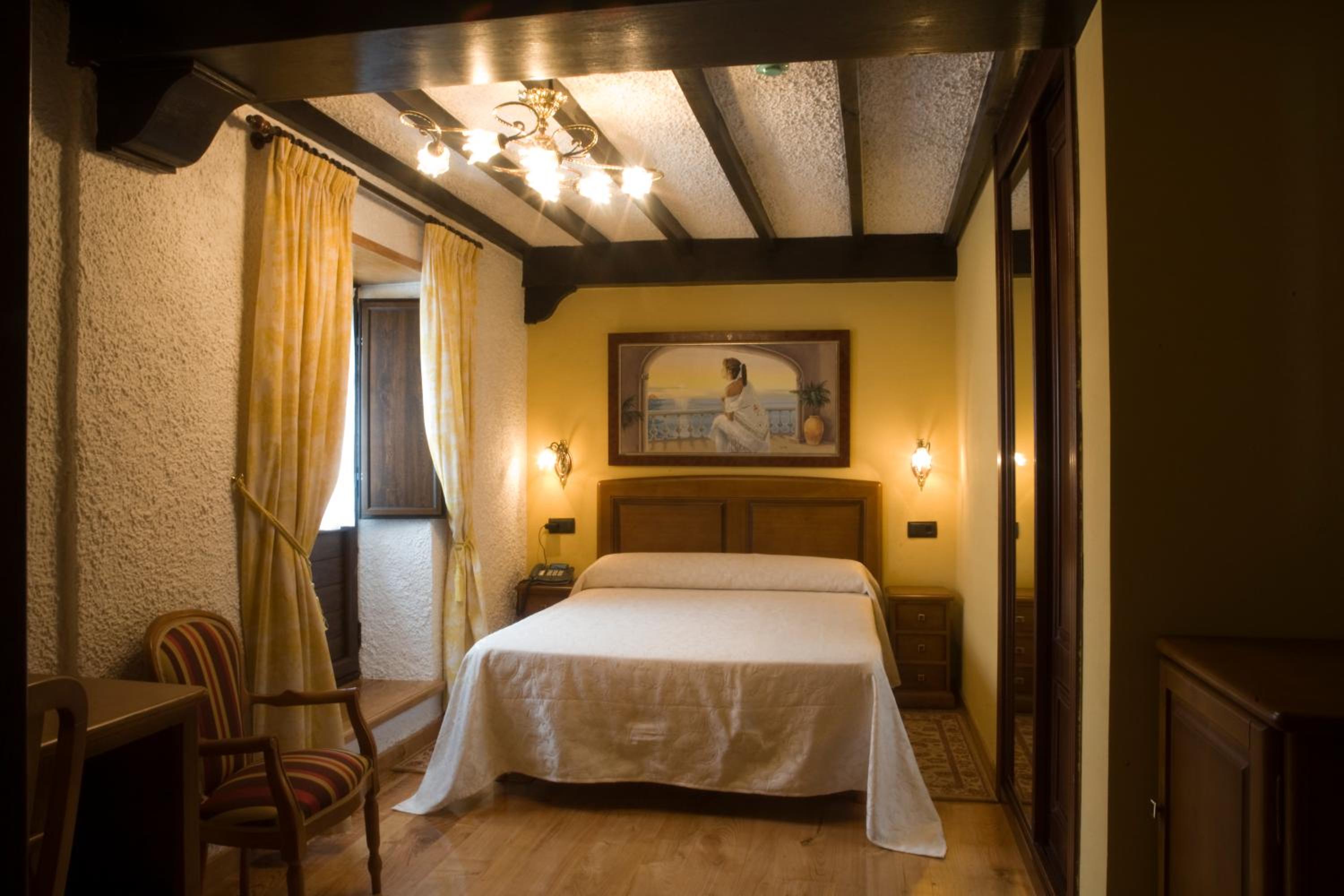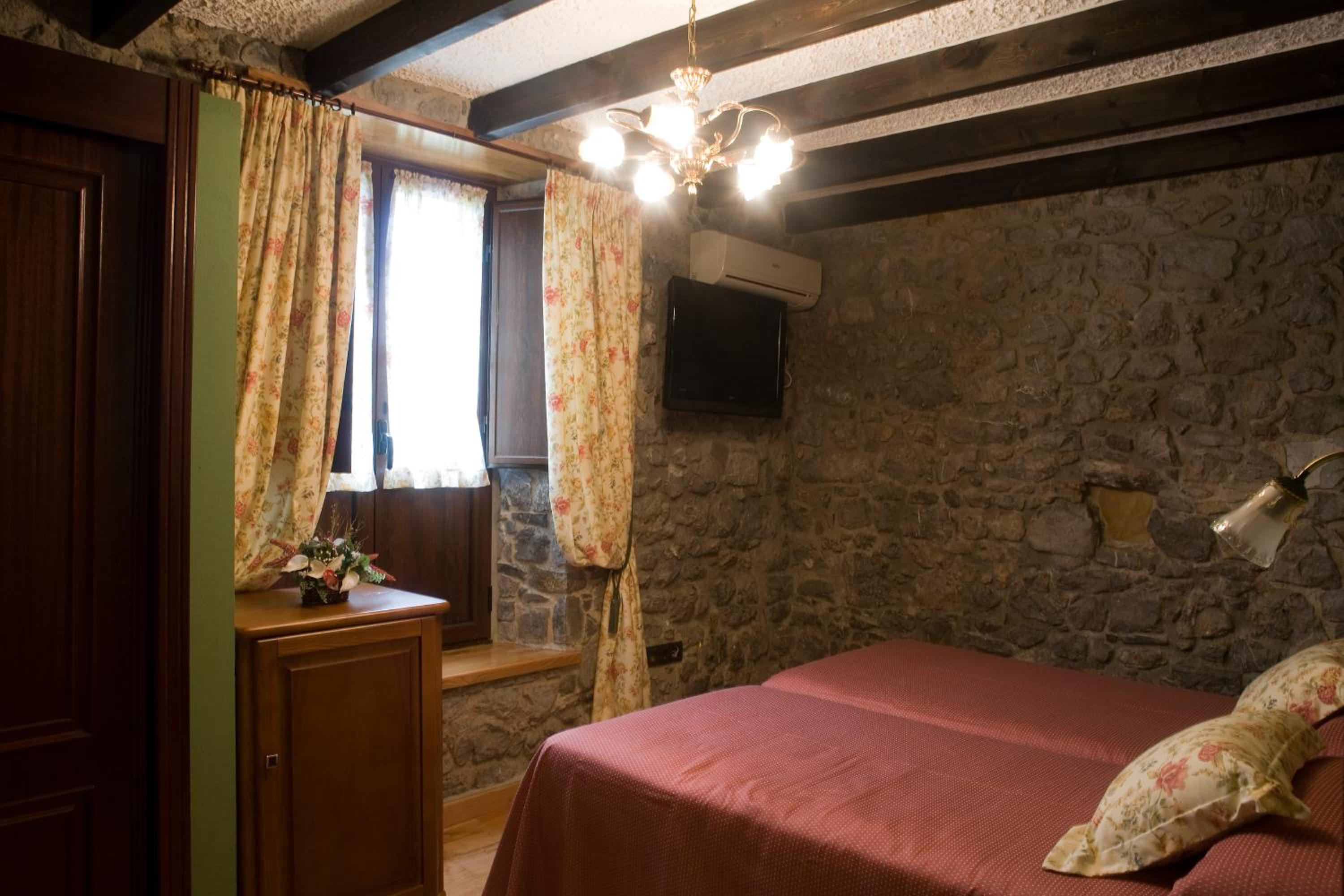 Rustic Charm: Escape to El Foyu's rustic property with wooden beamed ceilings, stone walls, and cozy rooms equipped with modern amenities like free Wi-Fi and flat-screen TVs.