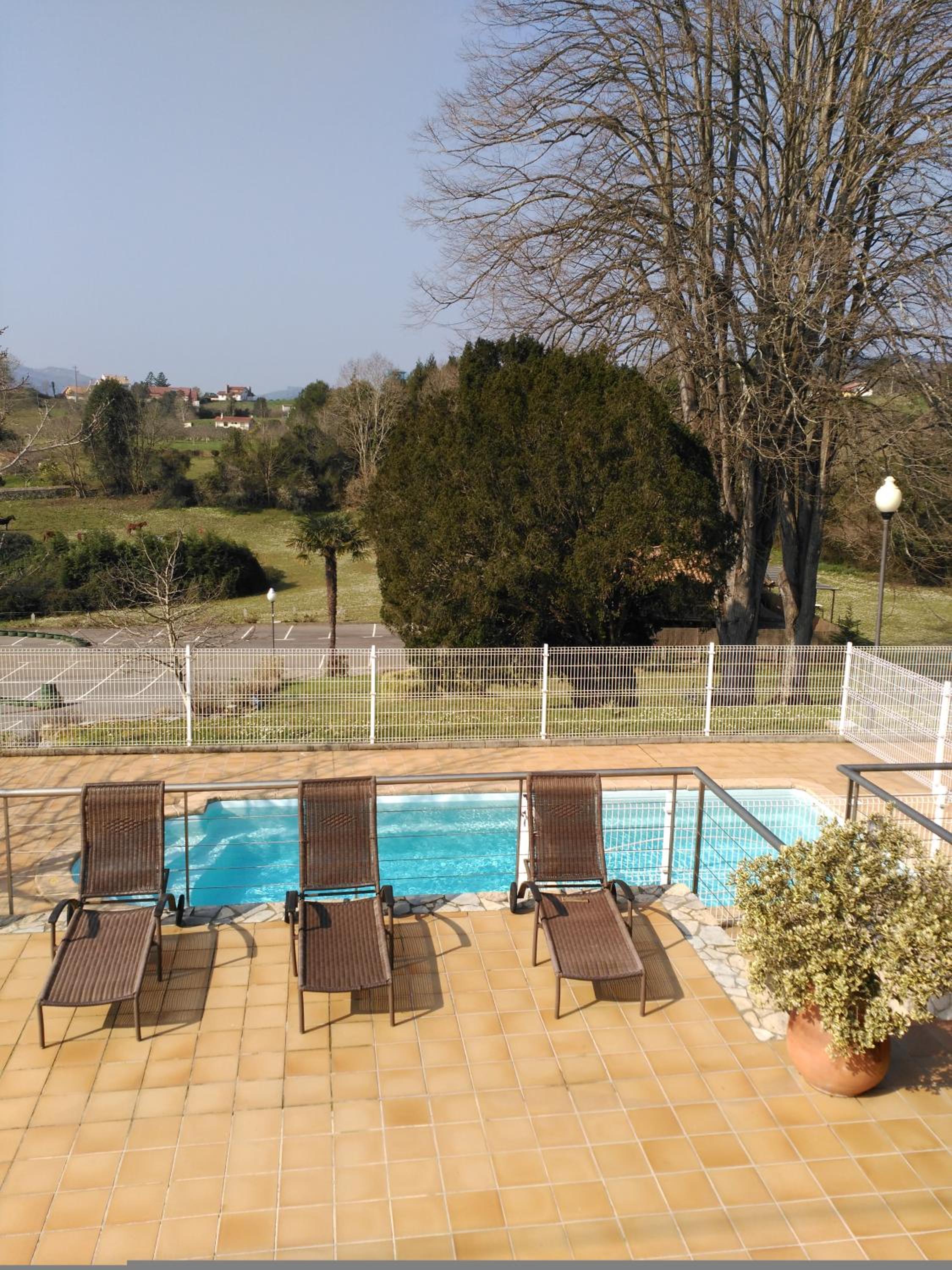La habitación tenía todo lo necesario. Estaba limpia y ordenada. Tiene Tv, Aire Acondicionado, un baño completo y con secador de pelo. Unas maravillosas y relajantes vistas desde la habitación. También tiene piscina. Tiene dos aparcamientos privados para sus clientes, uno para el hotel y otro para el restaurante. Dentro del mismo recinto, aunque lo suficientemente distante del hotel como para que no se escuchen ruidos molestos, se encuentra el restaurante donde se pueden disfrutar los platos típicos de la cocina asturiana, de los que tuvimos la oportunidad de probar alguno de ellos y que estaban deliciosamente elaborados.