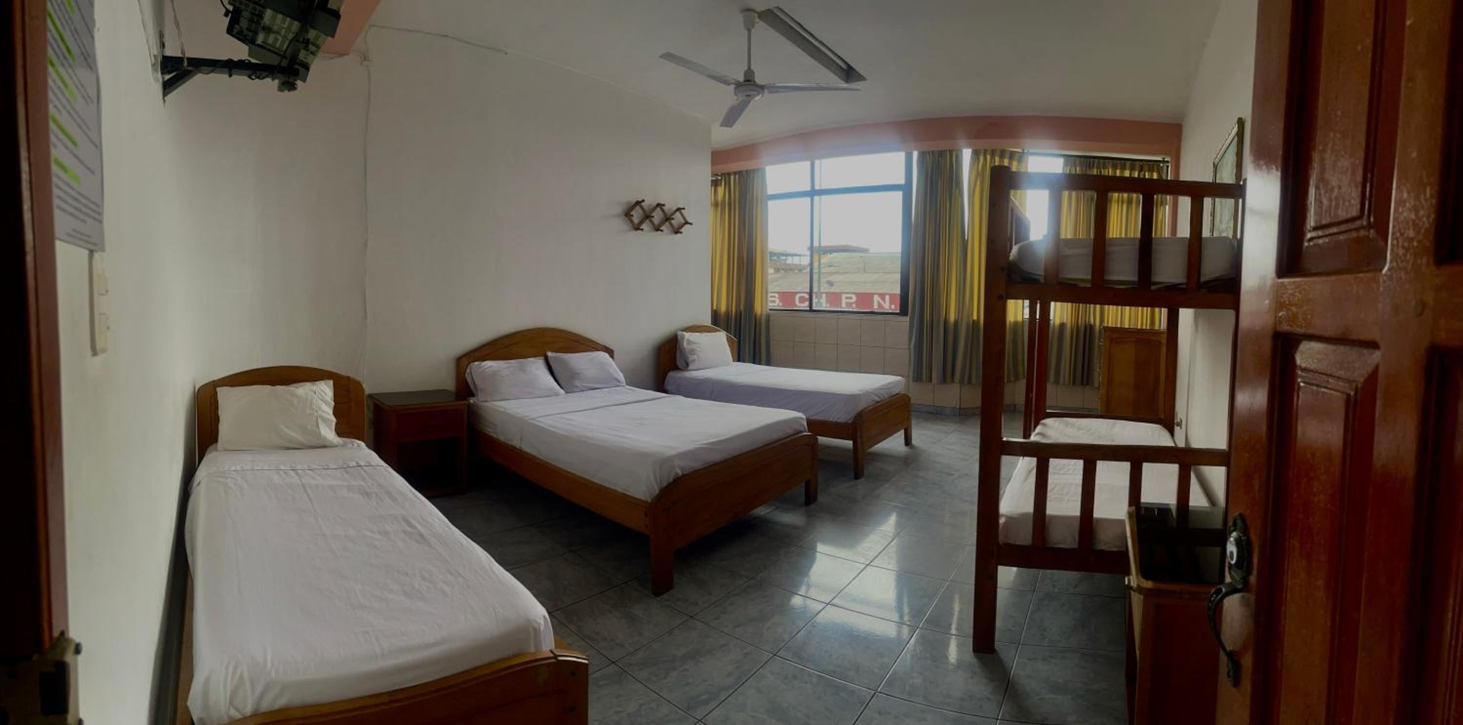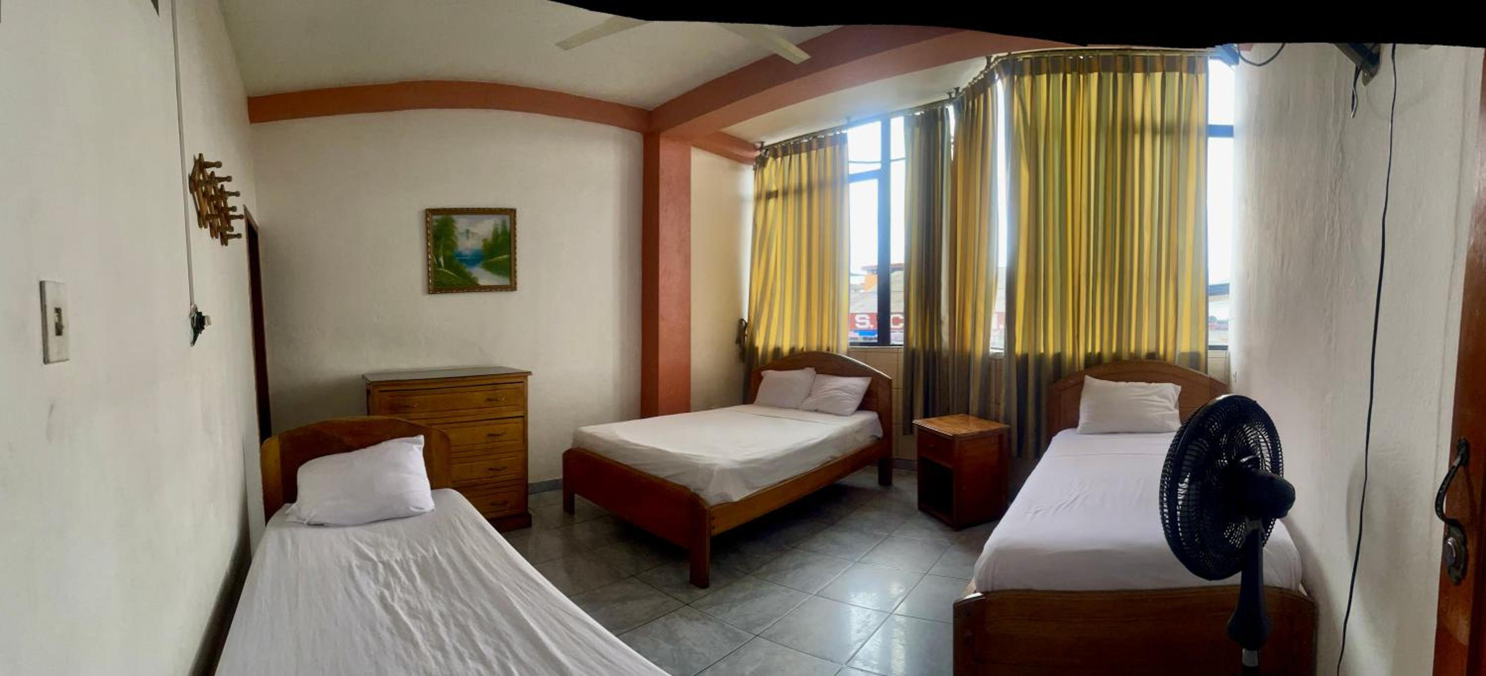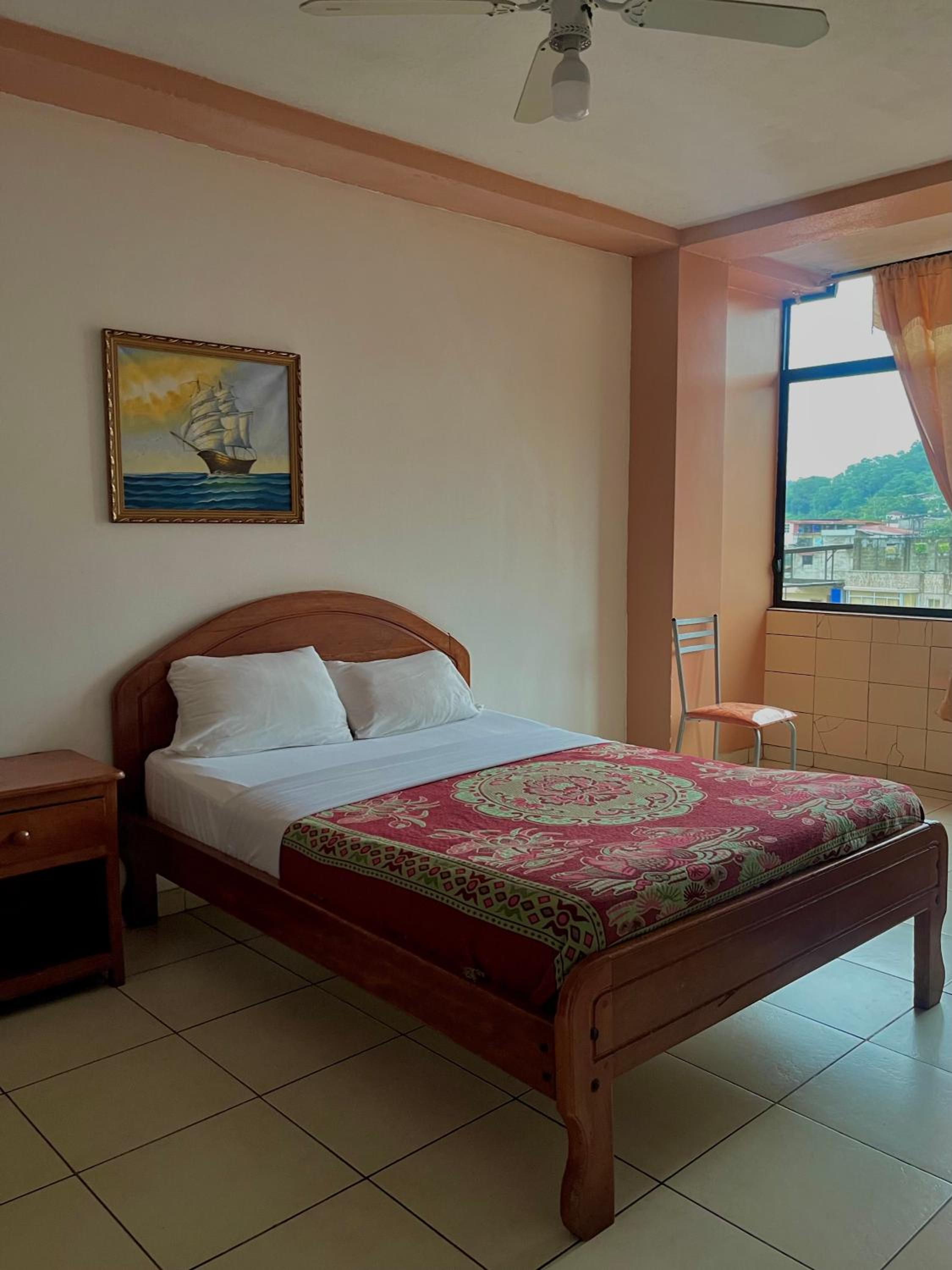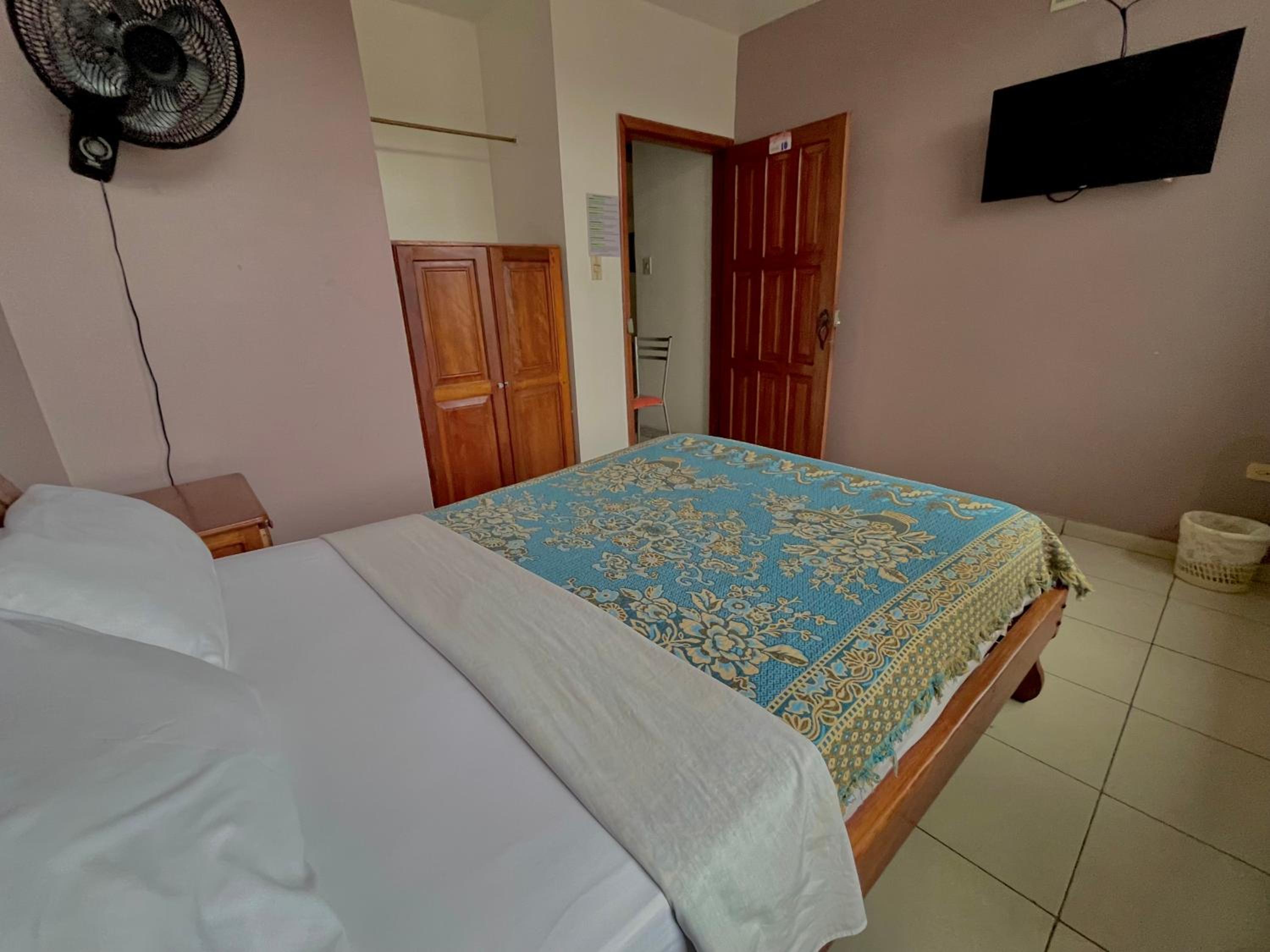 Il n’y a pas d’AC comme indiqué, seulement un petit ventilateur. Le patron de l’hôtel est exécrable.