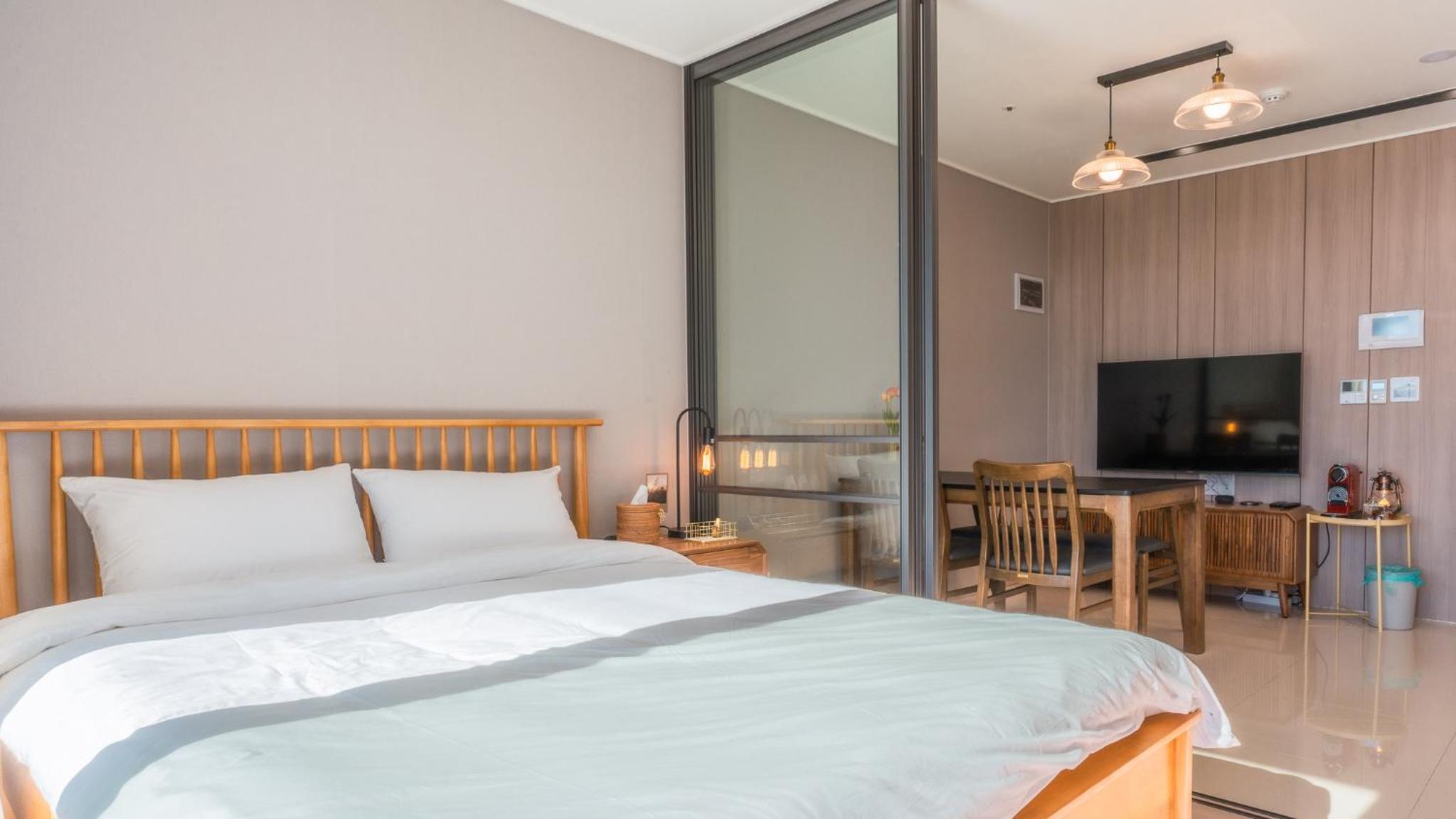 주차편하고 비대면체크인이라 짐들고 왔다갔다 안해도 되는게 일단 큰 장점. 관광지 마트 식당 이동거리도 짧고 건물주변은 조용해서 쉬기도 좋음.