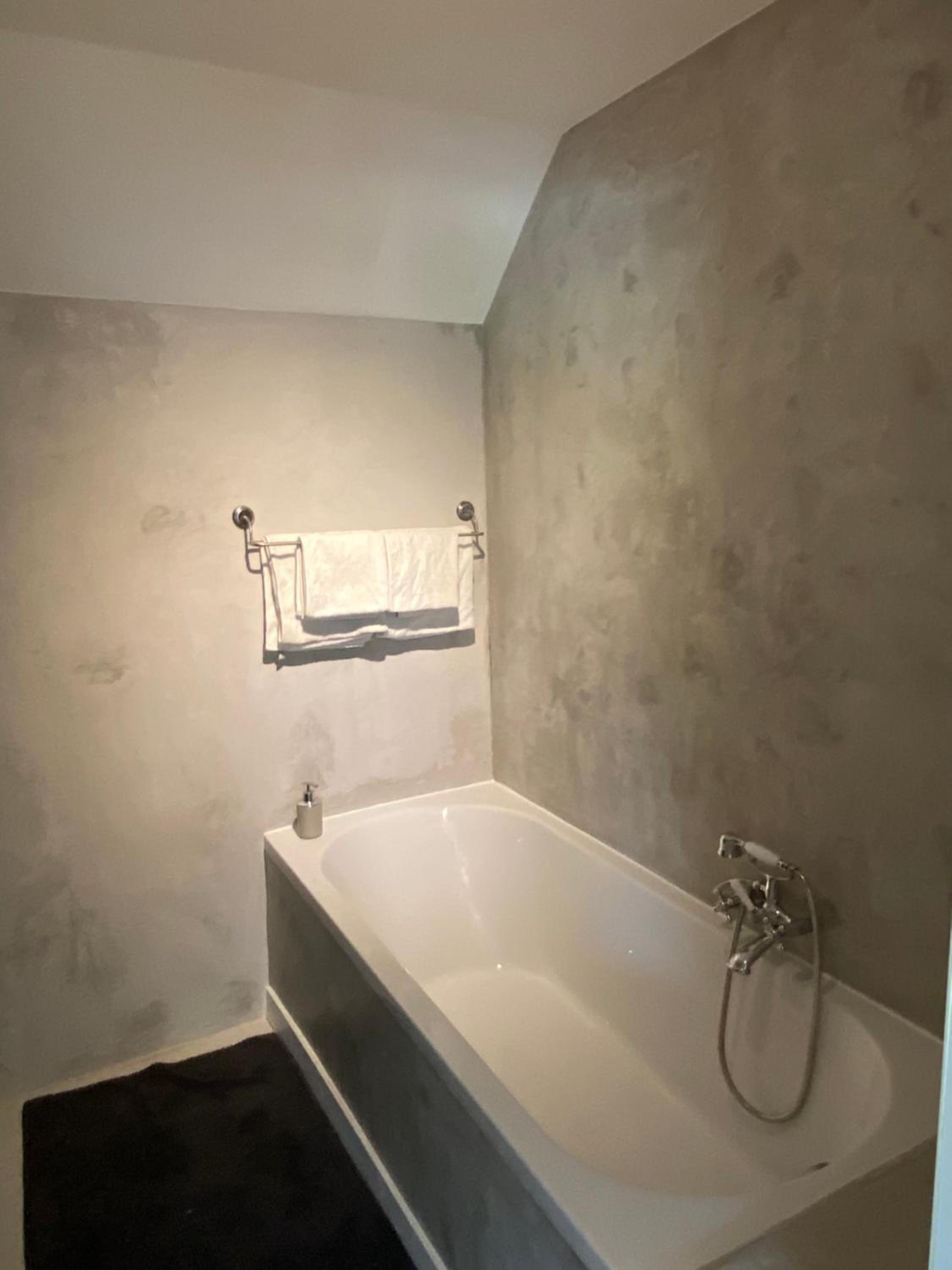Zeer verouderde kamer, piepkleine badkamer, muffe geur