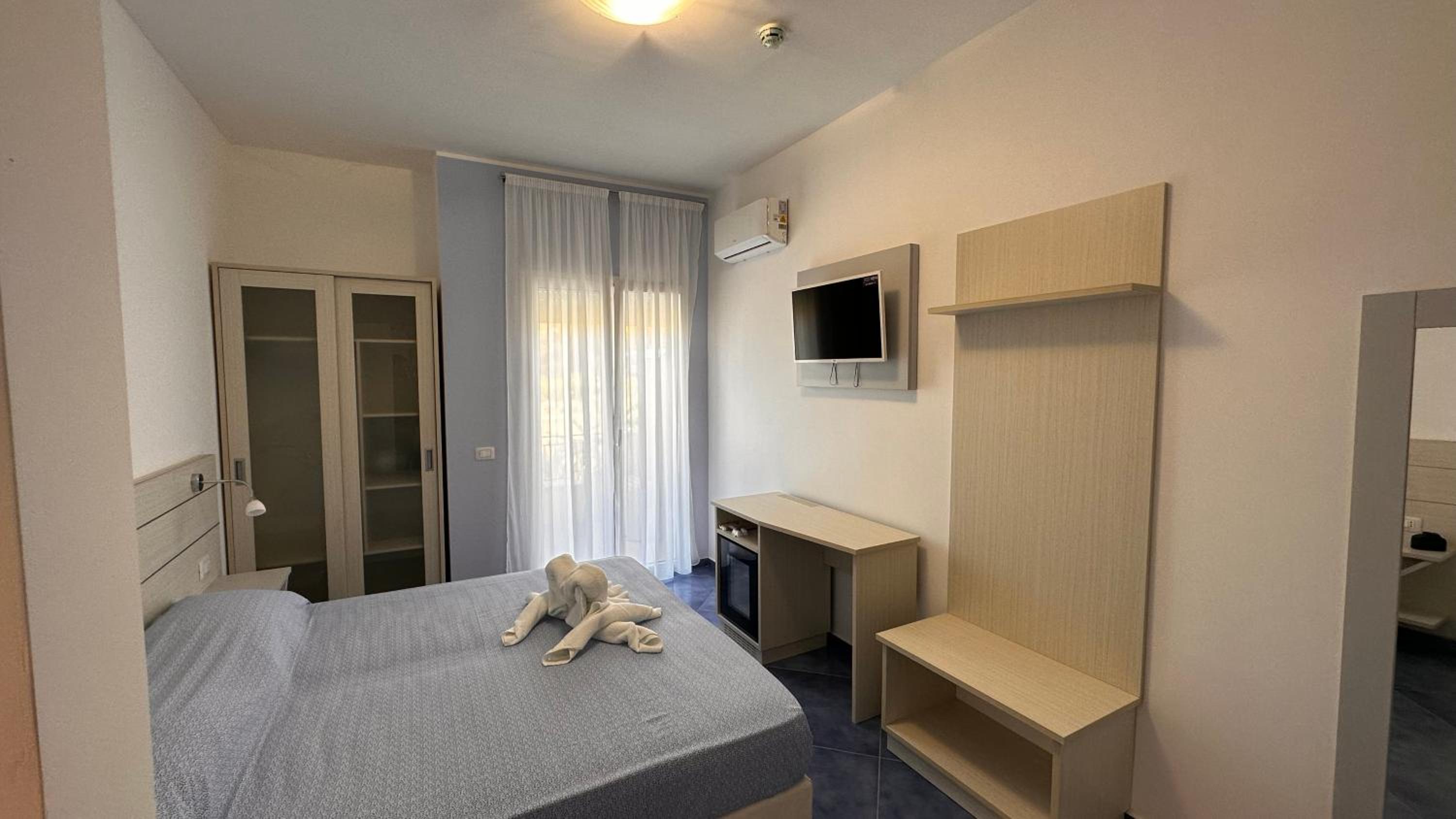 Hotel straordinario, a conduzione familiare. Situato non direttamente sul mare, ma raggiungibile comunque a pochi minuti sia a piedi che in auto. Parcheggio disponibile di fronte all'entrata dell'albergo. Camere ampie e pulite, rinnovate di recente. Colazione abbondante, con varietà di cibo sia dolce che salato, servita nel ristorante dell'hotel.