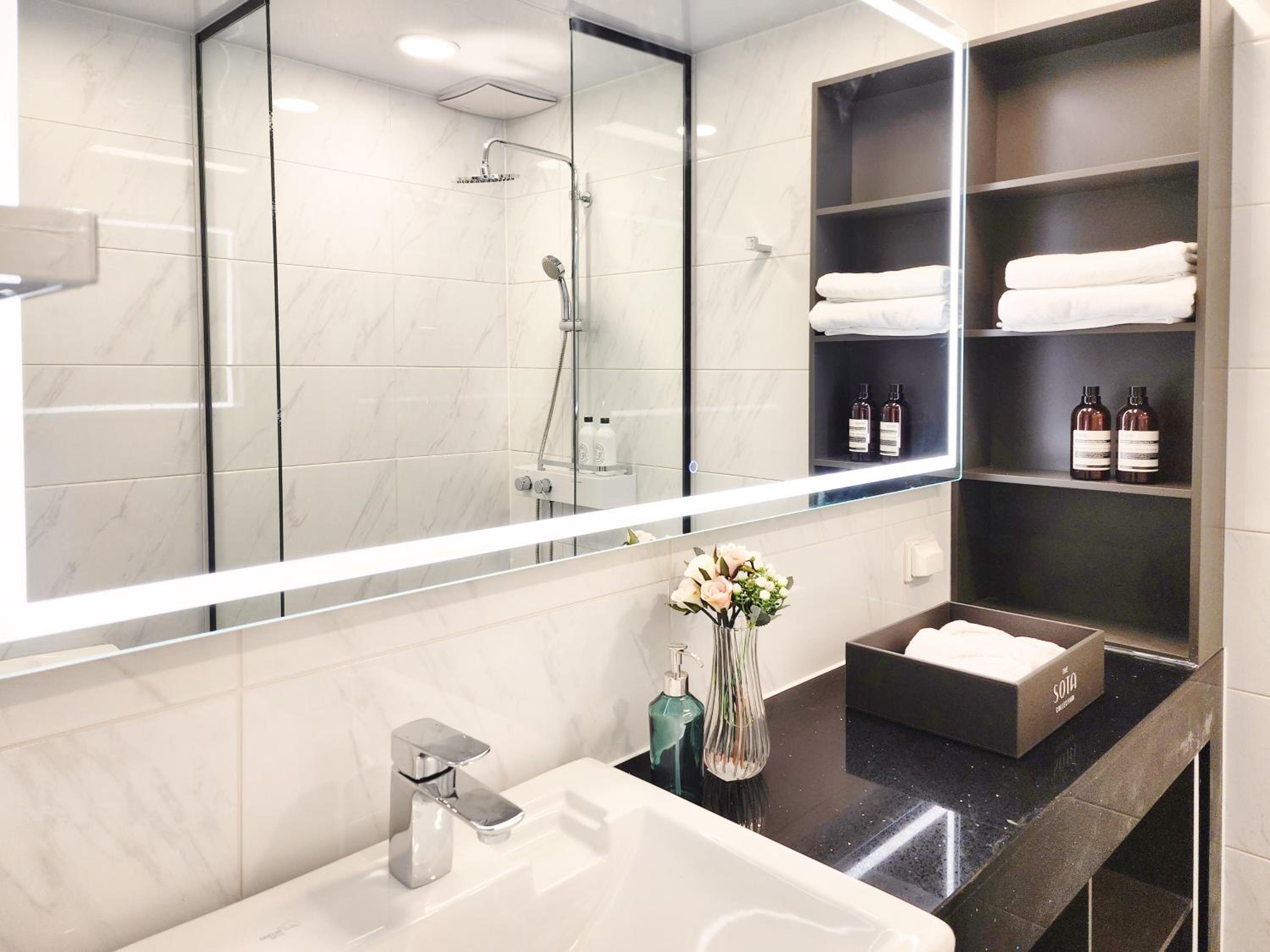 3시 정각이 될때까지 체크인을 해결해주지 않아서 좁은 로비가 아주 바글바글, 객실에 비하여 엘레베이터 부족하여 체크인시 타기 어려움, 화장실에서 하수구 냄새남.