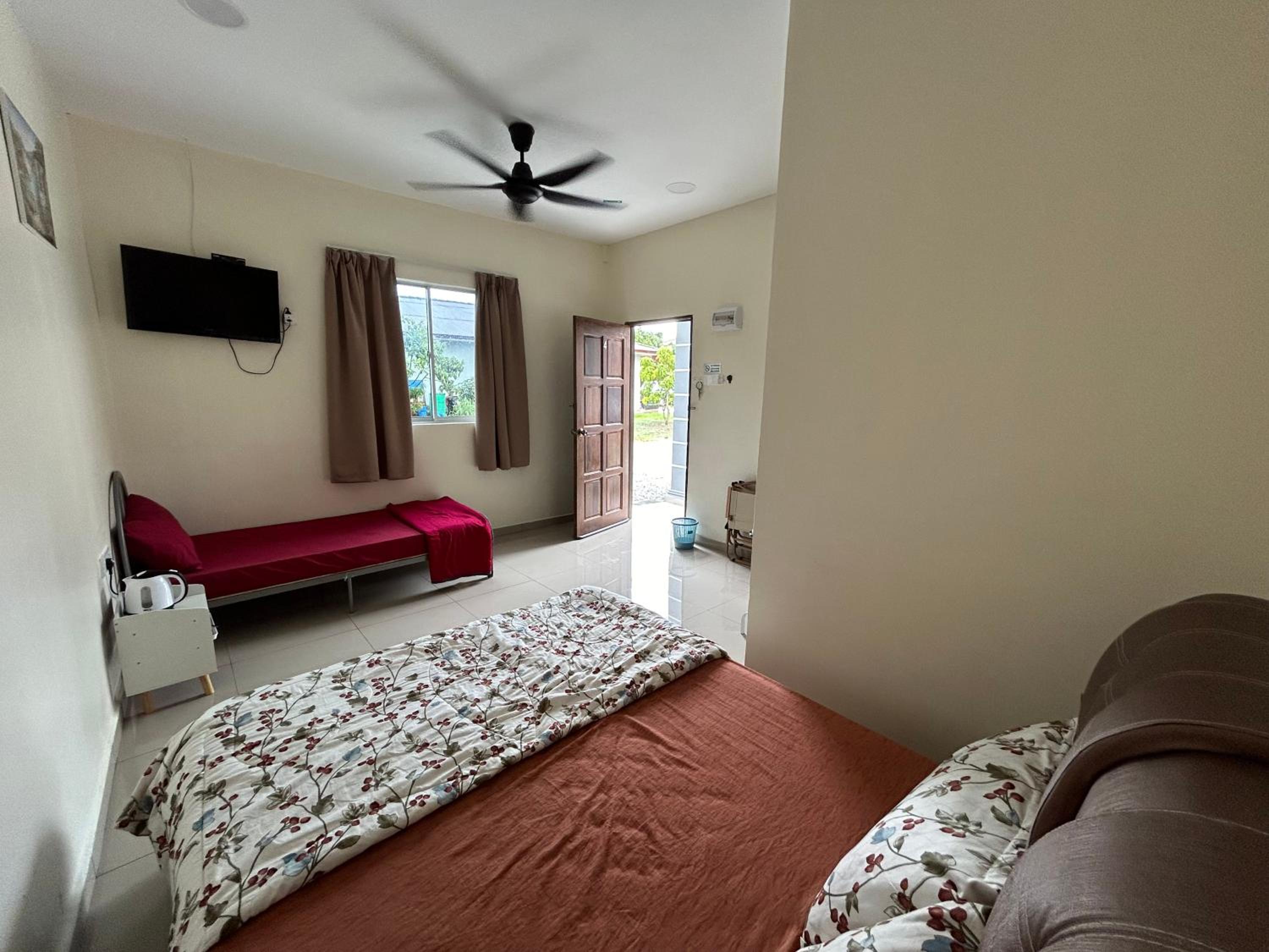Near beach, location in kampung area. Good for rest. Easy to locate. Clean. Easy to find restaurant. Near KMM. Beside house owner's house.