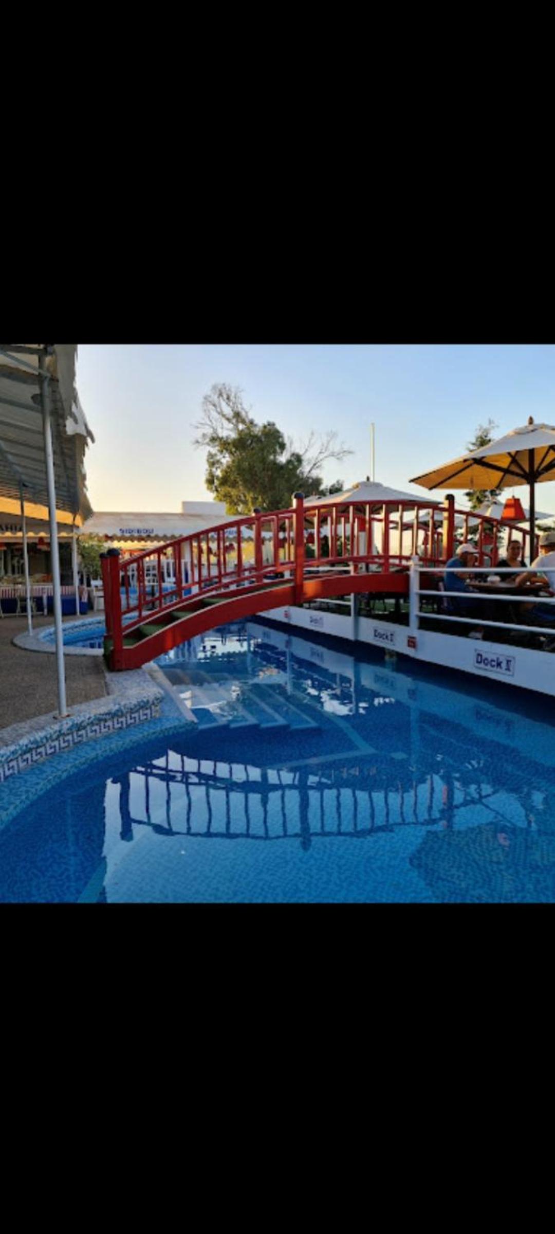 I liked the patio garden at the entrance and the terrace pool area with the Japabese bridge.