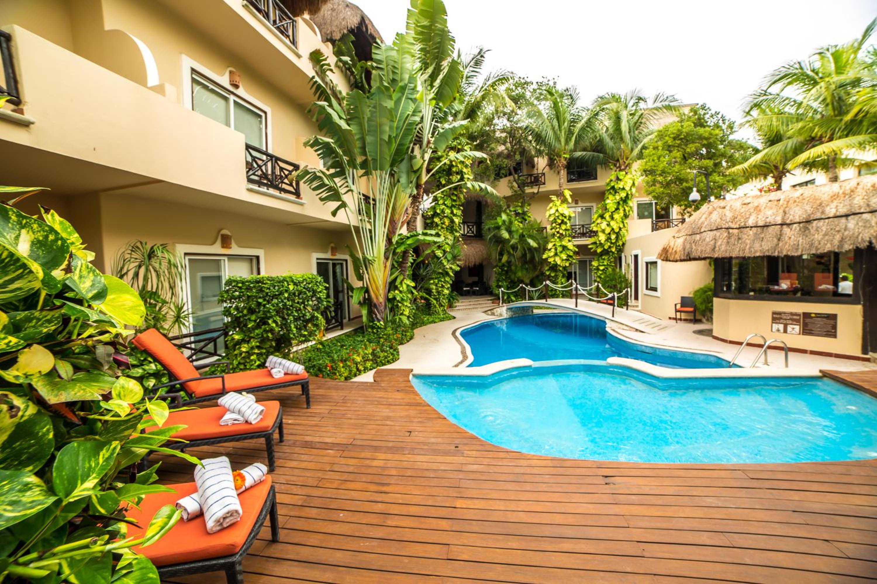 Escape to Riviera Del Sol, a tranquil oasis nestled in beautiful tropical gardens just a 3-minute stroll from the sandy beach of Mayan Riviera.