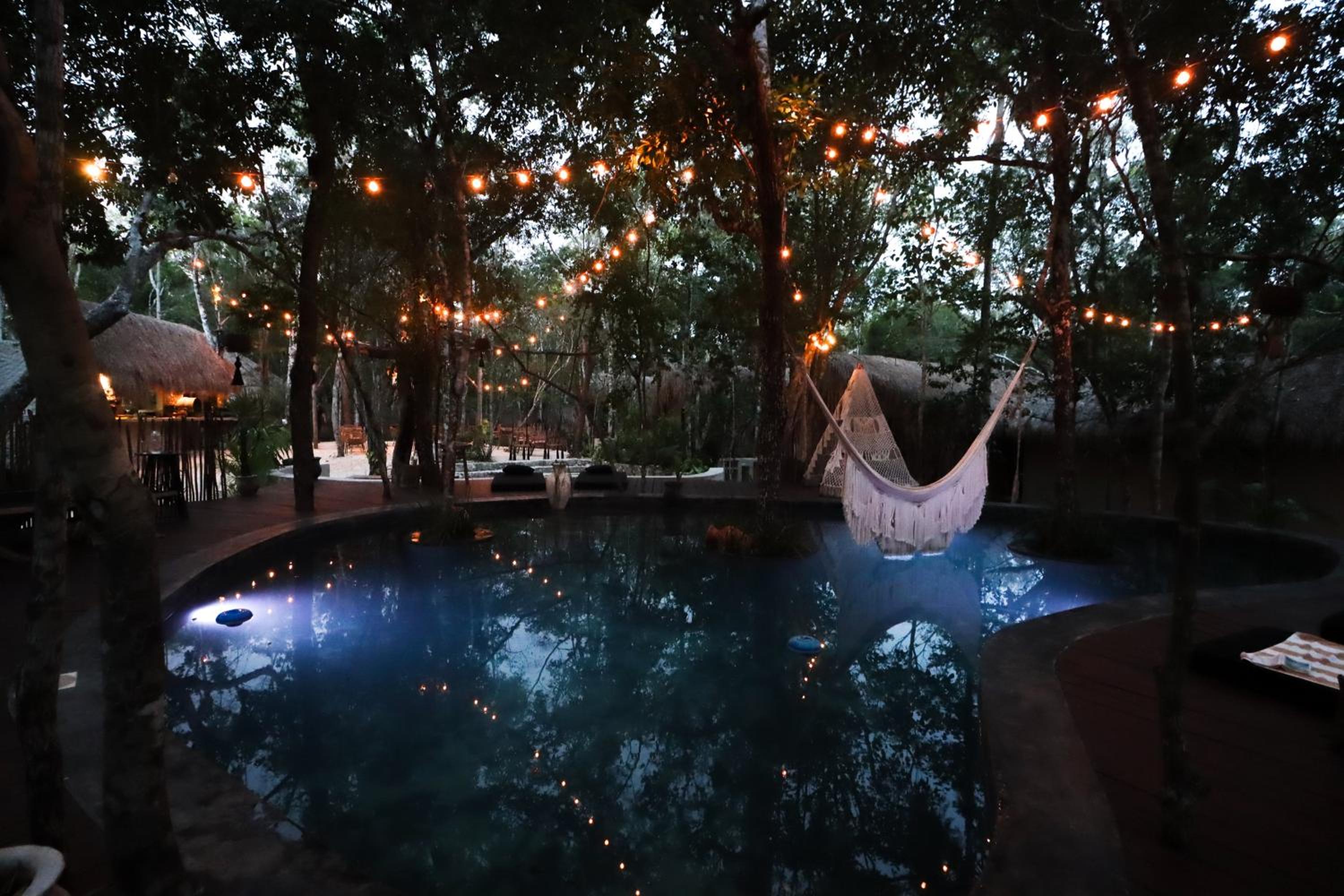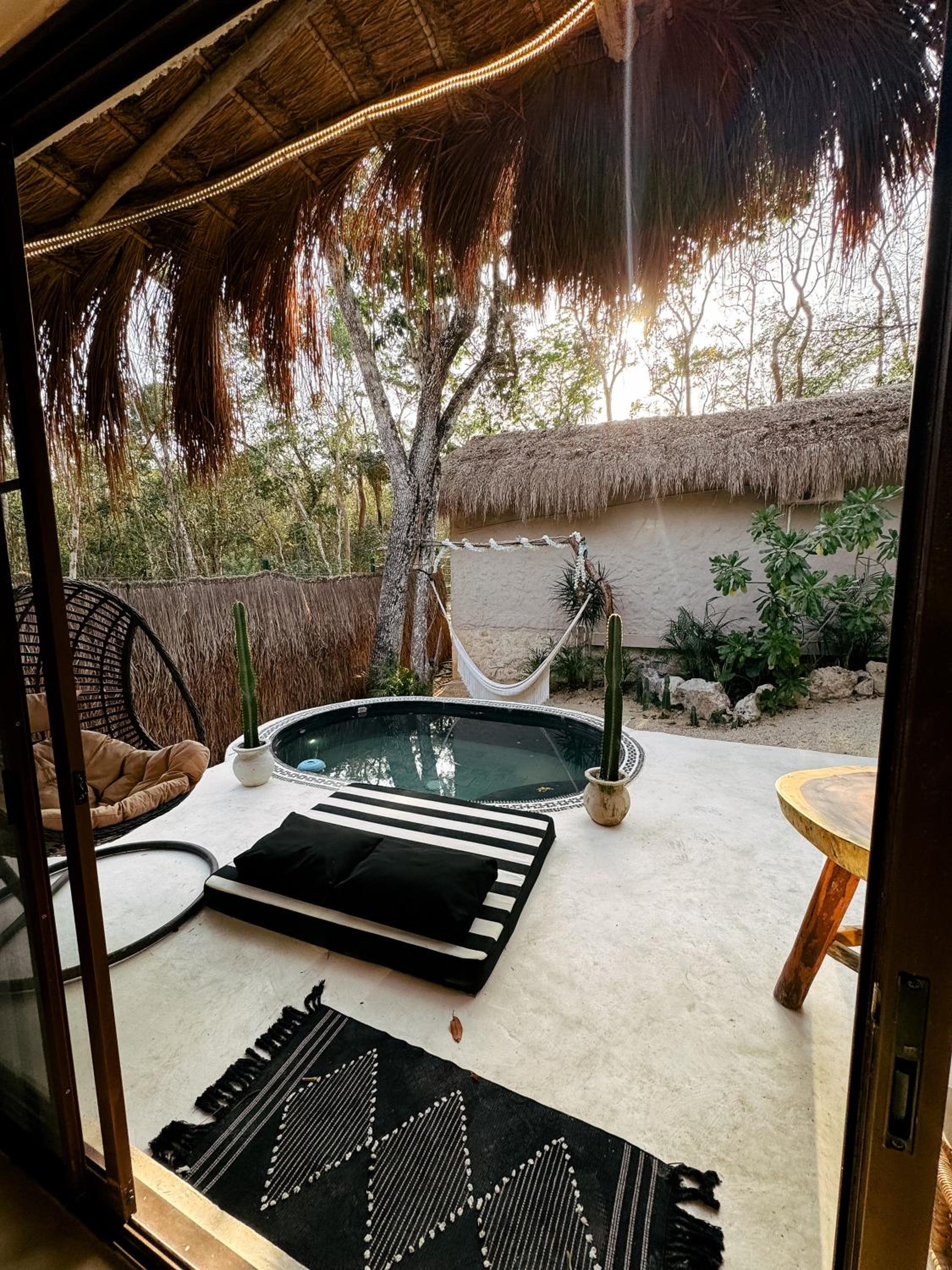 Przepiękny obiekt w środku dżungli. Czuć klimat Meksyku. Villa gustownie wykończona, piękny basen wśród drzew, wspaniała obsługa. Jorge i Arturro niezastąpieni. Byli cały czas dostępni i spełniali każdą prośbę czy rozwiązywali każdą sprawę. Plus za poranną jogę i popołudniowe medytacje czy pływające śniadania. Co parę dni organizowane było ognisko, a my mieliśmy szczęście i trafiliśmy na magiczny koncert. Jedzenie - przepyszne. Udało nam się podczas 5 dniowego pobytu spróbować praktycznie wszystkiego. Po terenie całego parku można było skorzystać z darmowego przejazdu do cenot, których było kilka do wyboru. Za darmo też można było podjechać do głównej drogi skąd można było złapać autobus do Tulum.