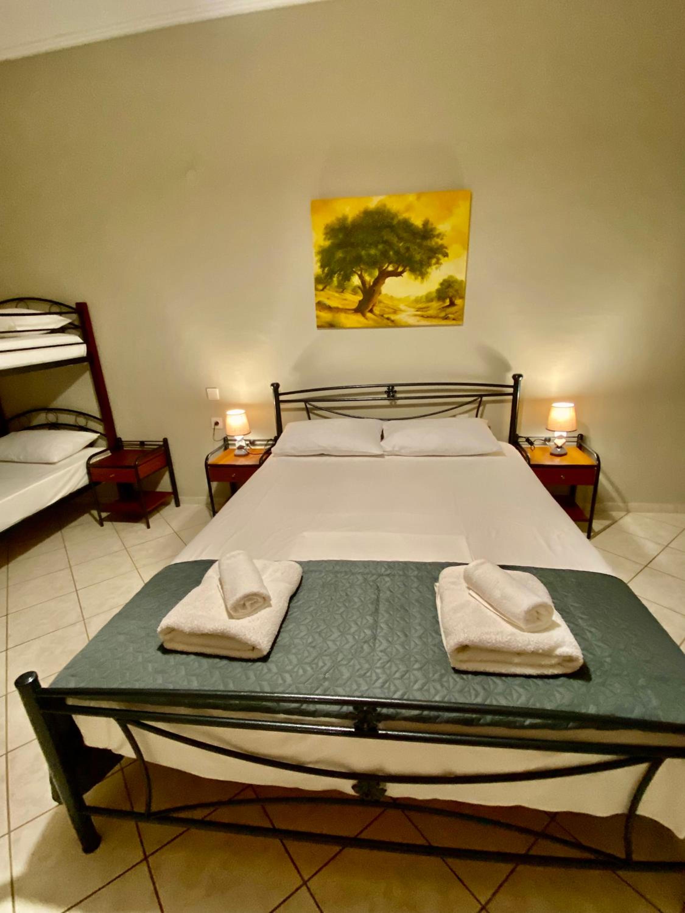 The mattresses were too soft and caused us back pain. They need to invest on new bed mattresses. Also, I don't see the point of cleaning the room again the first day of accommodation as soon as the guests leave the room. The first day is usually a mess, and I don't want anyone see my mess. This seems to be a norm in Greece though, I guess it is part of their customer satisfaction service. It is kind, but unnecessary in my opinion.