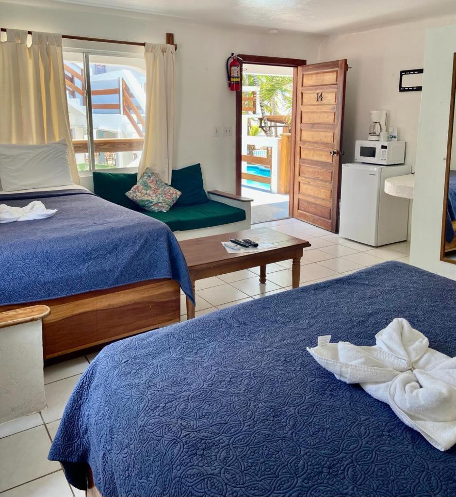 The staff and service was very friendly and welcoming. Their on San Pedro island time. So do be patient! Our room wasn’t what we expected or paid for. So they did move us ! This room was nice. Big bathroom and a comfortable king size bed lots of room for hanging and a big dresser with a fridge and microwave. You have to request a coffee maker and hair dryer but there is free coffee water and rum punch to enjoy the front desk and security guard were very accommodating for fixing anything that needed to be addressed and printed our boarding passes. The airport doesn’t do QR codes All in all its a nice room lace for the cost is very reasonable. And its fairly close to a-lot of their little town. All walkable