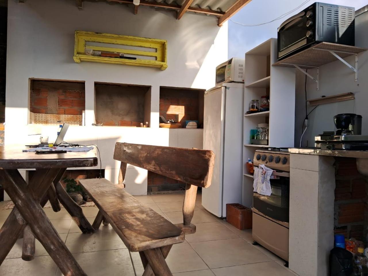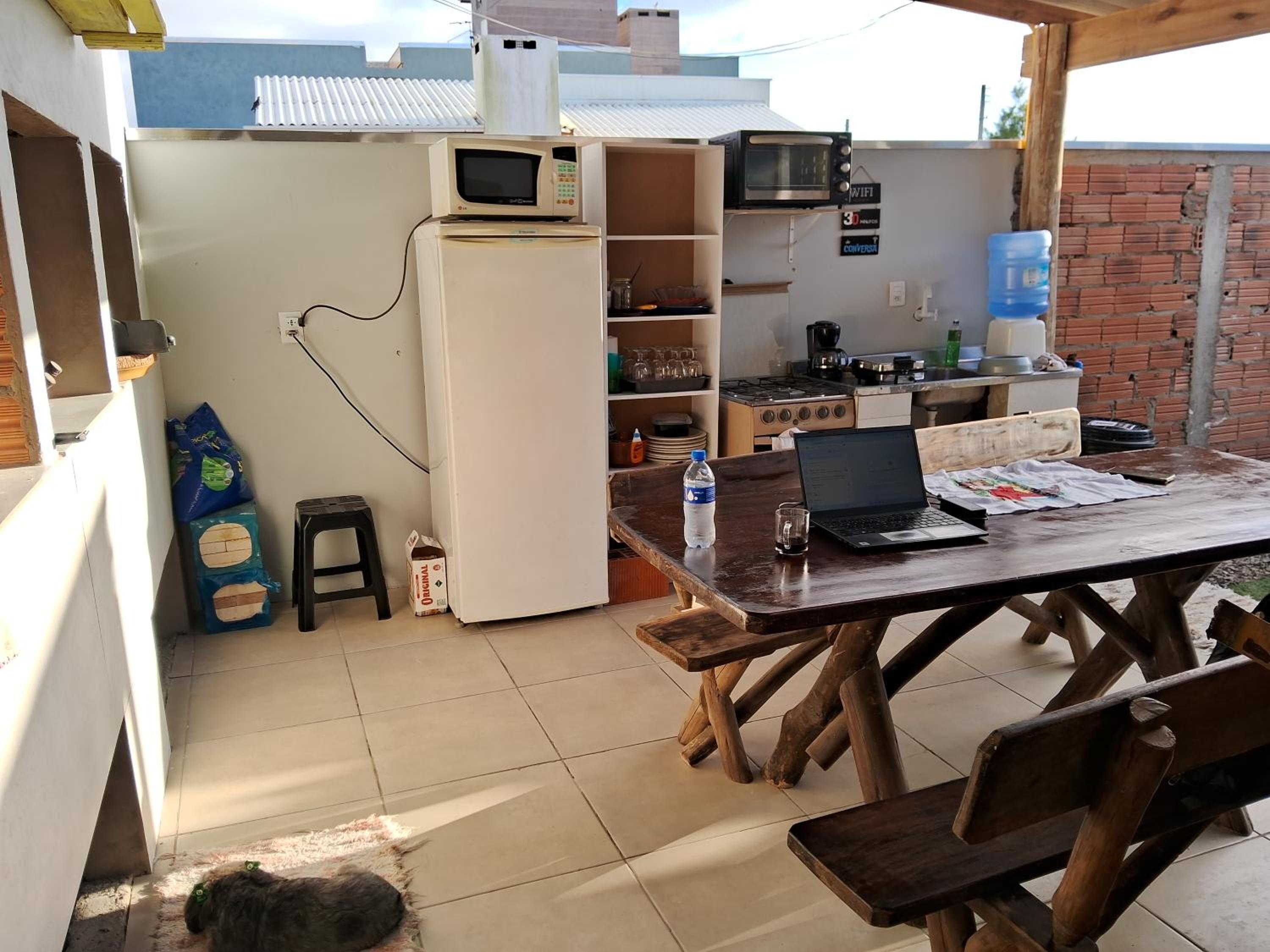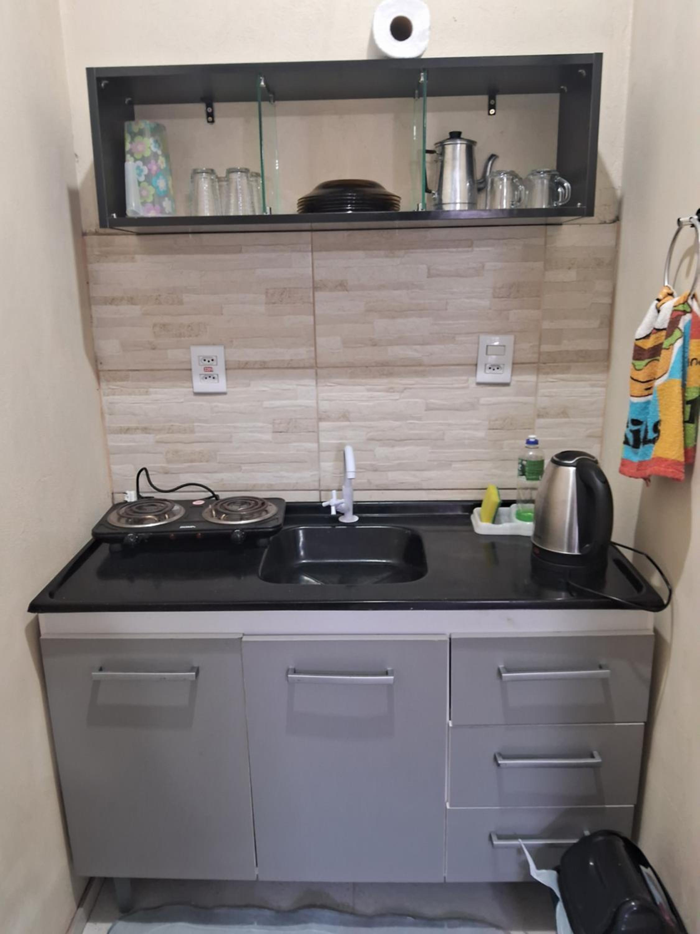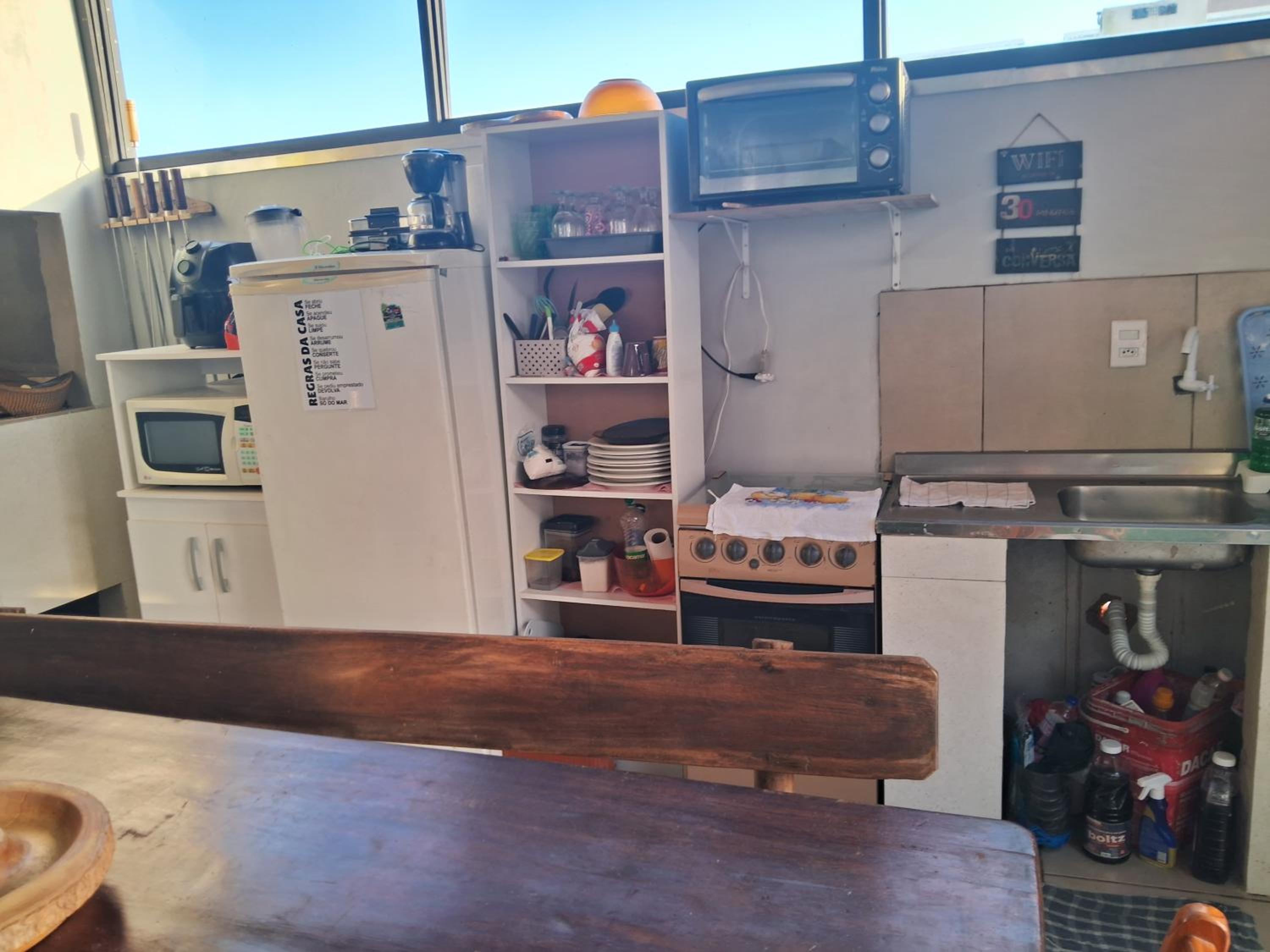 Tem cozinha no ap, mas o fogão e o micro-ondas não estavam bons. Usei a cozinha de fora, nos atendeu bem.