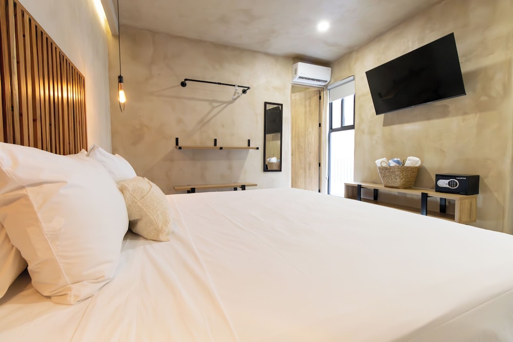 Las habitaciones muy bonitas de diseño minimalista. Cuentan con un armario tipo librero, abierto y funcional, pensando en una estancia corta.