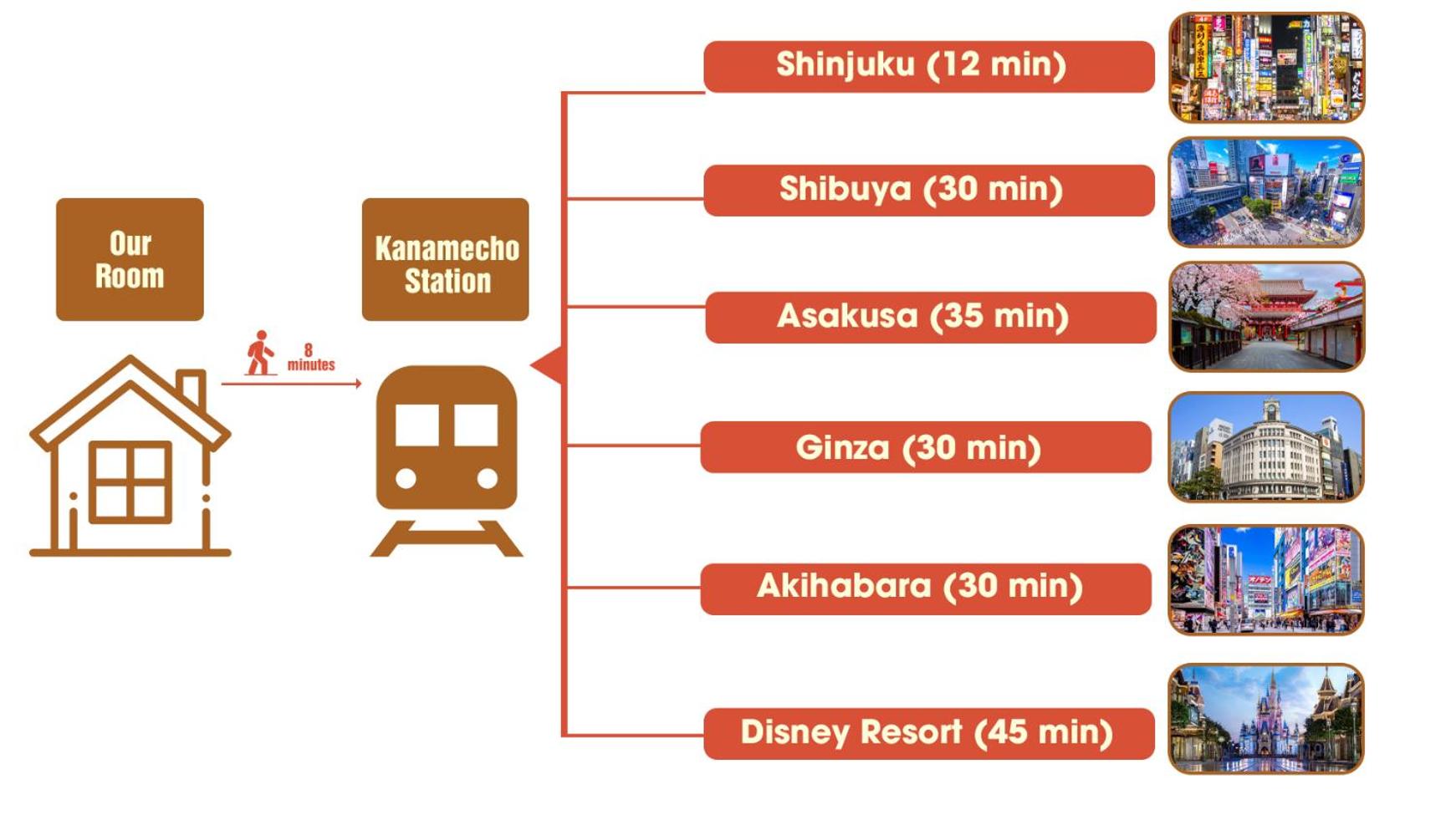 4 étages sans ascenseur avec des grosses valises c’est pas facile. Pas de toilettes japonaises et quand on a été habitué au Japon aux toilettes chauffantes, se retrouver à Tokyo et ne pas en avoir c’est un peu décevant. Manque d’accroche serviette pour la douche et si vous êtes sensibles à la lumière le matin les rideaux ne font pas leur effet face au soleil ..
