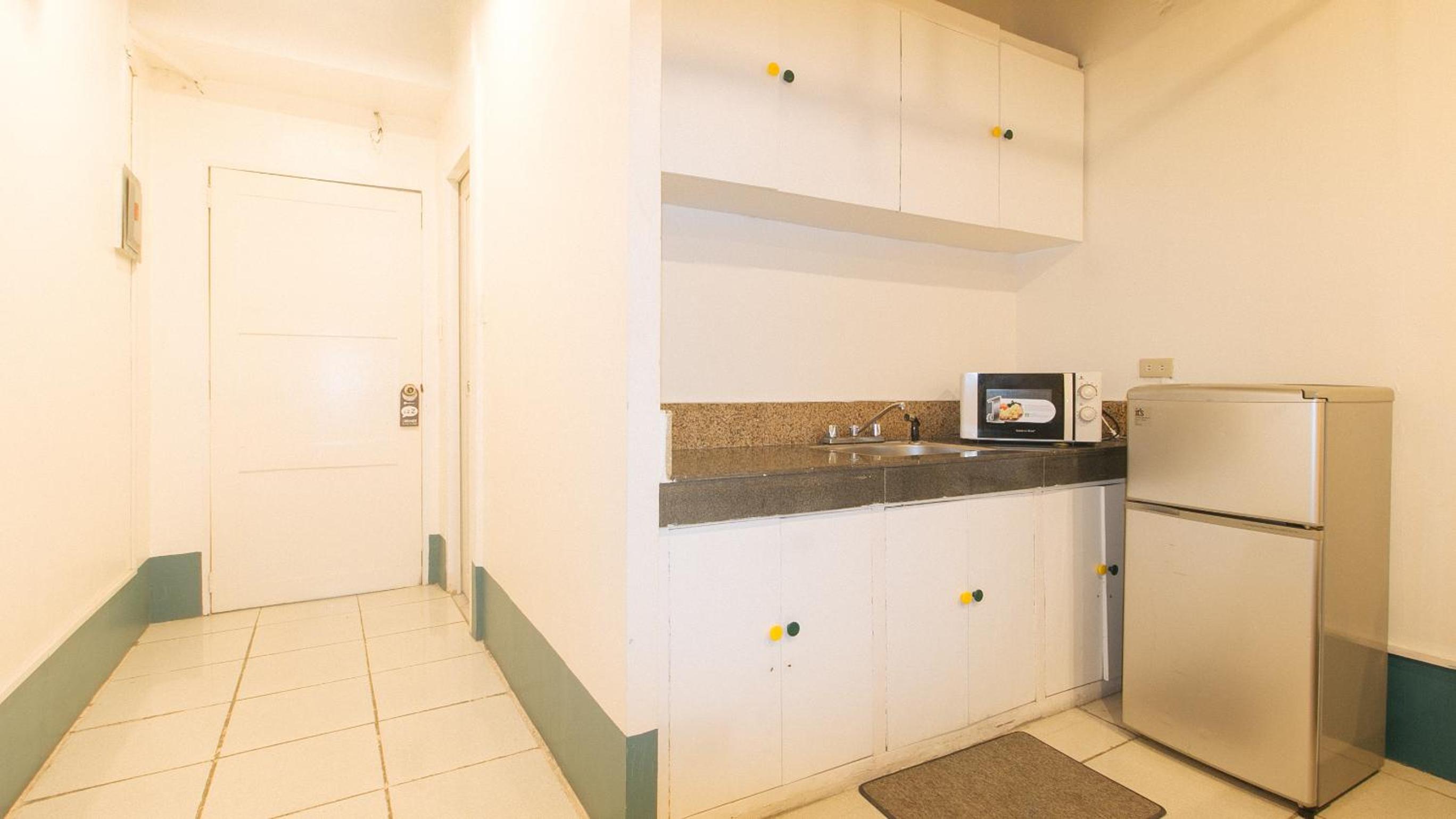 There were no toiletries. There was only one staff at the counter. Some of the appliances inside the room were not well taken care of. The shower didn't have a water heating system.