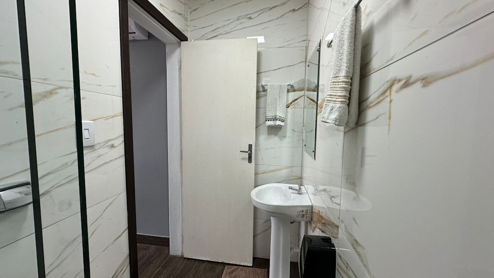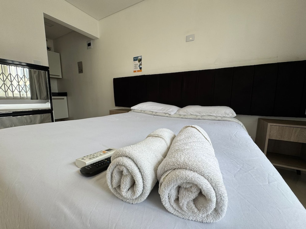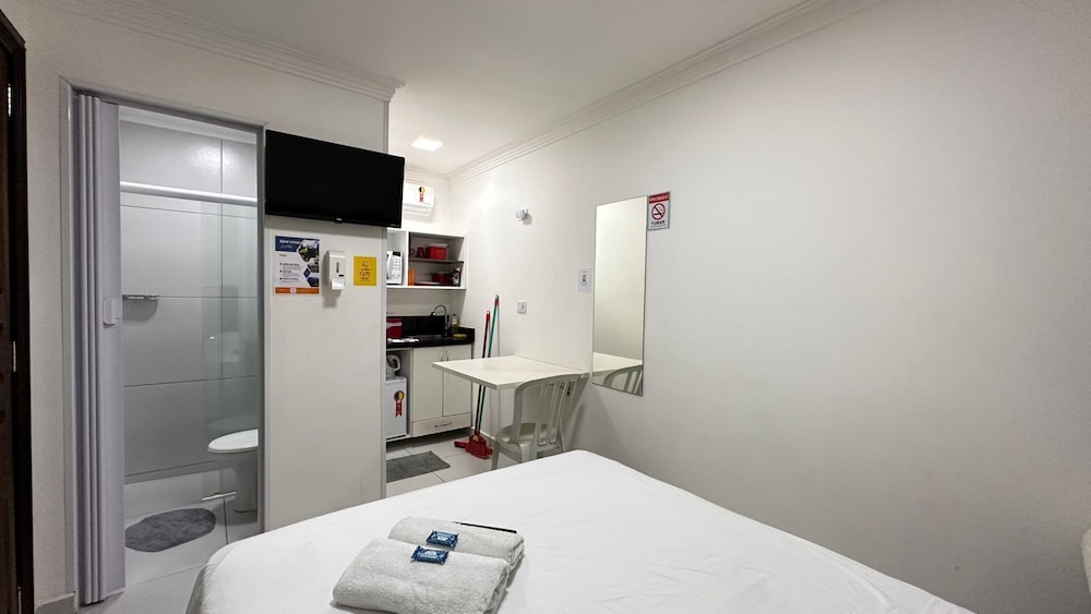 Aparthotel interessante gostei da autonomia oferecida, a reserva foi para 4 pessoas um casal e duas crianças, mais para nossa surpresa só tinham duas toalhas de banho (bem desgastadas aliás), não tinha lençol nem travesseiros para o sofá cama (que não deita completamente fica com uma elevação na cabeceira o que obriga vc a dormir praticamente sentado ou com os pés elevados bastante desconfortável) e apenas dois cobertores (solicitei pelo menos duas toalhas, dois travesseiros e um lençol, o lençol não foi fornecido apenas as toalhas e travesseiros) o hotel oferece microondas mais nenhum recipiente para que fosse preparado qualquer alimento nele. A limpeza ok, chuveiro bom, no geral precisam ter cuidado com o básico oque irá subir muito nível do lugar.