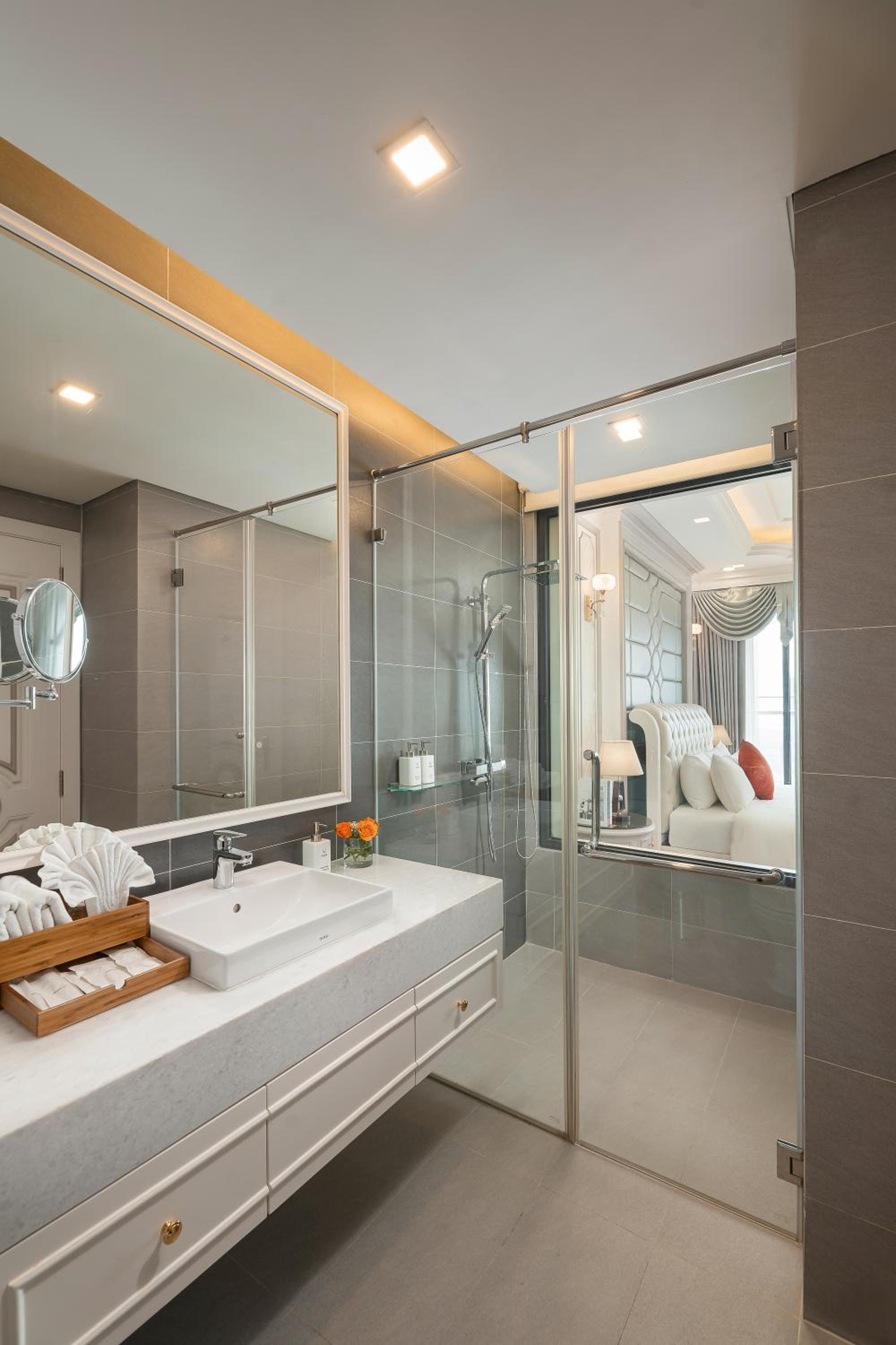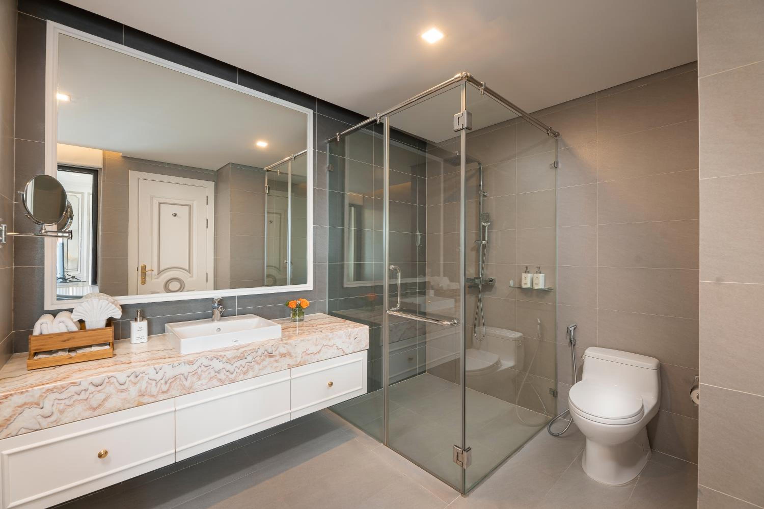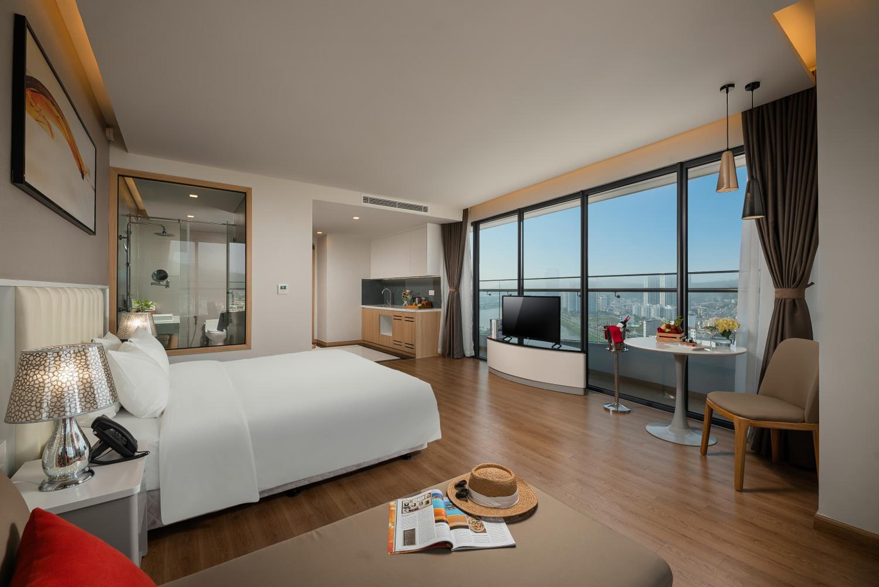 Everything about this hotel is beautiful. We arrived early then check time and they made a room up for us immediately. Rooms are extremely clean and massive. Good selecting for breakfast. Great value for money. Great spot if you are coming or going to ha long bay for the cruises. Short taxi ride from the port.