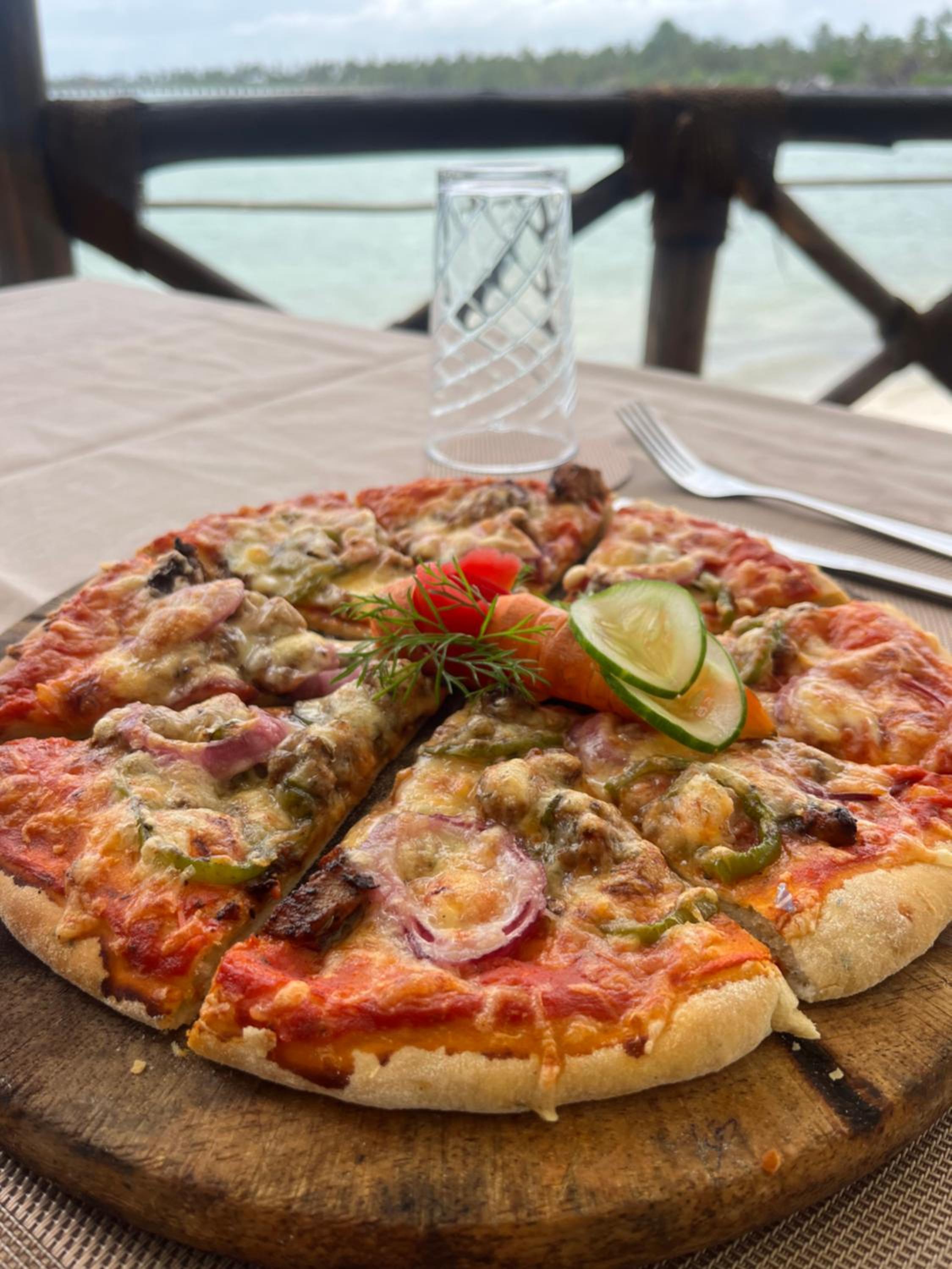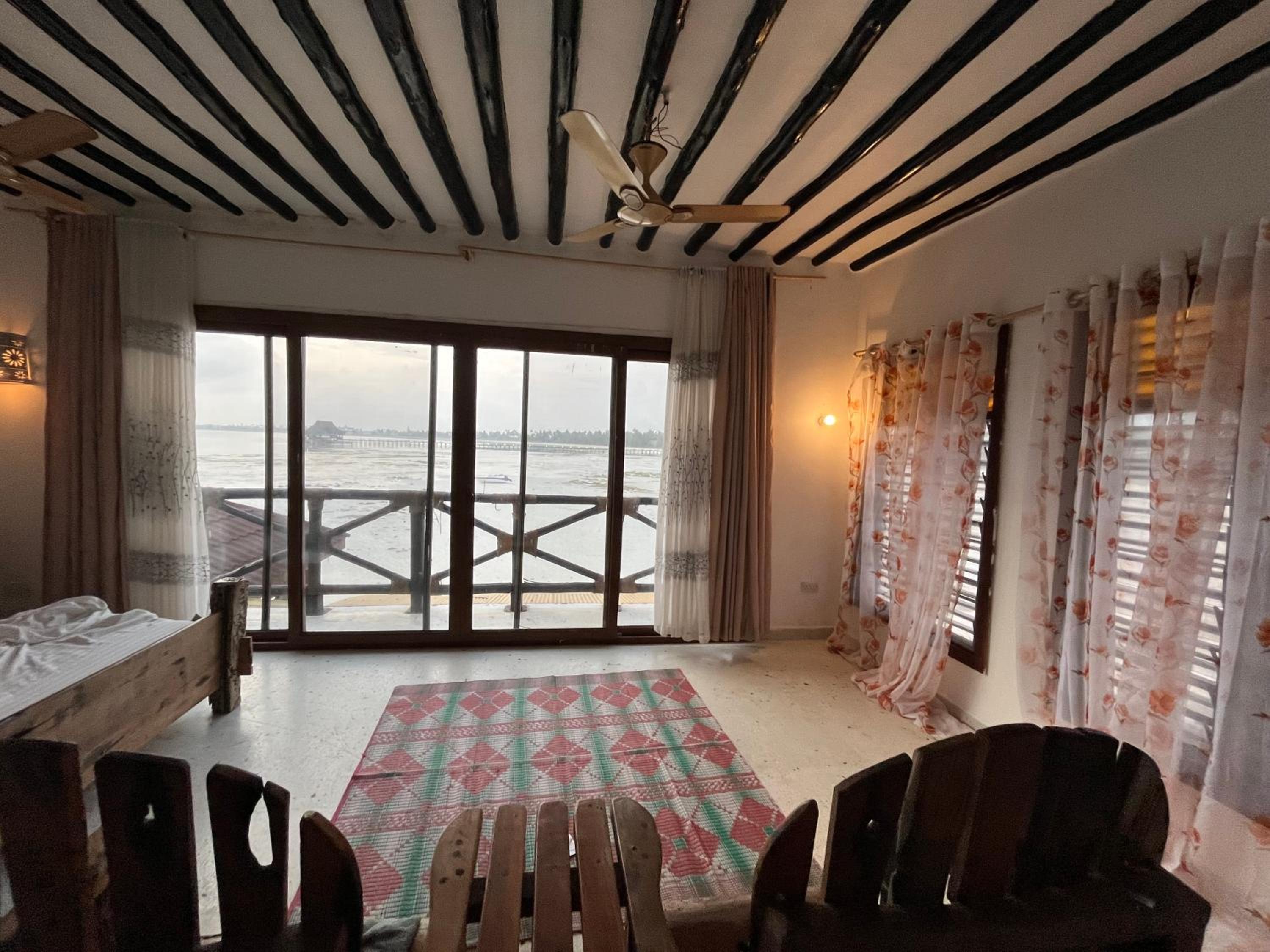 Overlooking Pongwe beach with a big view from the wide windows. Big room, nice bed, nice swimming pool.