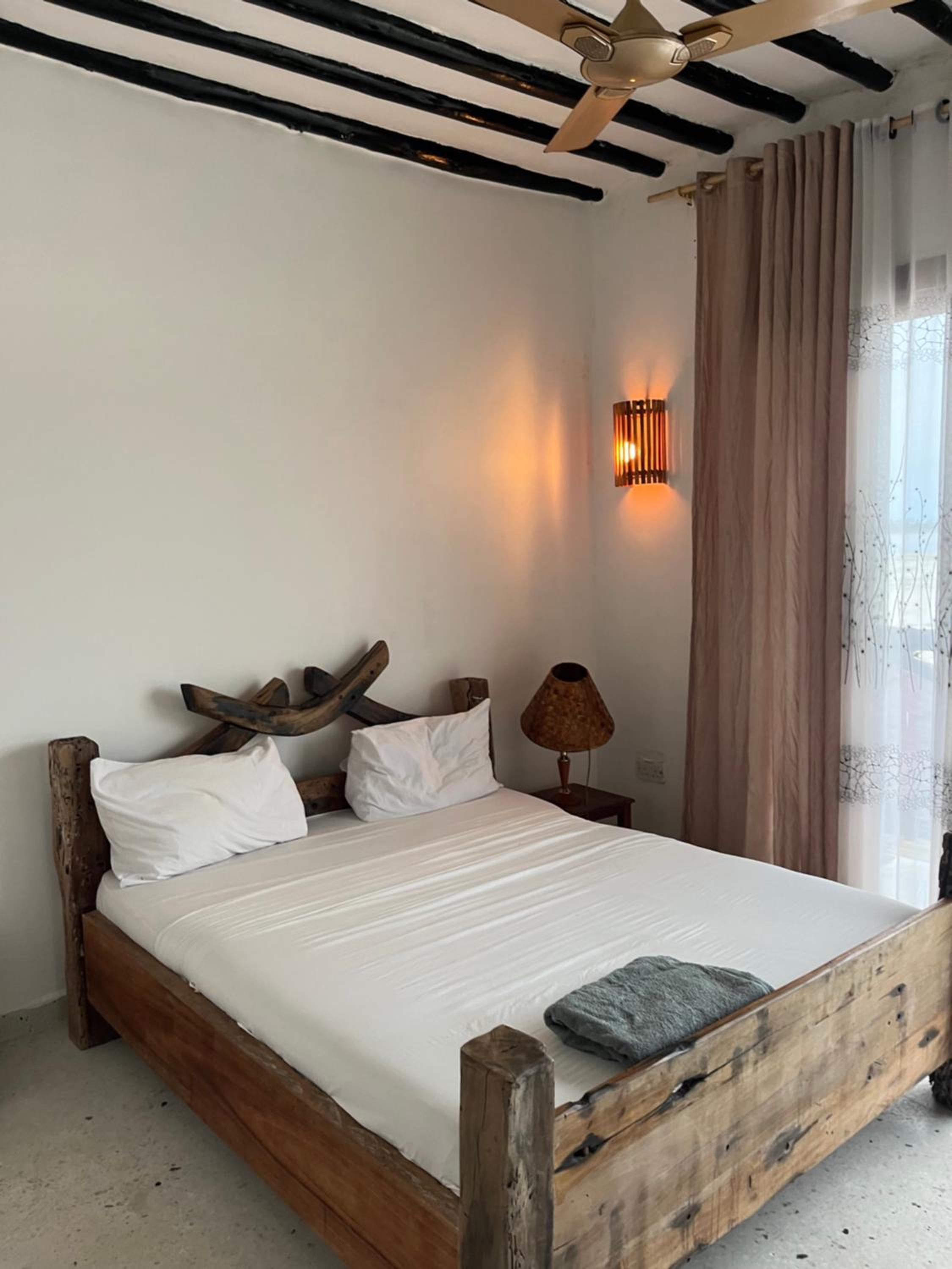 The facilities of the room were a little bare, e.g a kettle but no cups, and the TV didn't work. The curtains were thin so very bright in the morning. There was a new building going up next door, so quite noisy. This bit of Pongwe is extremely tidal. The staff were ok but we had a few misunderstandings. The restaurant food was nice, although there is a strange conversion rate in Pongwe of US$ to shillings, with majority of menus in dollars.