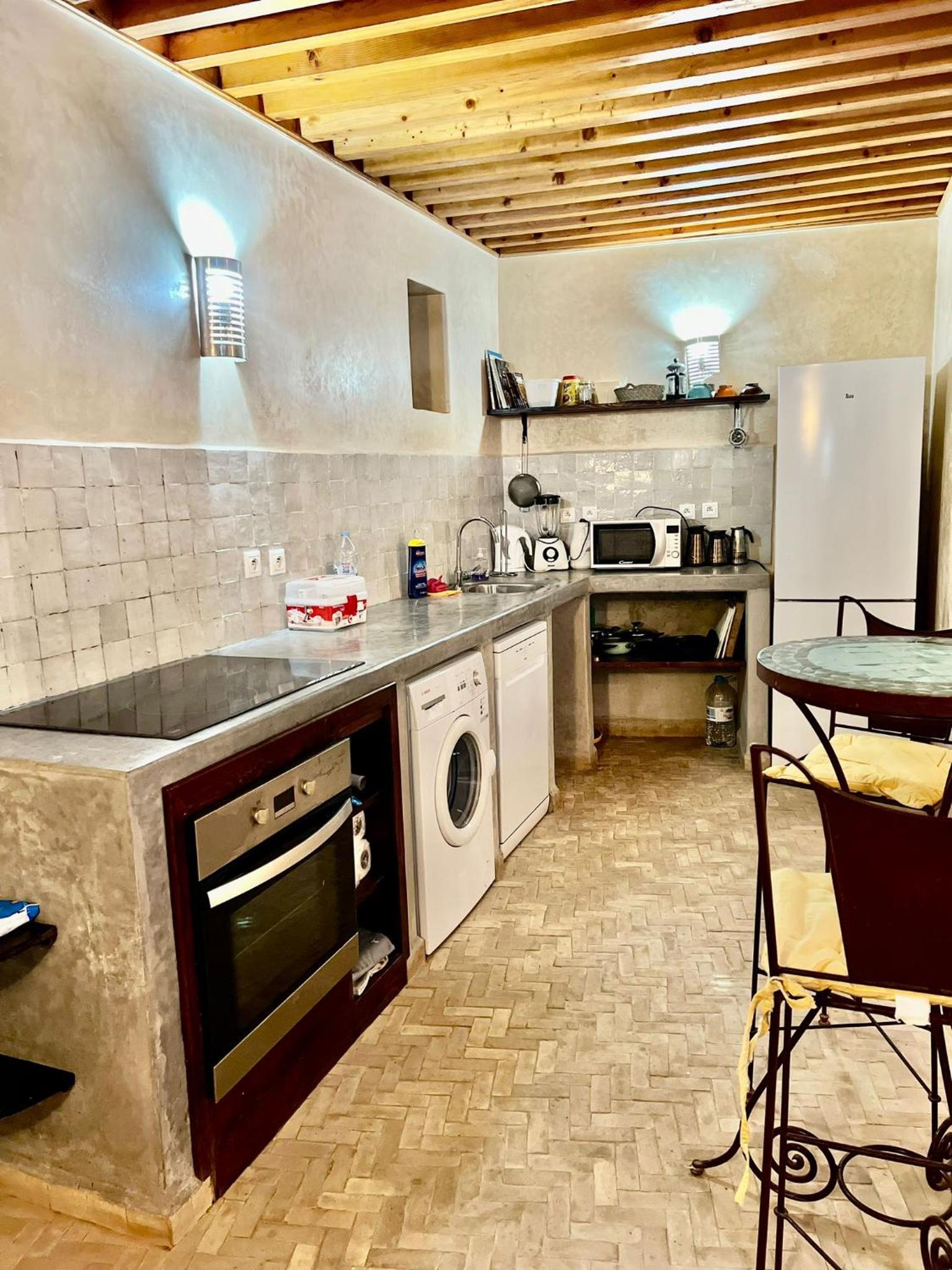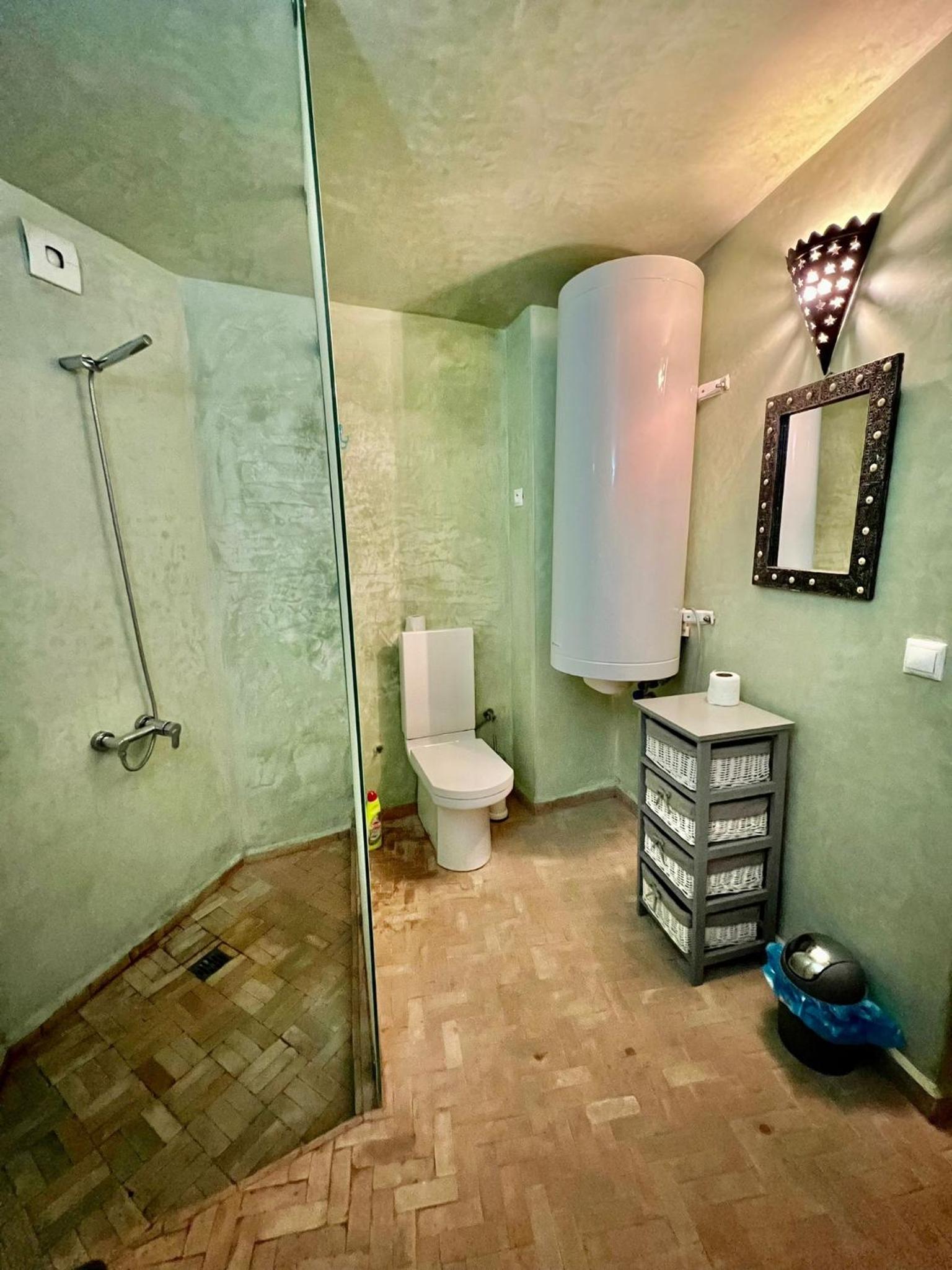 Stunning City Views and Modern Amenities: Enjoy breathtaking city views from the comfort of your terrace at Riad Dar Hanae. The fully equipped kitchen with modern appliances ensures a convenient stay, while the shared bathroom with a shower provides relaxation after a day of exploring.