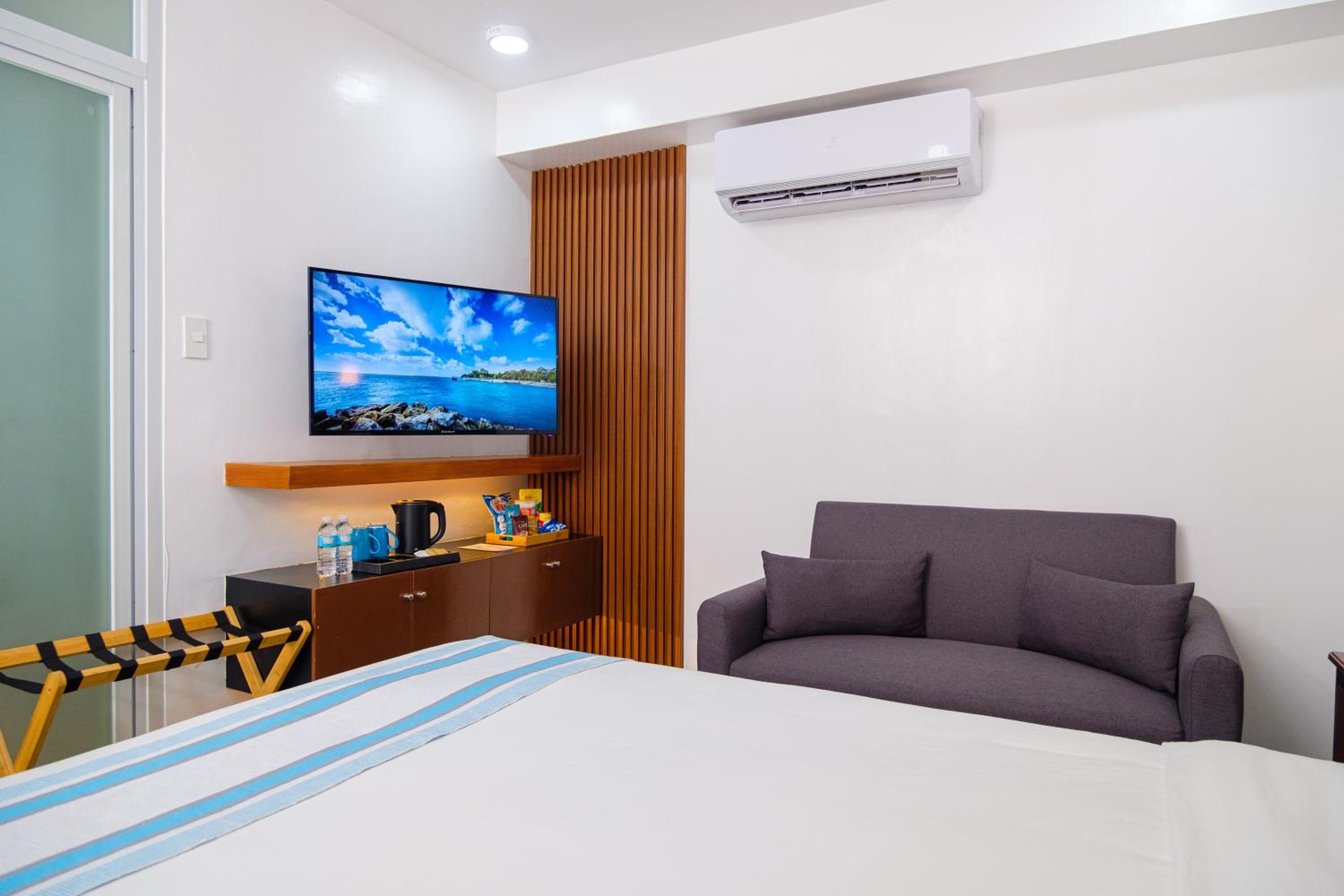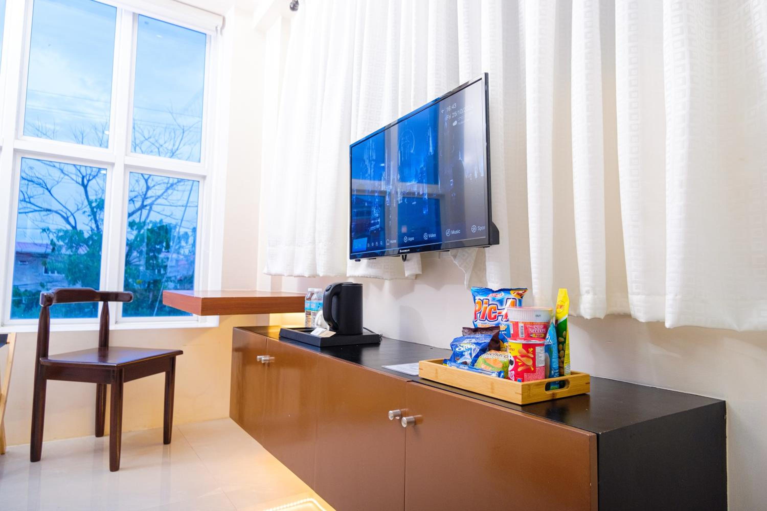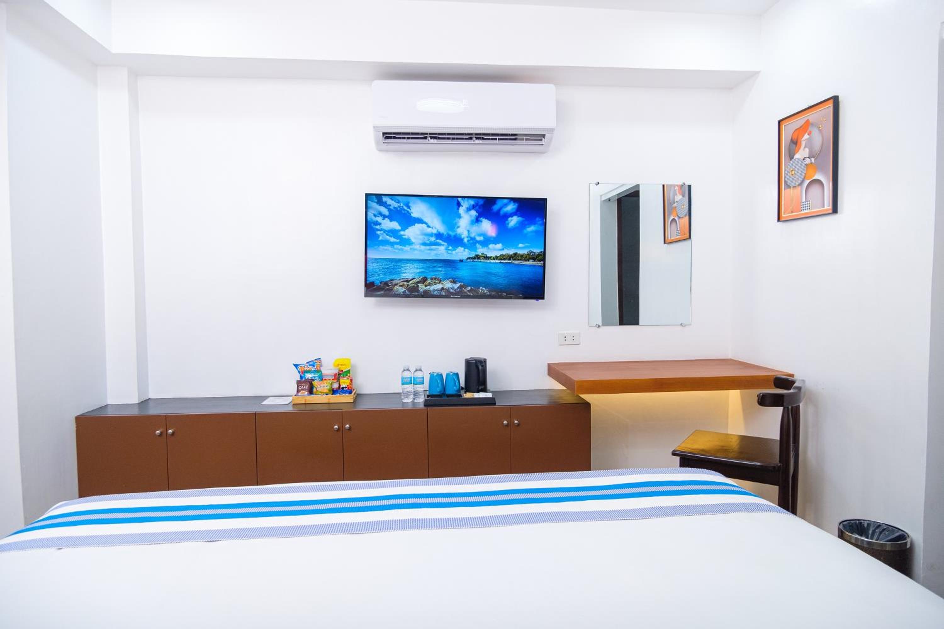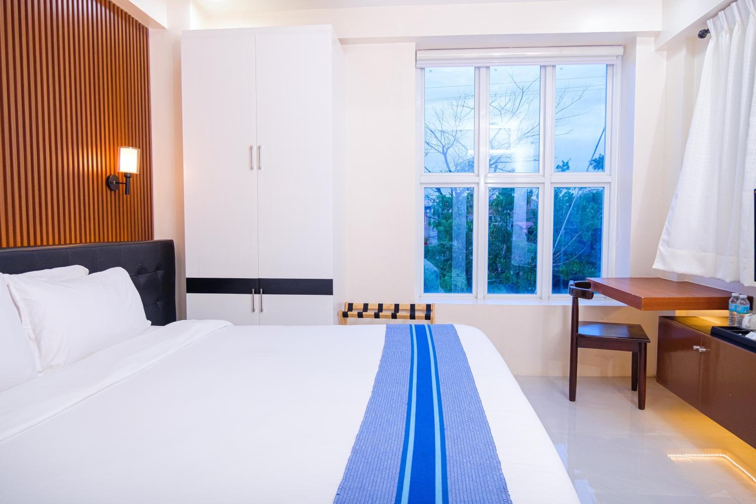 Nice and clean hotel, the best bed we have had in the Philippines! 😁 good food at the rooftop, nice staff and they provided roomservice when we asked for it. Would apprechiate a simple rod with hangers for clothes and tv chanels or something on the tv(if not there is no point to have a tv). But it was very a comfortable stay. A window would also be nice! Dont get why they chose not to have windows but its ok for a night. Note that they dont have an elevator, we didnt mind, but some people might.