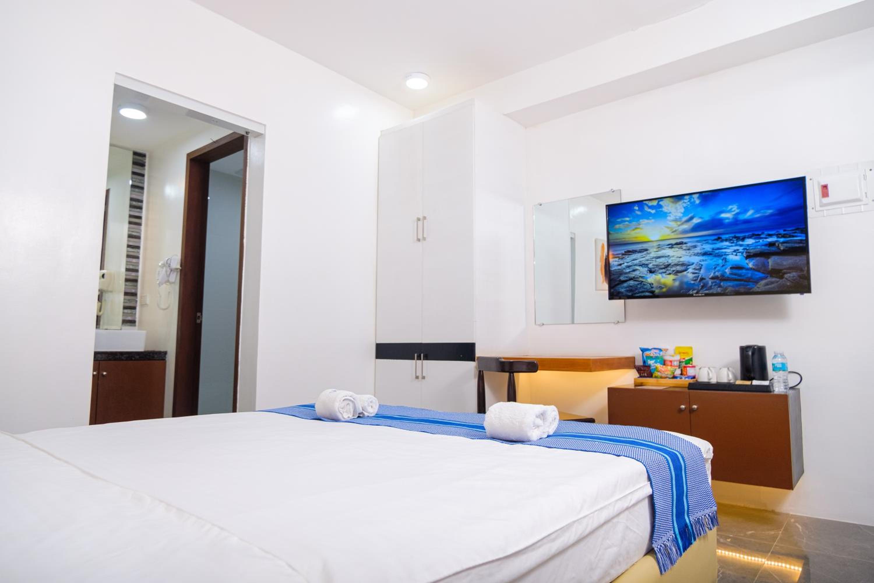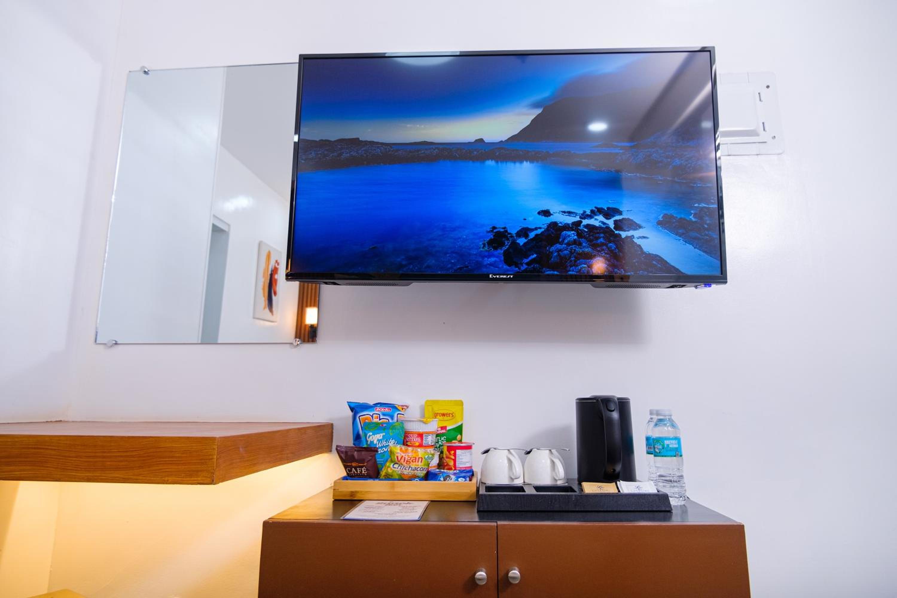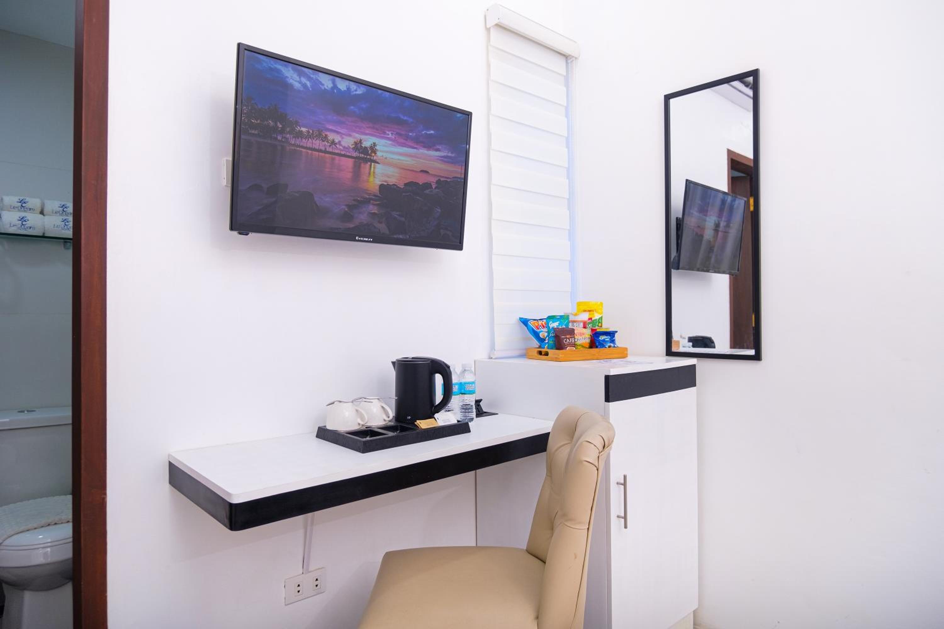 Nice and clean hotel, the best bed we have had in the Philippines! 😁 good food at the rooftop, nice staff and they provided roomservice when we asked for it. Would apprechiate a simple rod with hangers for clothes and tv chanels or something on the tv(if not there is no point to have a tv). But it was very a comfortable stay. A window would also be nice! Dont get why they chose not to have windows but its ok for a night. Note that they dont have an elevator, we didnt mind, but some people might.