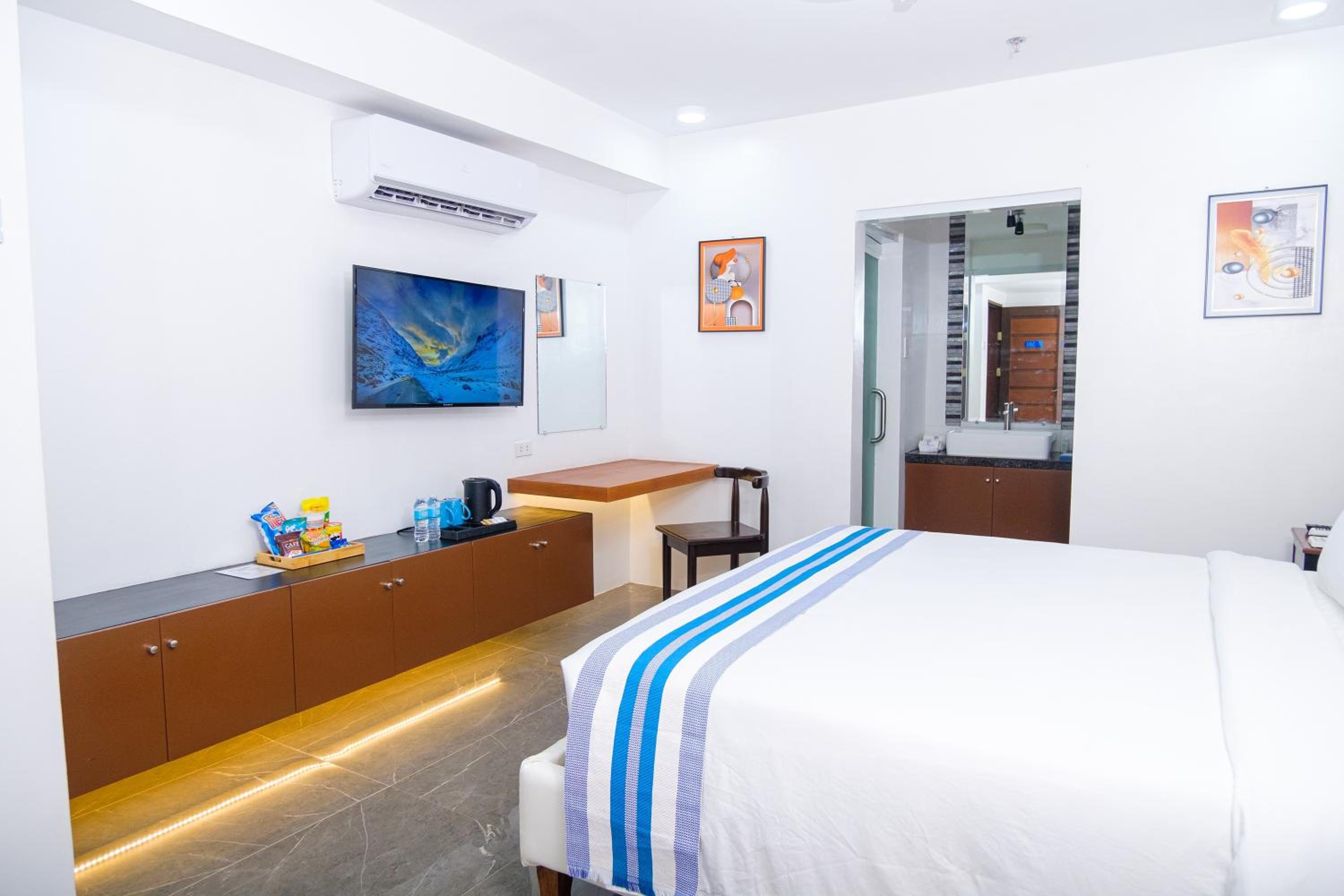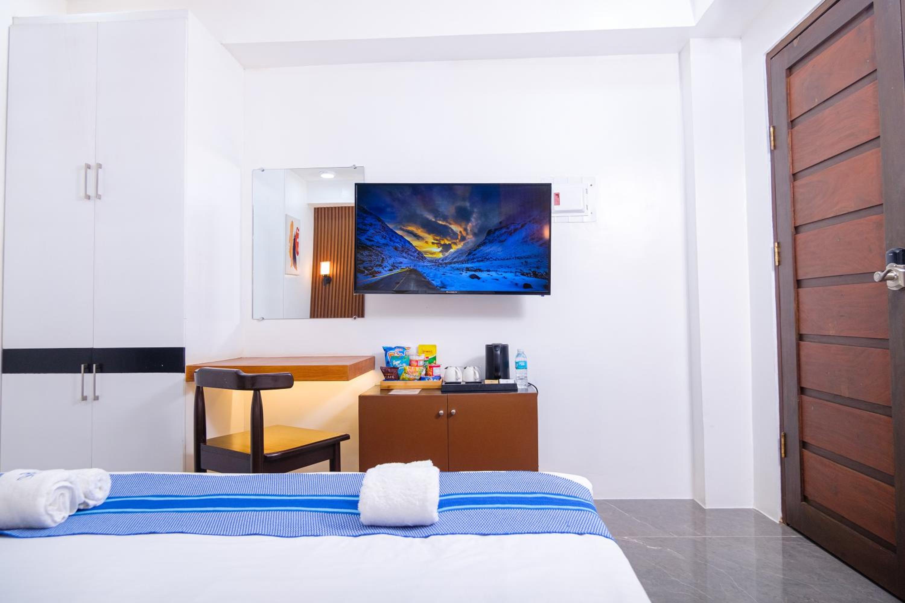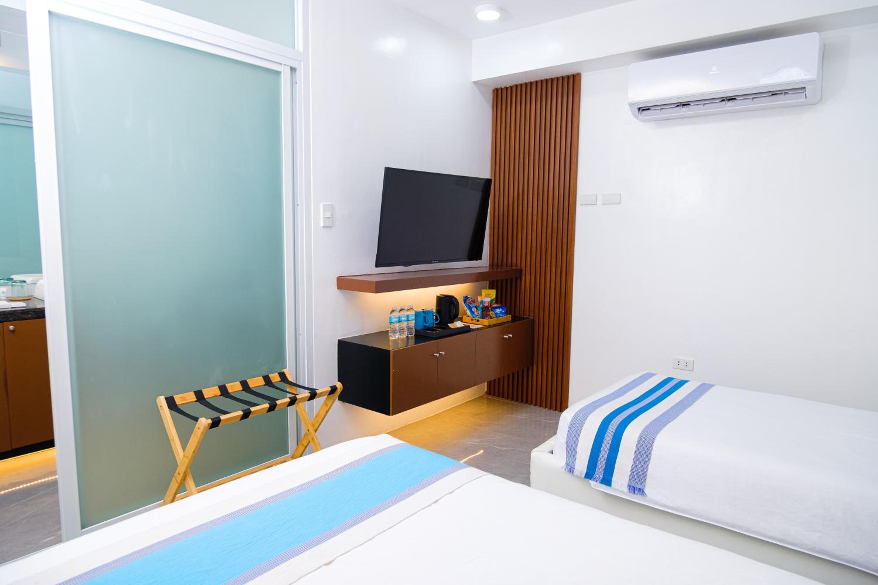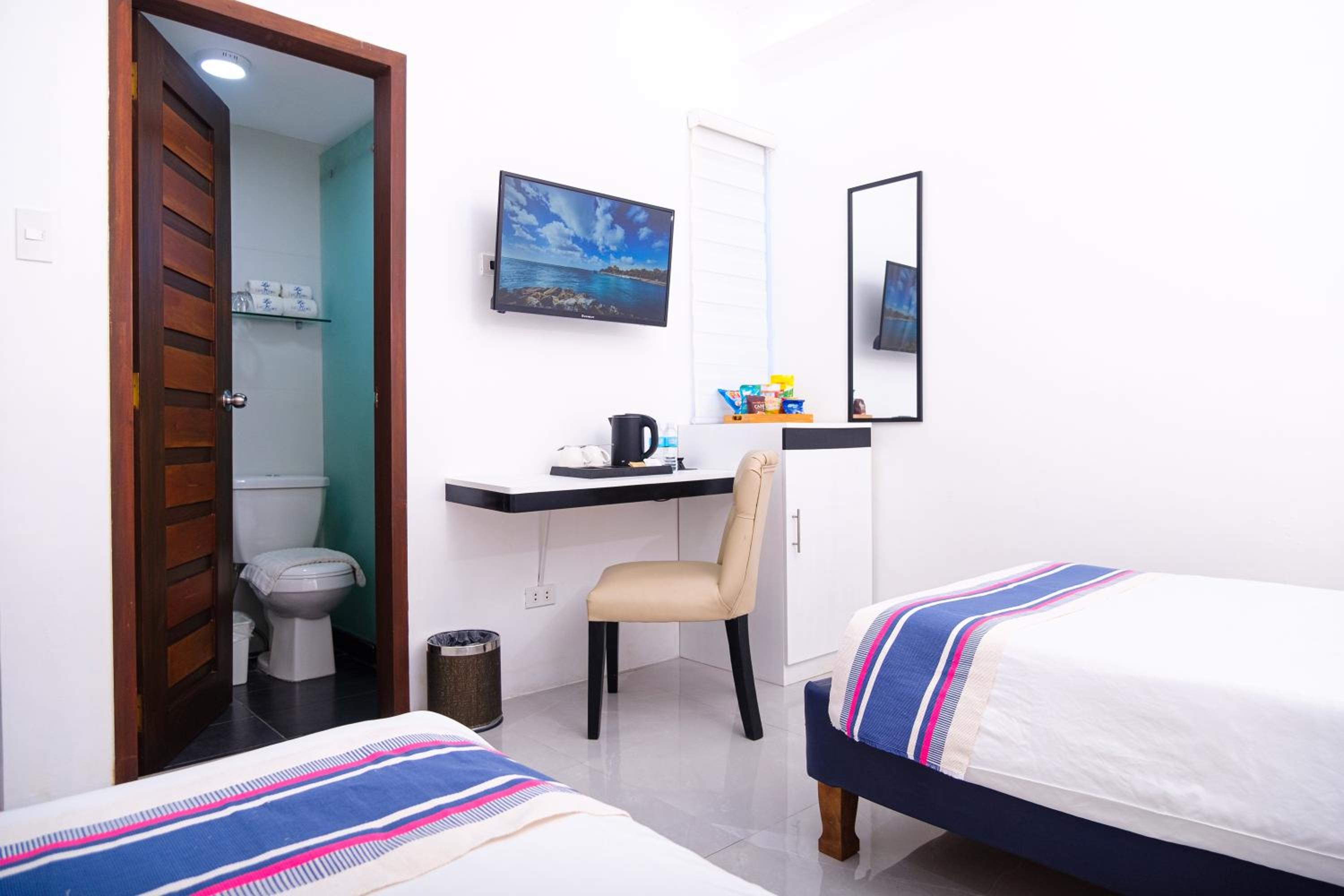 Nice and clean hotel, the best bed we have had in the Philippines! 😁 good food at the rooftop, nice staff and they provided roomservice when we asked for it. Would apprechiate a simple rod with hangers for clothes and tv chanels or something on the tv(if not there is no point to have a tv). But it was very a comfortable stay. A window would also be nice! Dont get why they chose not to have windows but its ok for a night. Note that they dont have an elevator, we didnt mind, but some people might.