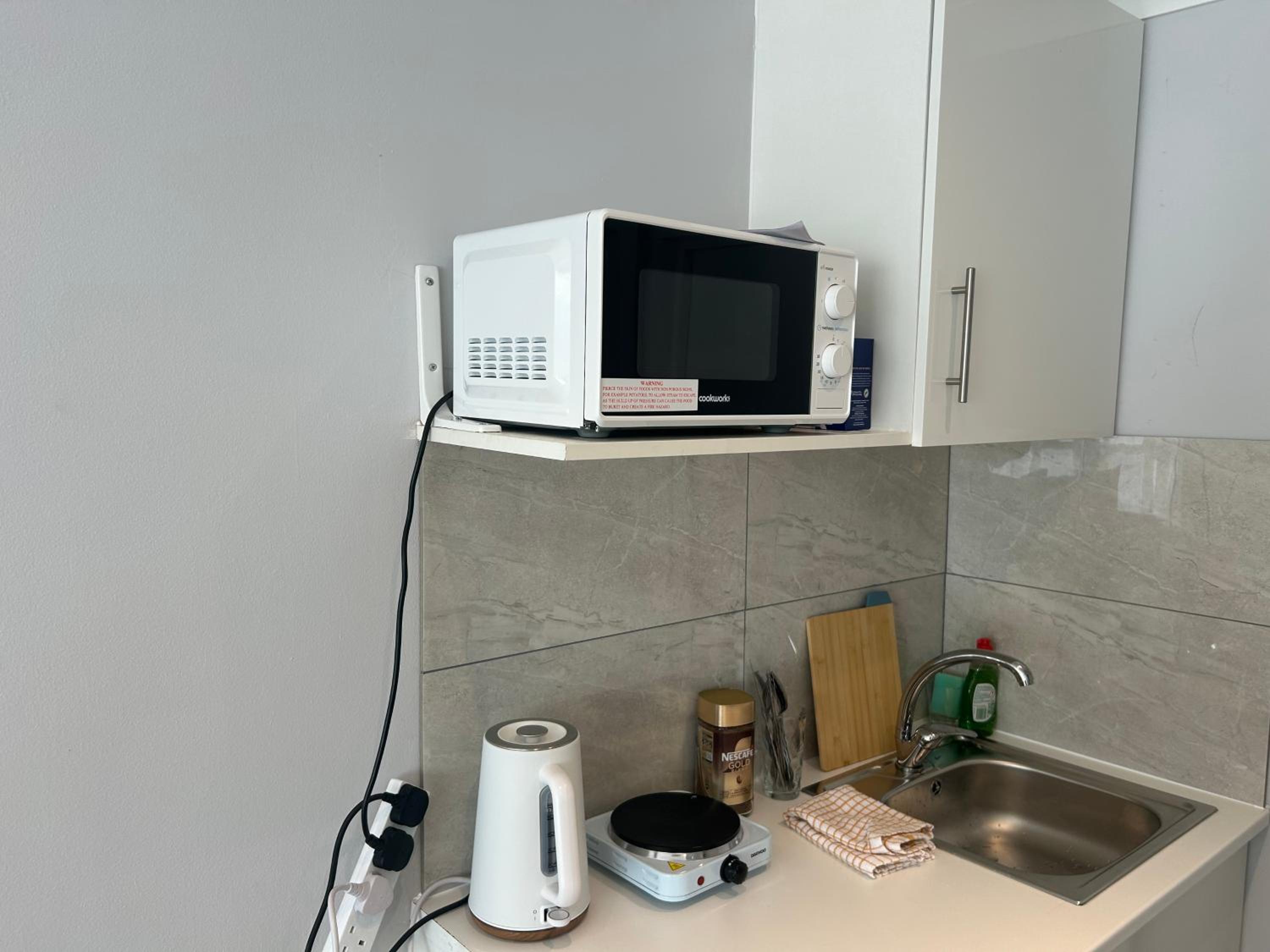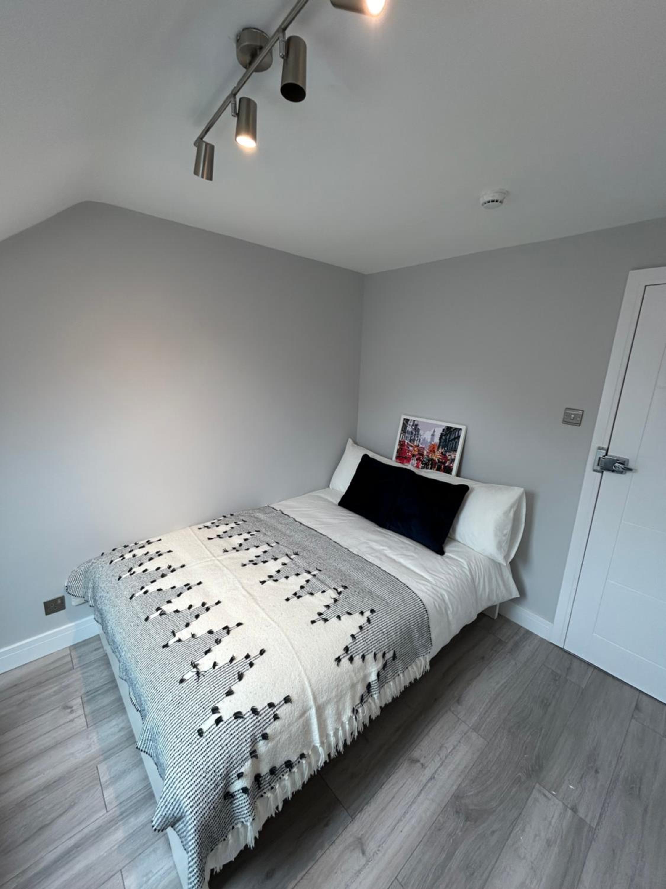 Would be nice to have a bedside cabinet or chest of drawers in room