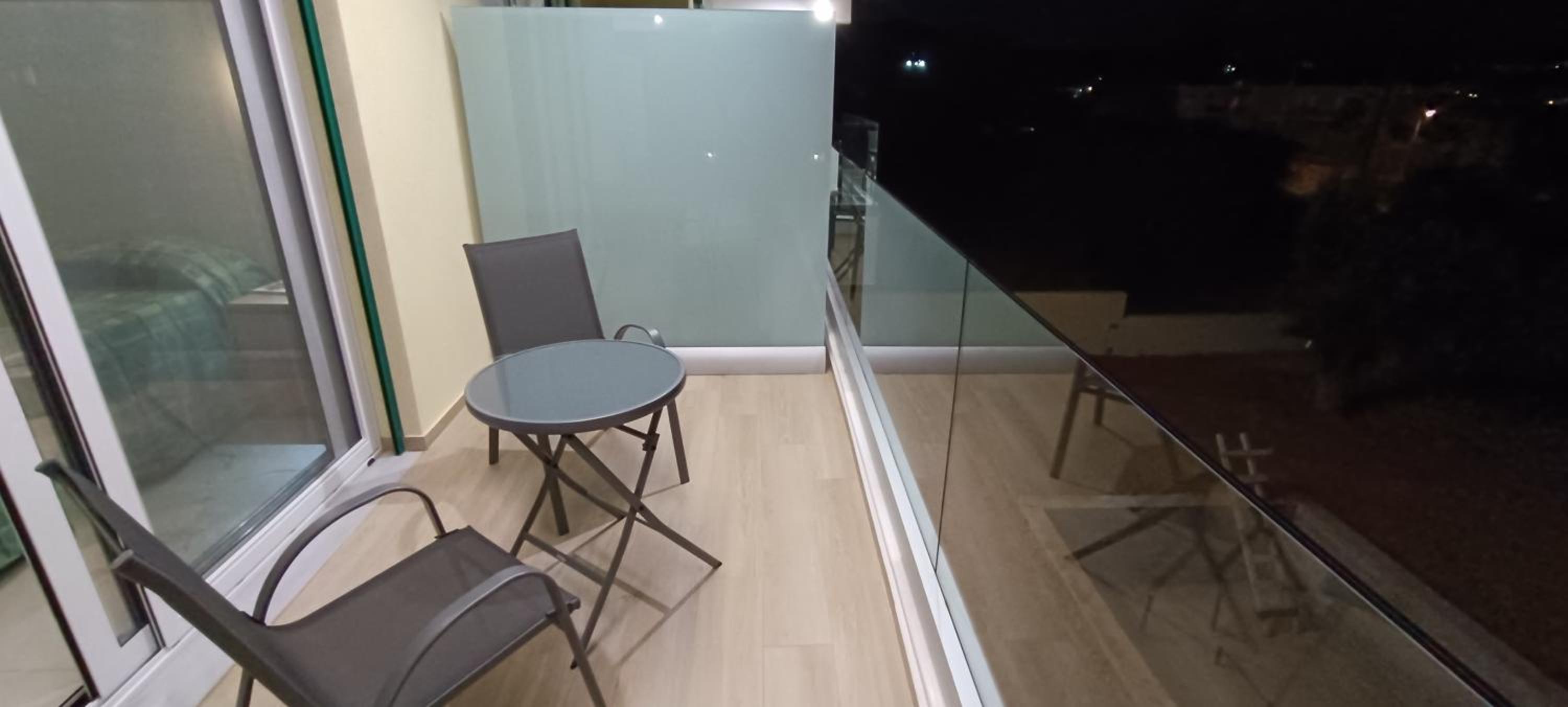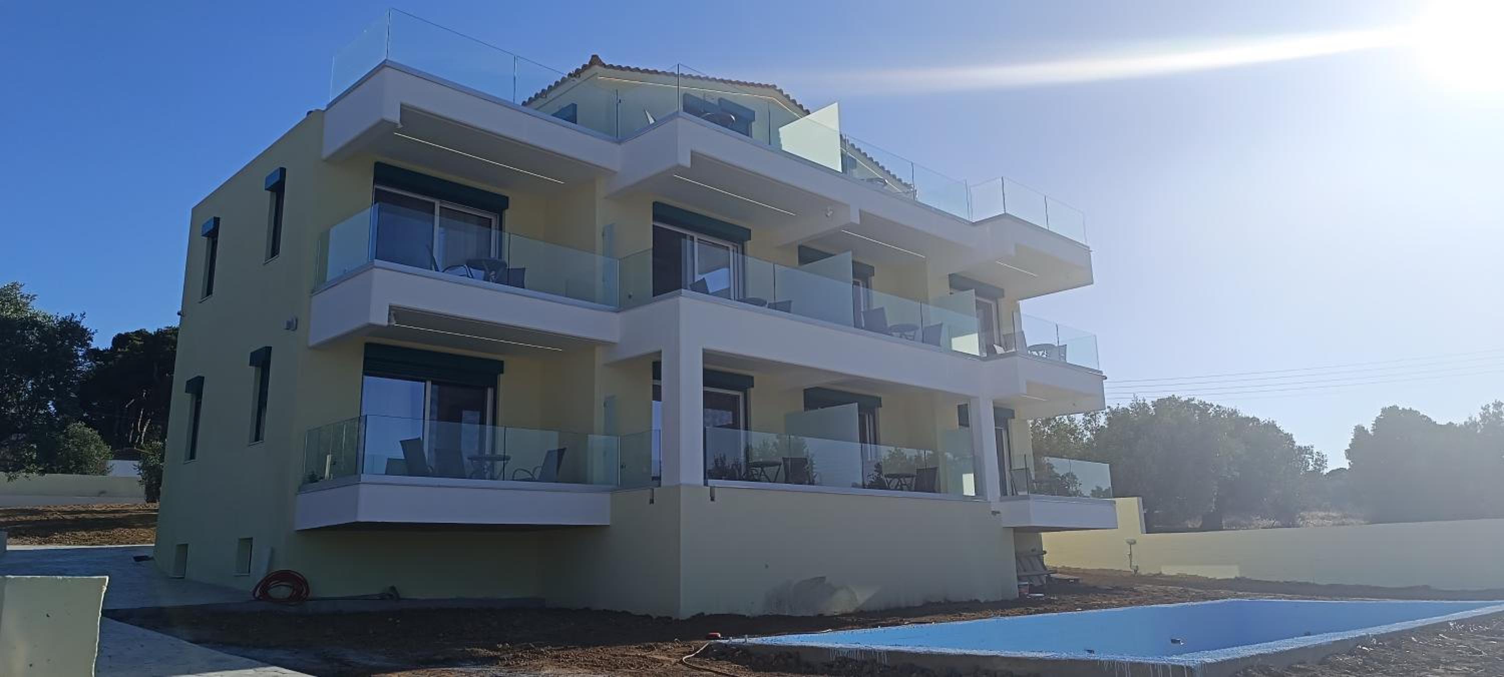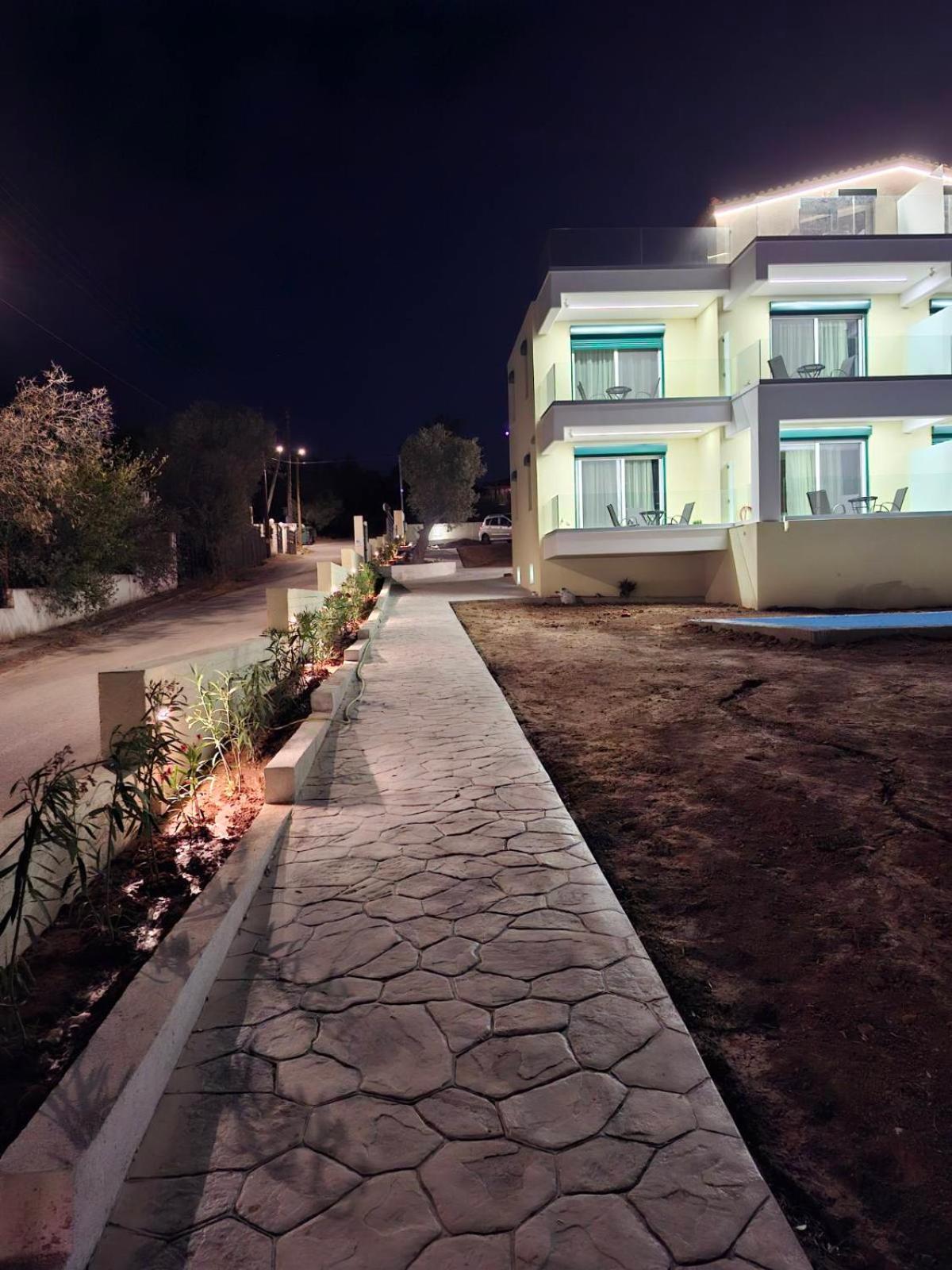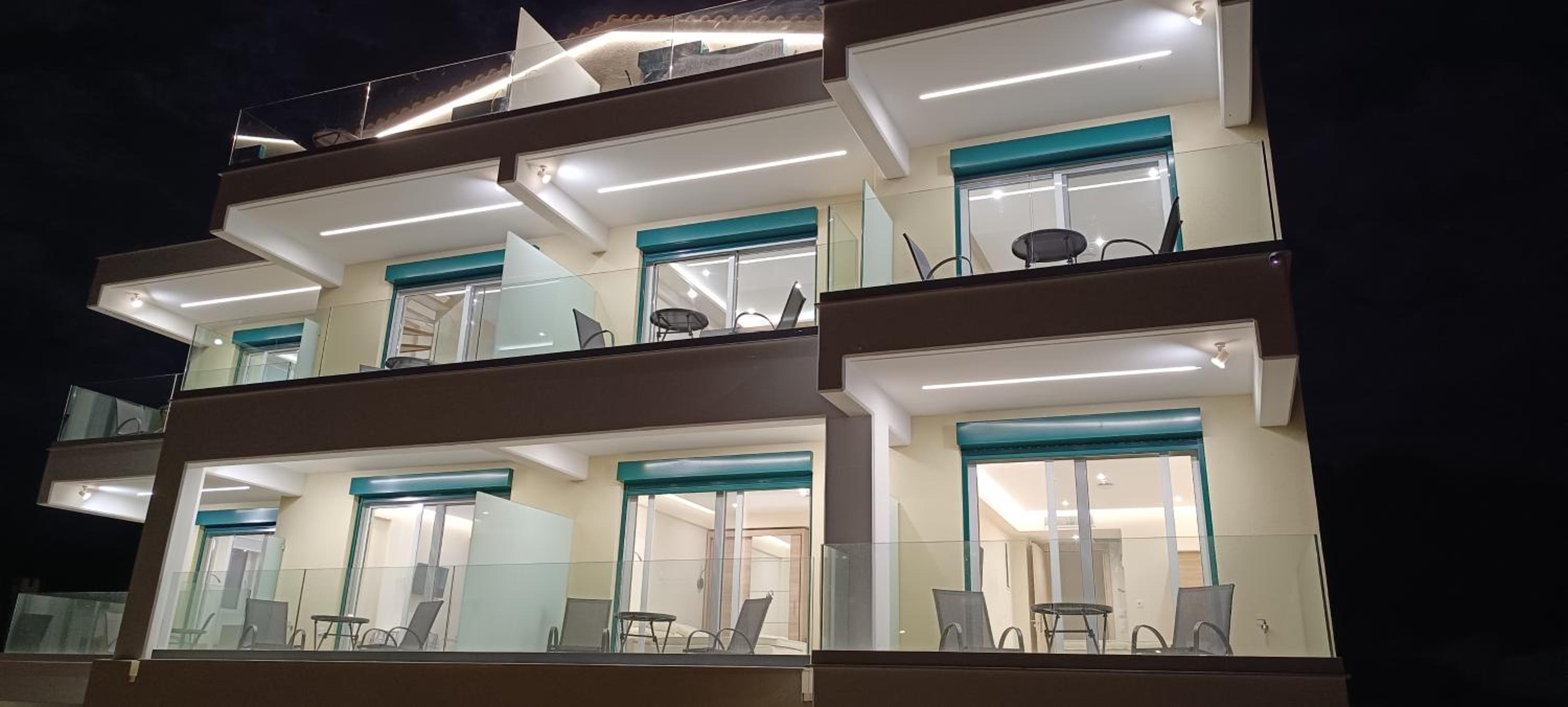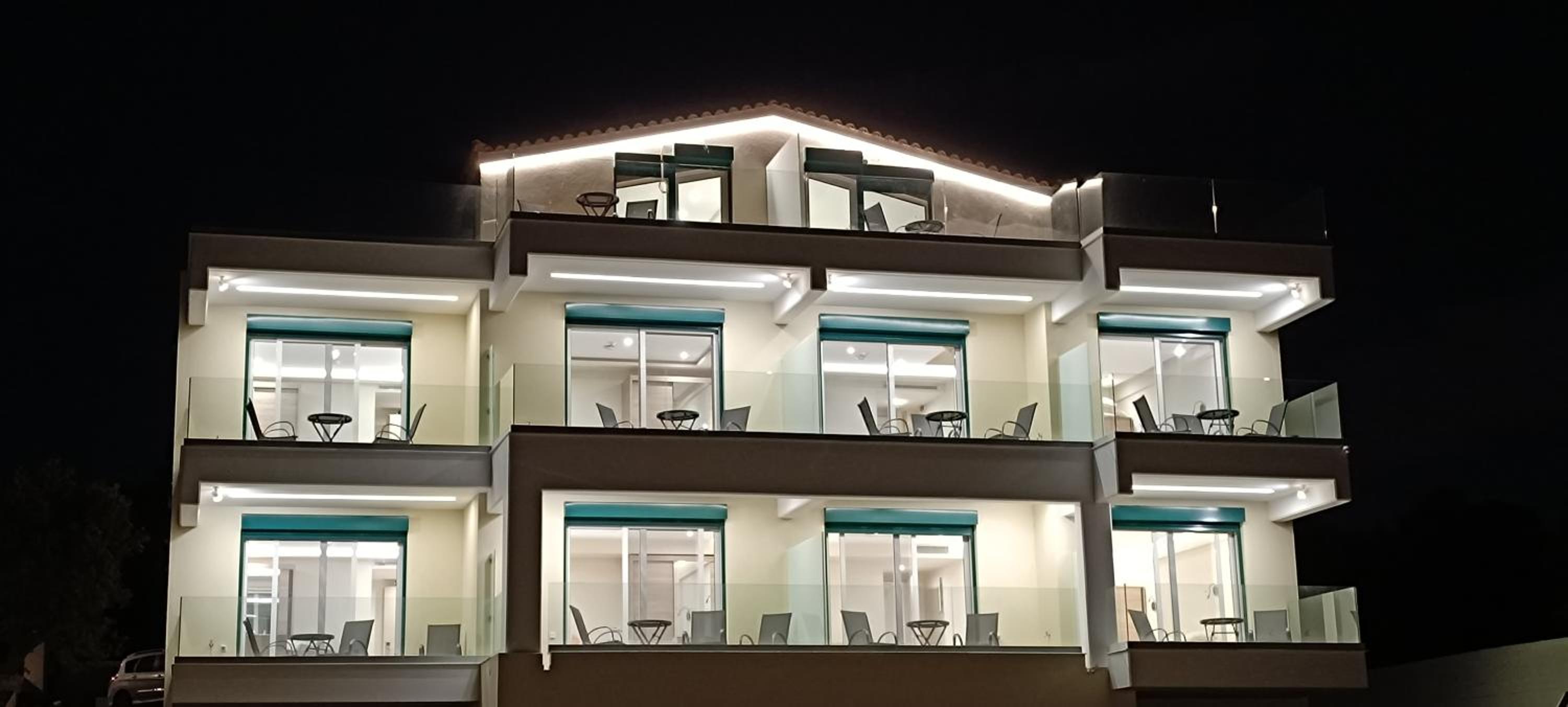 The property was new, spotlessly clean & rooms well appointed with huge bed & tv. There was also a balcony over looking olive trees and the sea in the distance.
