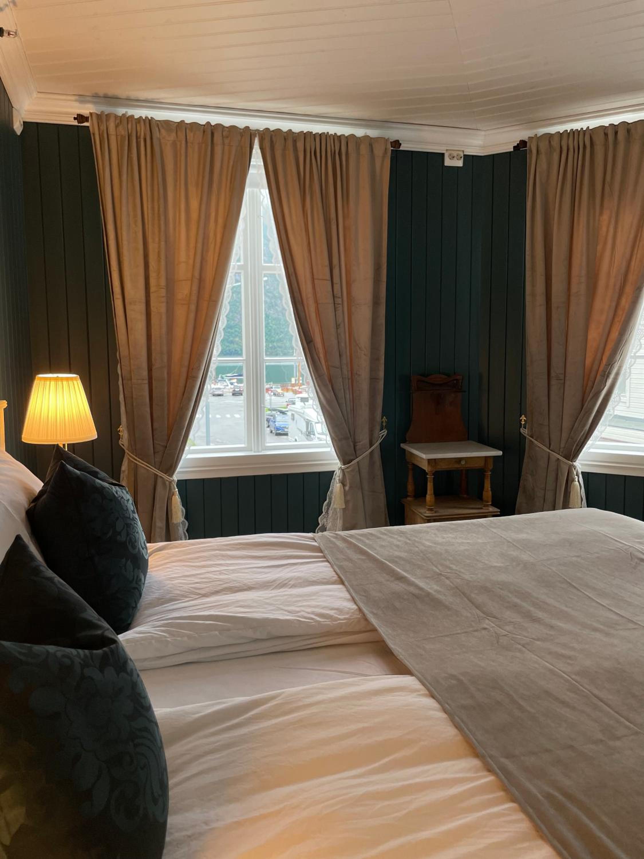 Hotellrummet kostade över 3000 norska kronor per natt. För de pengarna borde man kunna förvänta sig en tv även om det inte stod att det ingick. Vidare var utsikten i jämnhöjd med en annan lägenhet bara 10 meter på andra sidan gatan vilket gjorde att vi fick ha gradiner hela tiden neddragna för att undvika insyn. Utsikten i övrigt var heller inte något att skryta med, såg mest in i väggen på ett annat lägenhetshus. För att se fjorden fick man öppna fönstret och hänga ut med huvudet.