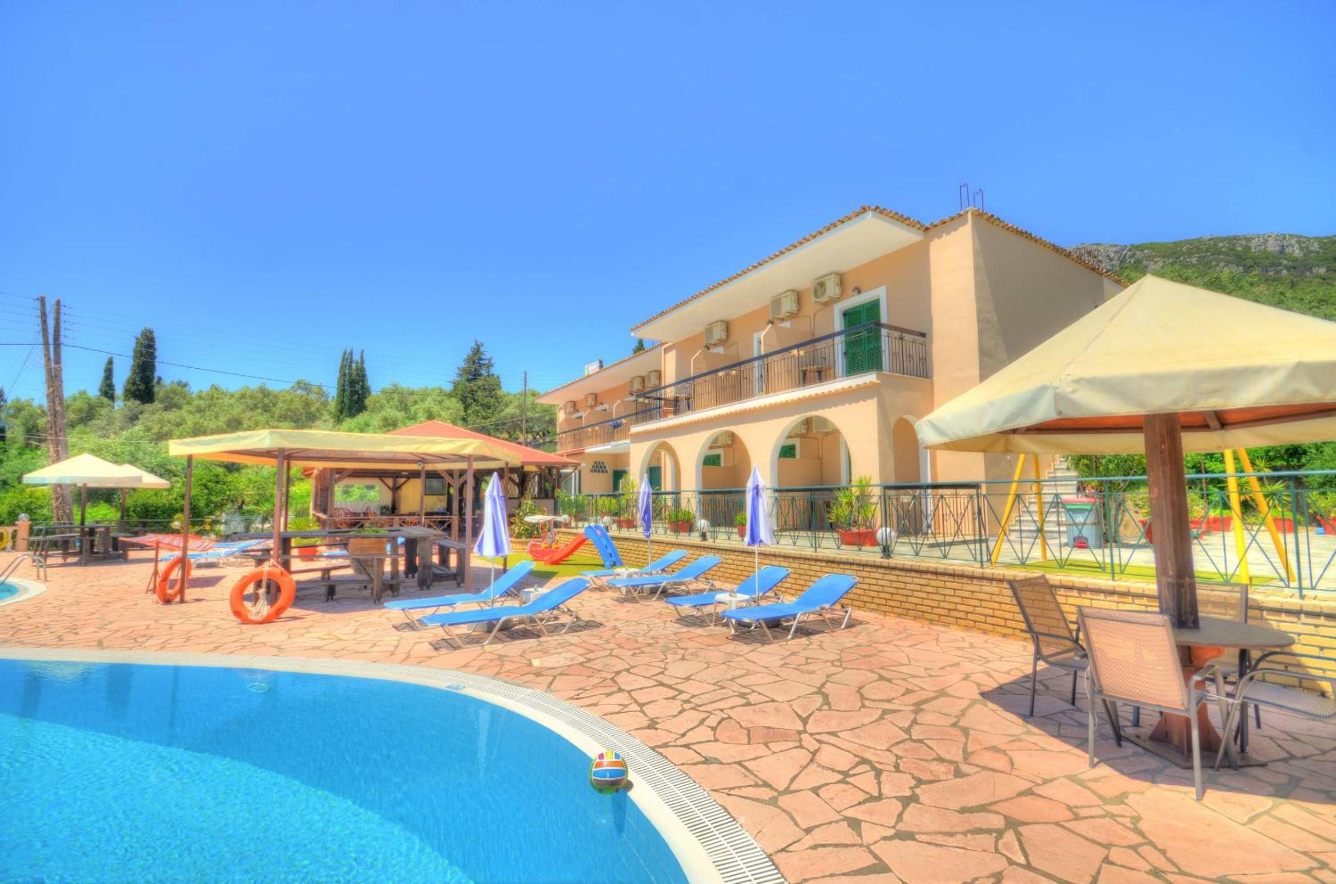 Alojamiento muy recomendable. Nos gustó mucho. La habitación grande, limpia con cocina, nevera y balcón con unas vistas muy bonitas. El señor del alojamiento muy amable y te ayuda en lo que necesites. Las instalaciones bien, tienen un bar y piscina. La ubicación en la zona de Paleokastritsa a 20-30 minutos caminando a las playas, la verdad que mejor desplazarse en vehiculo de alquiler. Cerca hay restaurantes, una cafeteria y un supermercado. Todo muy bien la verdad!