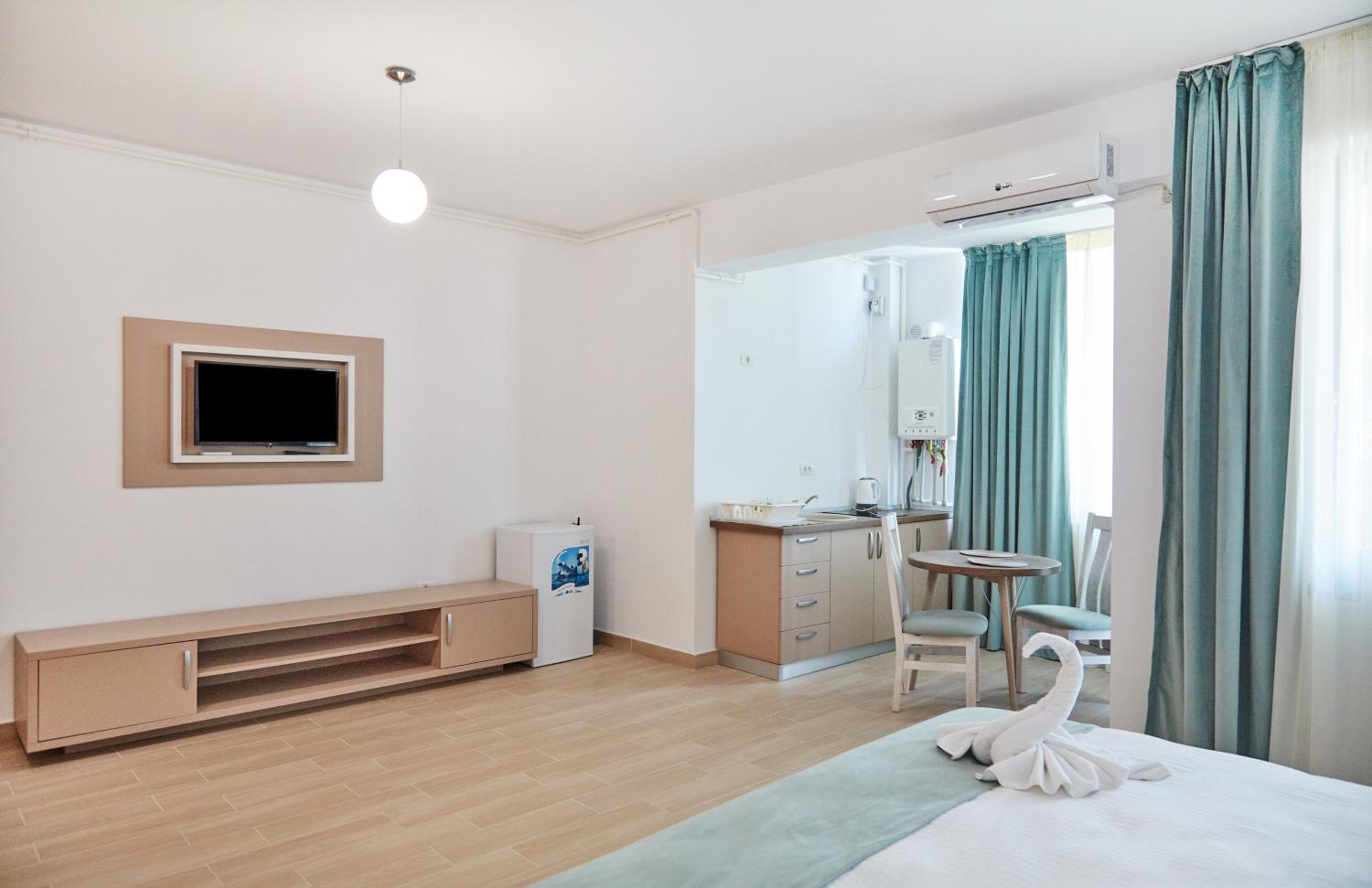 Enjoy modern amenities such as air conditioning, flat-screen TVs, and well-equipped kitchens in every unit. Some rooms even offer stunning sea views.