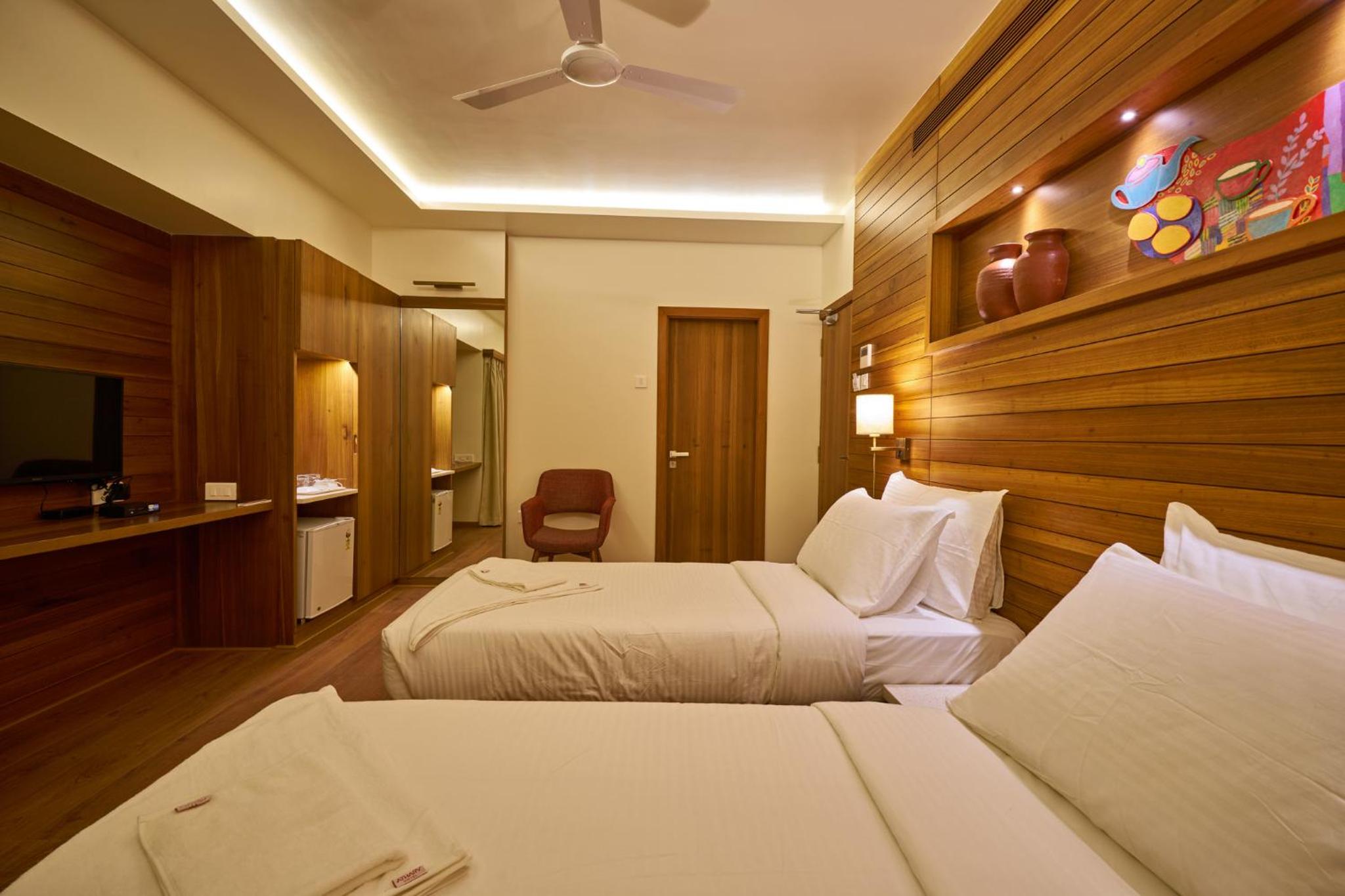 The staff was welcoming, the room was clean, and room service was prompt. The location is very convenient, right next to the bus stand.