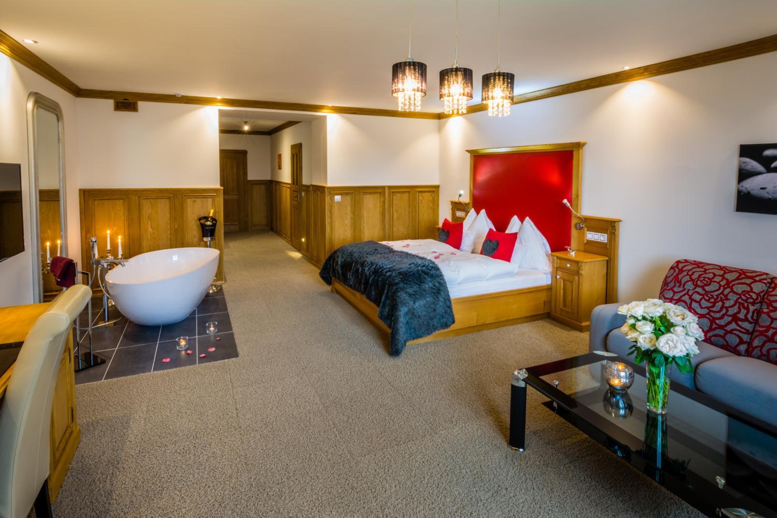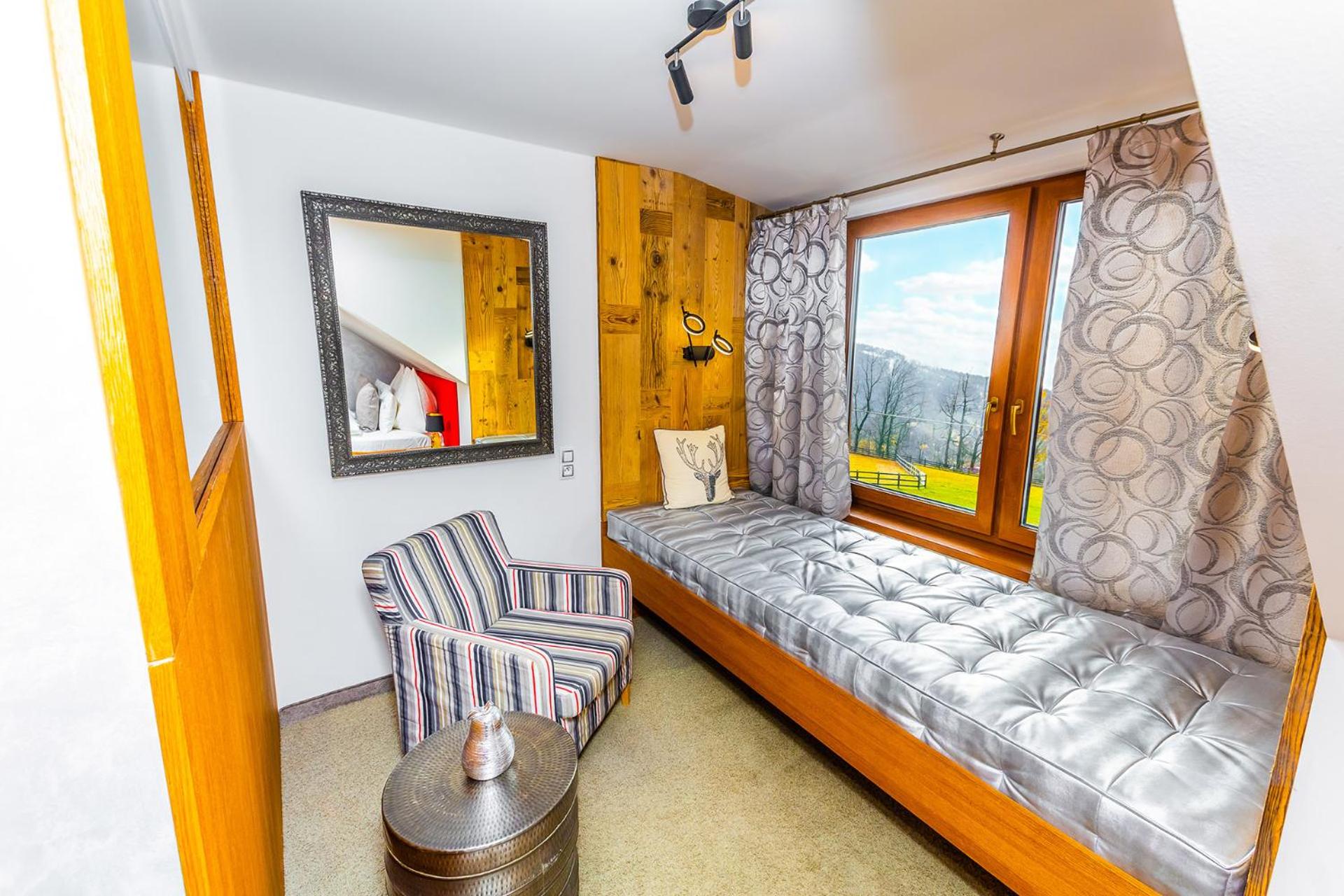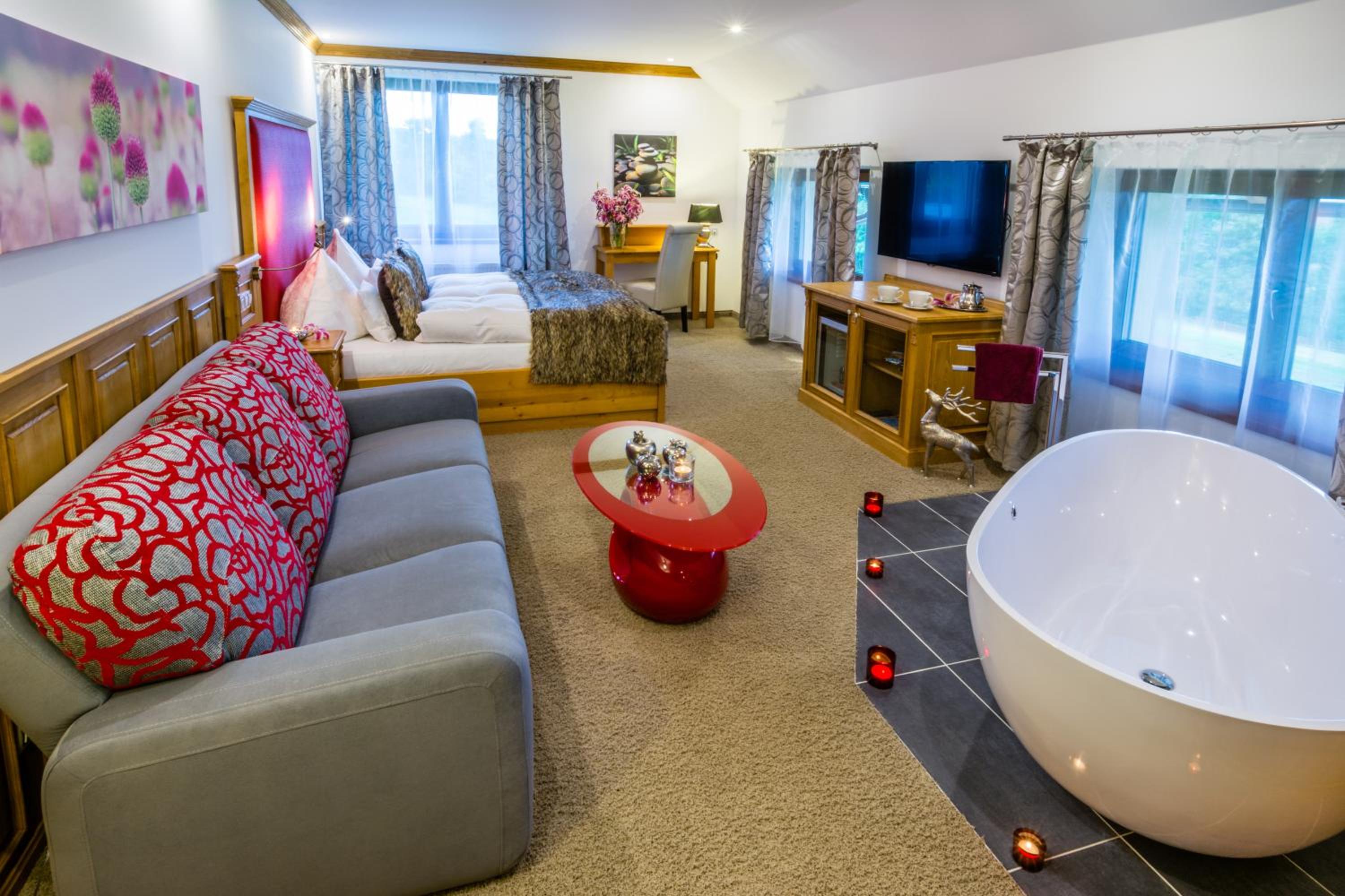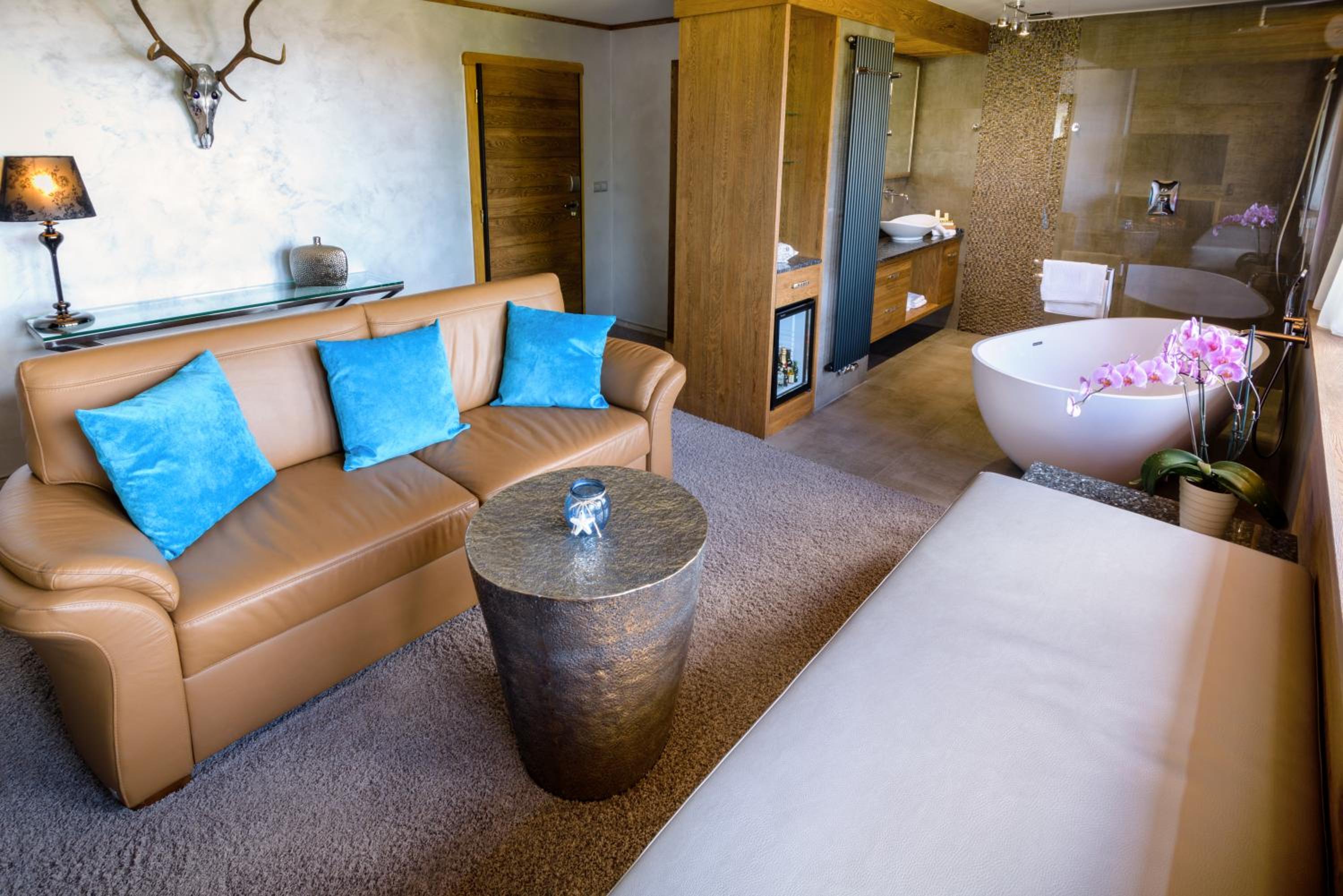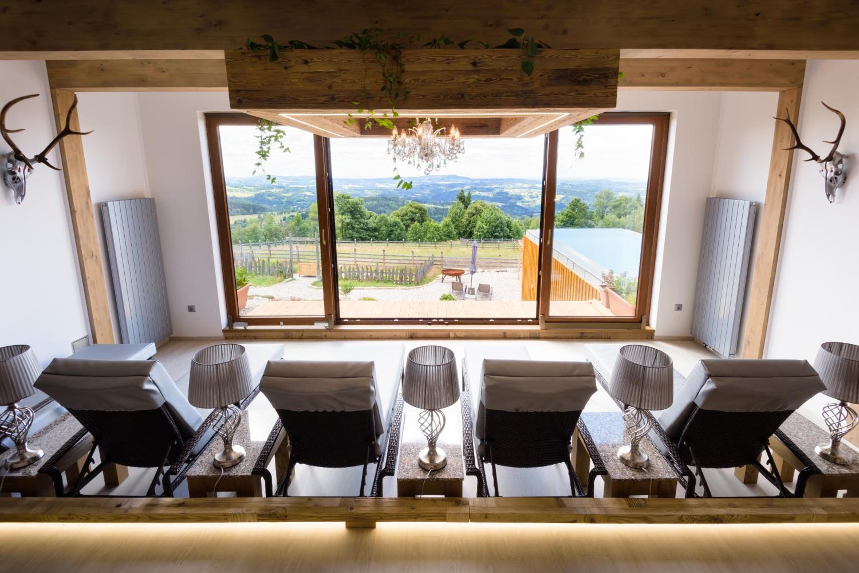 Enjoy delicious meals with a view at the restaurant, unwind with various therapies and massages, or stay active at the fitness centre. Explore hiking trails, skiing slopes, and more nearby, then return for a cozy evening by the fireplace.