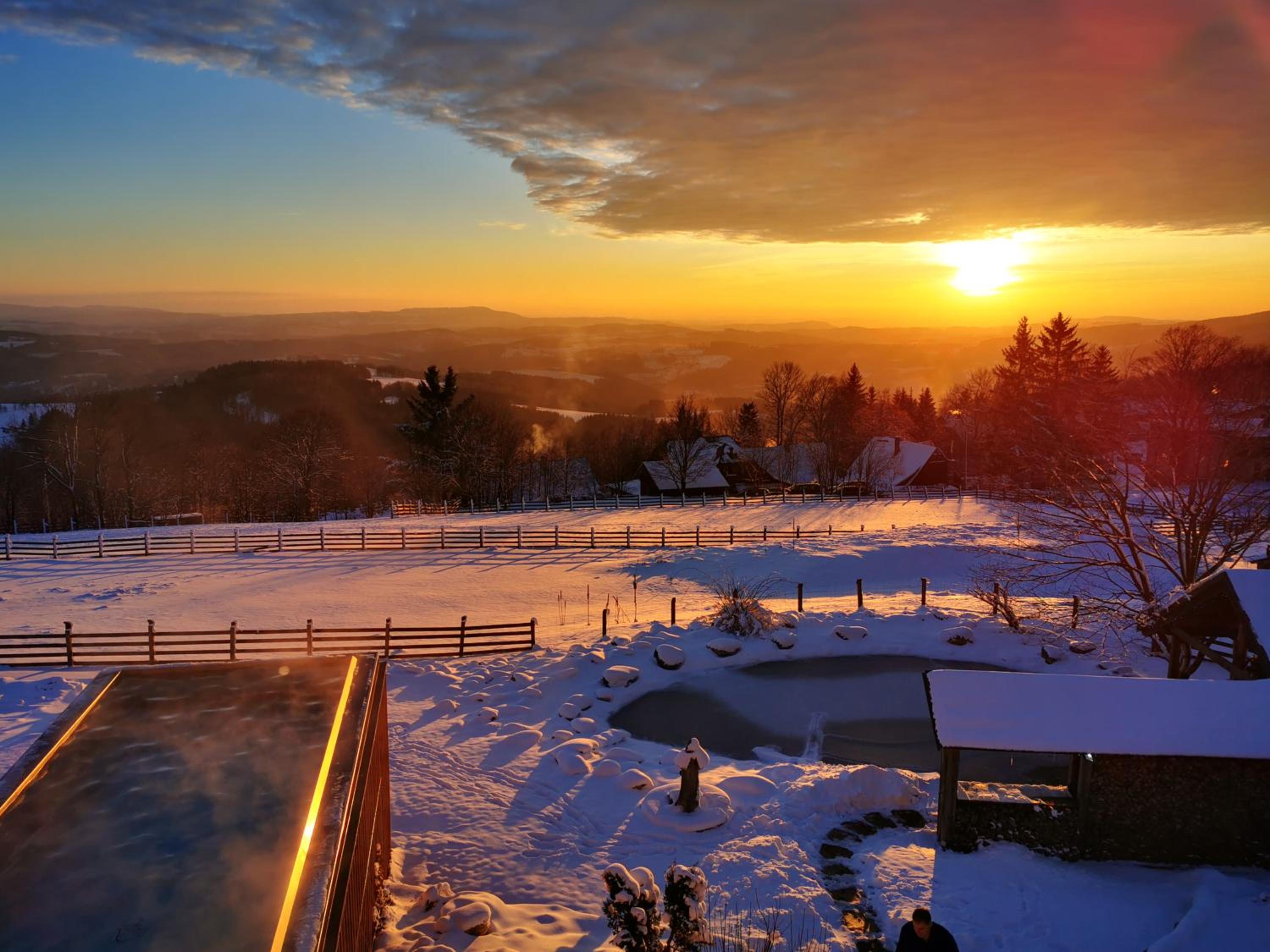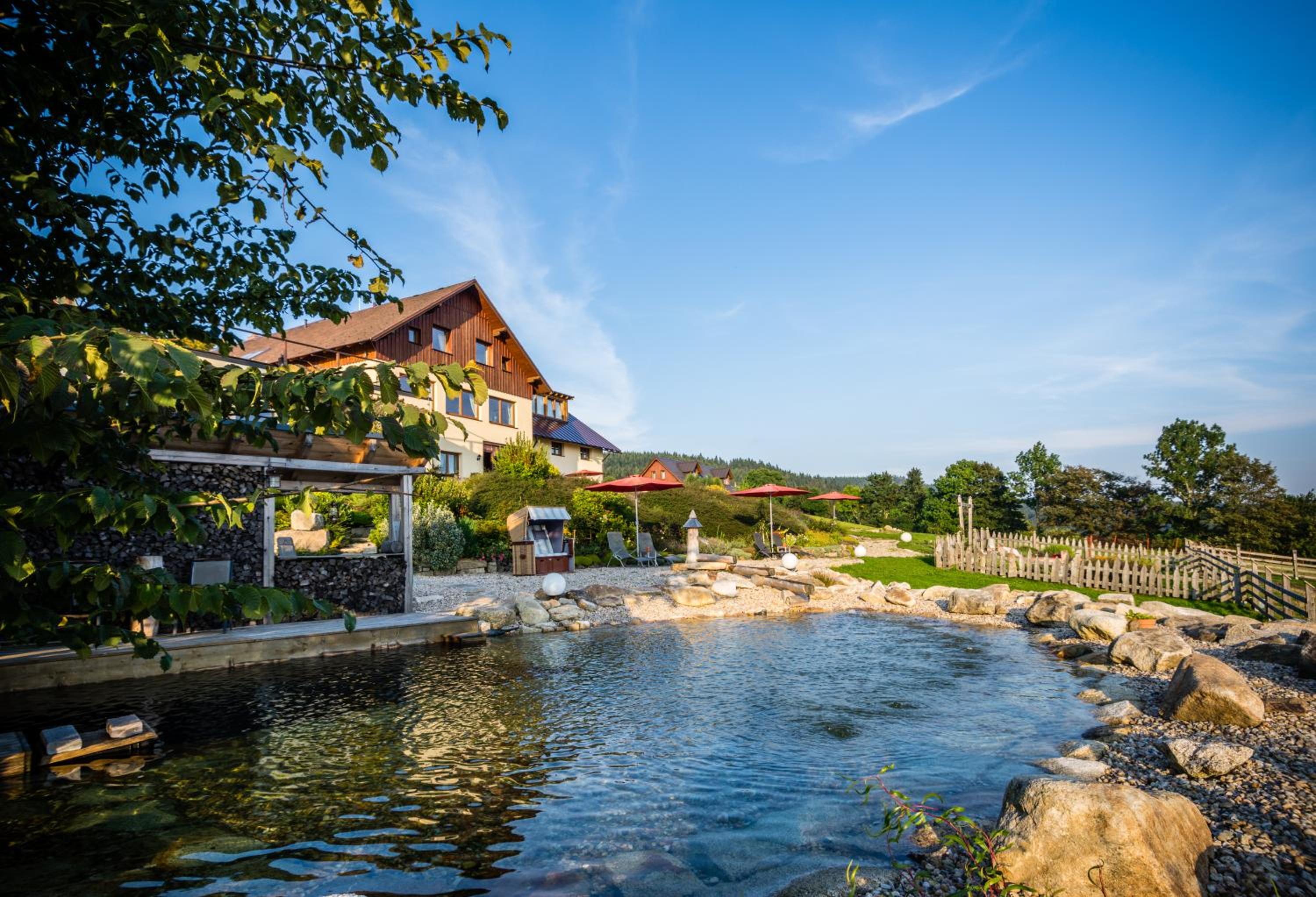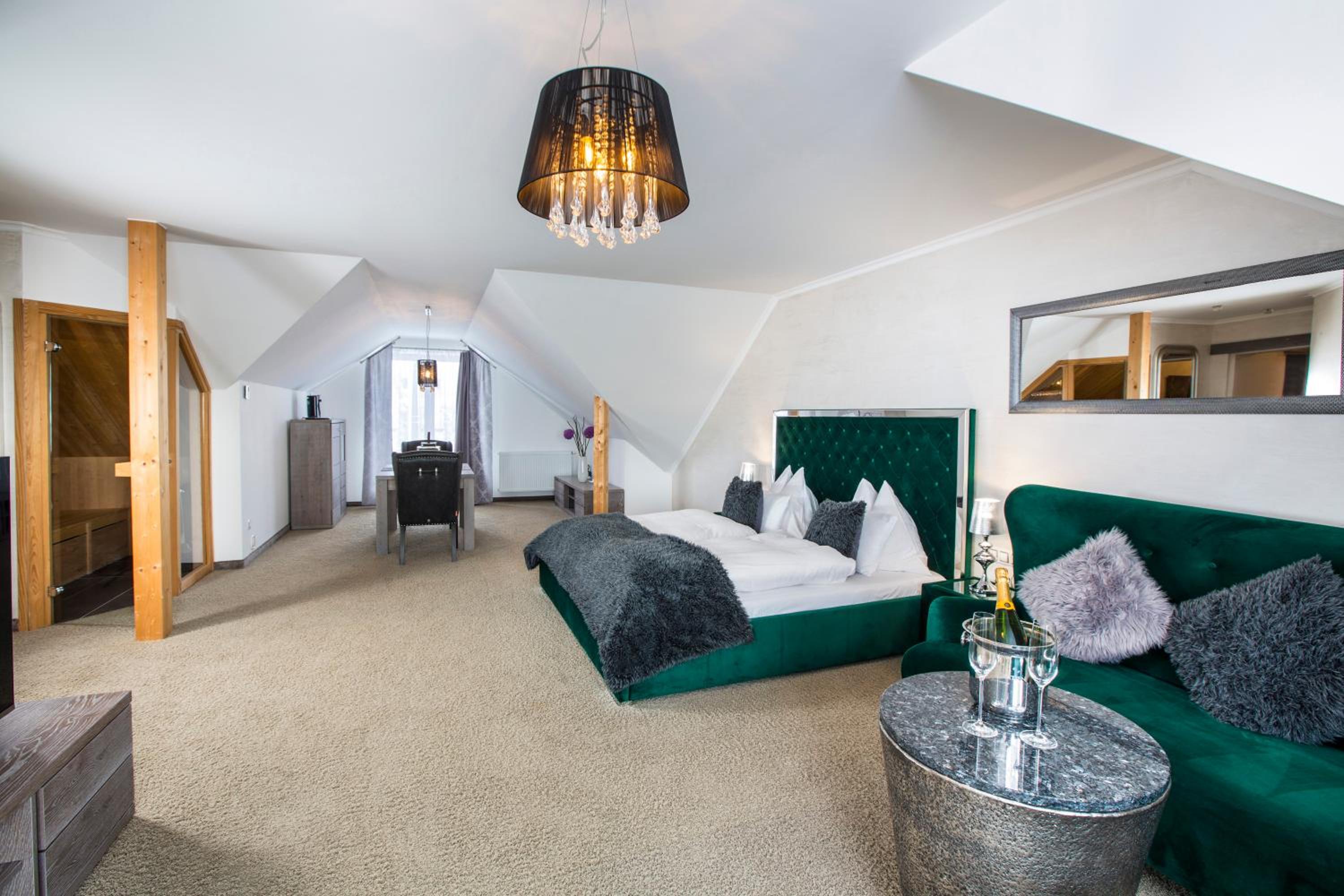 Experience ultimate relaxation at Wellness hotel V Nebi with its heated indoor pool, Finnish and herbal saunas, outdoor Finnish sauna, and cool-off pond in the spacious garden.