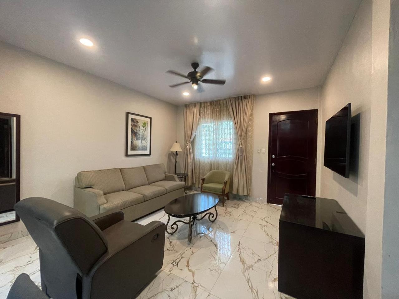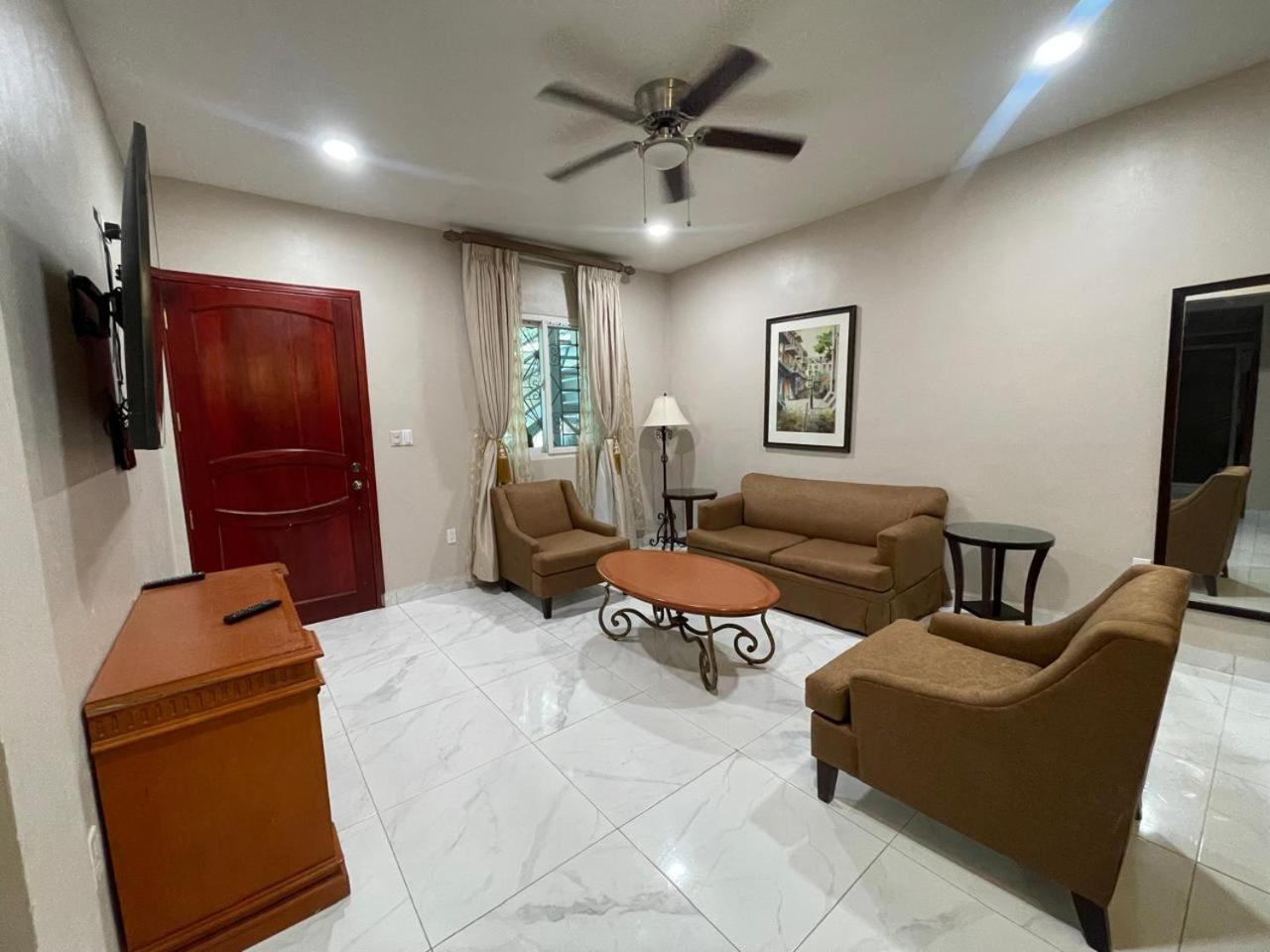 Comfortable and Cozy Suites: Relax in our well-appointed suites featuring a separate bedroom, fully equipped kitchen, and a spacious living room with a flat-screen TV.