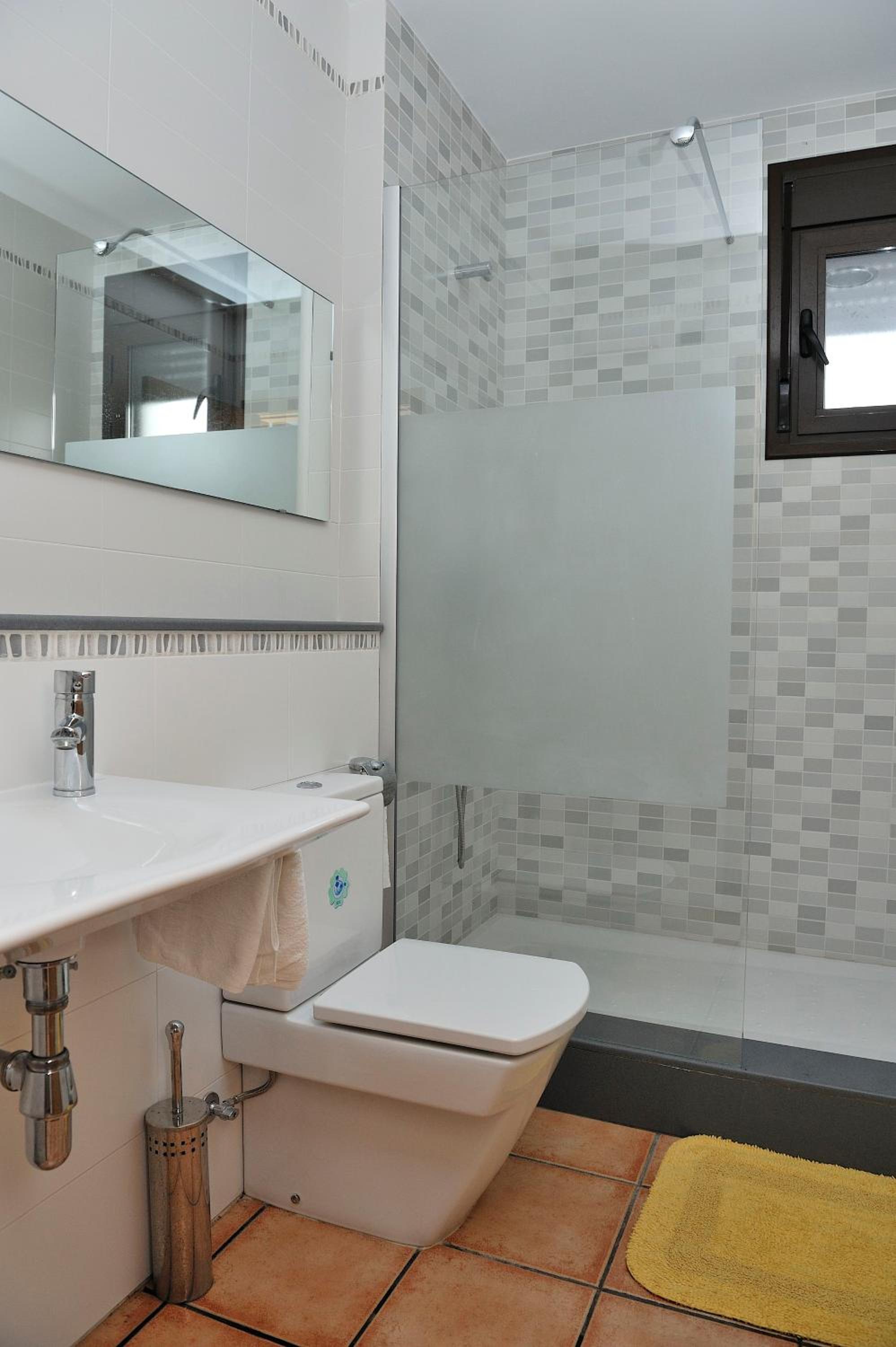 Muy antiguo y mampara y ventana no muy buen estado,mucha cal