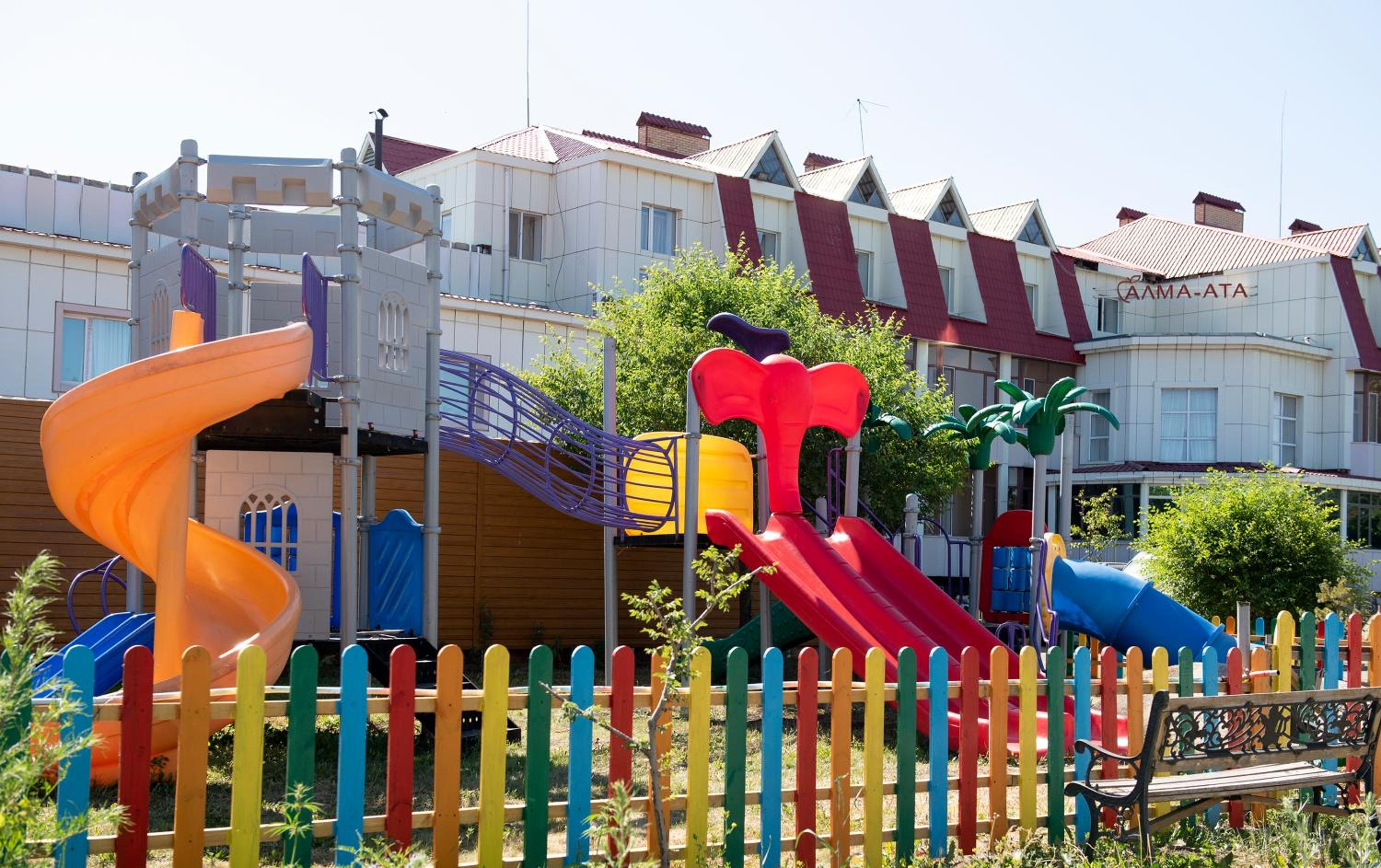 Hotel Alma-Ata in Borovoye offers a unique experience with its private beach area and children's playground, perfect for families looking to unwind and have fun.
