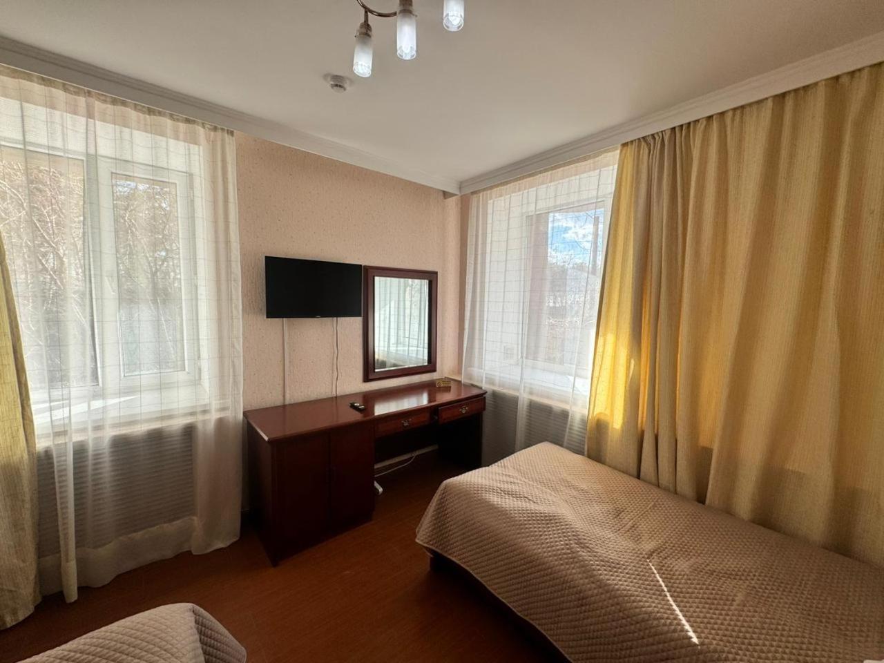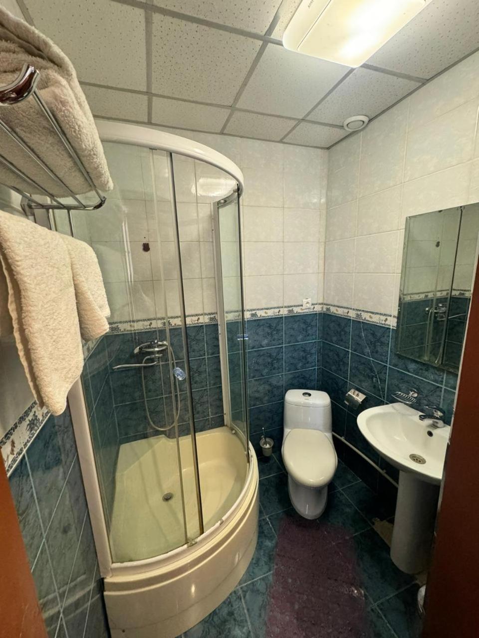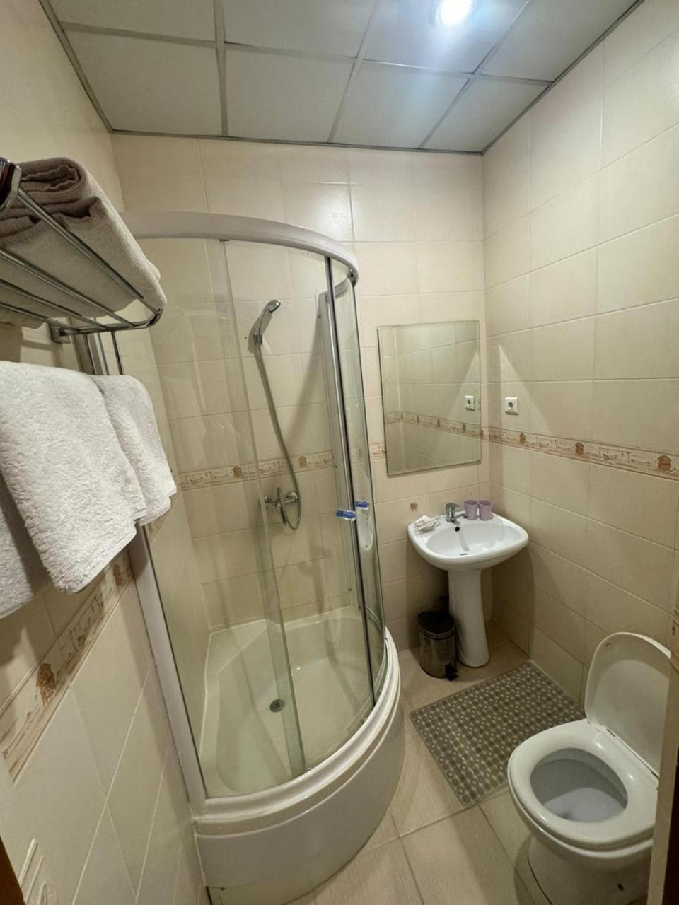It was an old hotel with old, not well maintained furnitures; very poor quality of the material that were available in the room and not special facilities for that amount of money they charged us, there was no wifi in the room and when I asked they didn't even bother themselves to check what the problem is. They didn't clean the room properly before we go, toilet was dirty, the toilet brush was full of water, trash like tickets and candy cover of previous stay was next to the bed on the ground, there was not hot water in the room as they didn't turn on the heater before give me the key, and my kid catch cold as she couldn't wash herself after being in the lack for 3 hours, even hair dryer didn't work to comfort her a little bit. There was bad smell of restaurant every where that made us unhappy and uncomfortable to even try their breakfast. Administration didn't even accept to give me some discount after all that has happend in their hotel. Although they were categorized as hotel in website and also there was written "Hotel Alma Ata" on their bussiness cards, they shamelessly said we are not hotel that you expect us hotel services. I NEVER recomend this hotel to anyone.