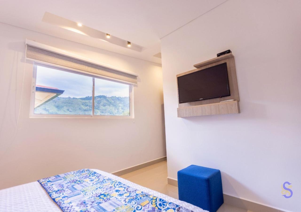 Hotel Sinaí SV in Macanal offers beautifully appointed rooms with modern amenities such as air conditioning, flat-screen TVs, and stunning mountain views from private terraces. Guests can enjoy a comfortable stay with plush bed linens, towels, and convenient minibars in every room.