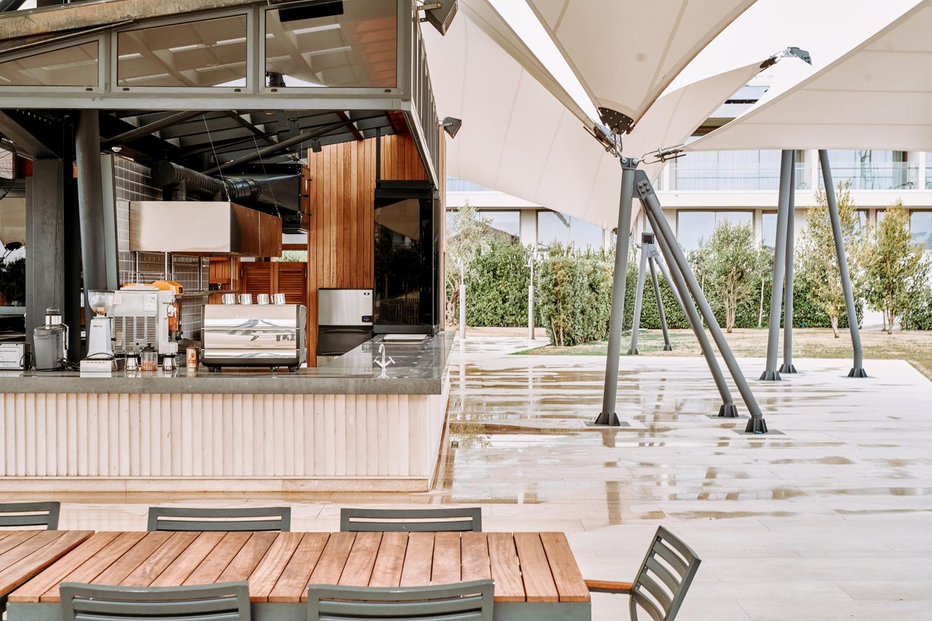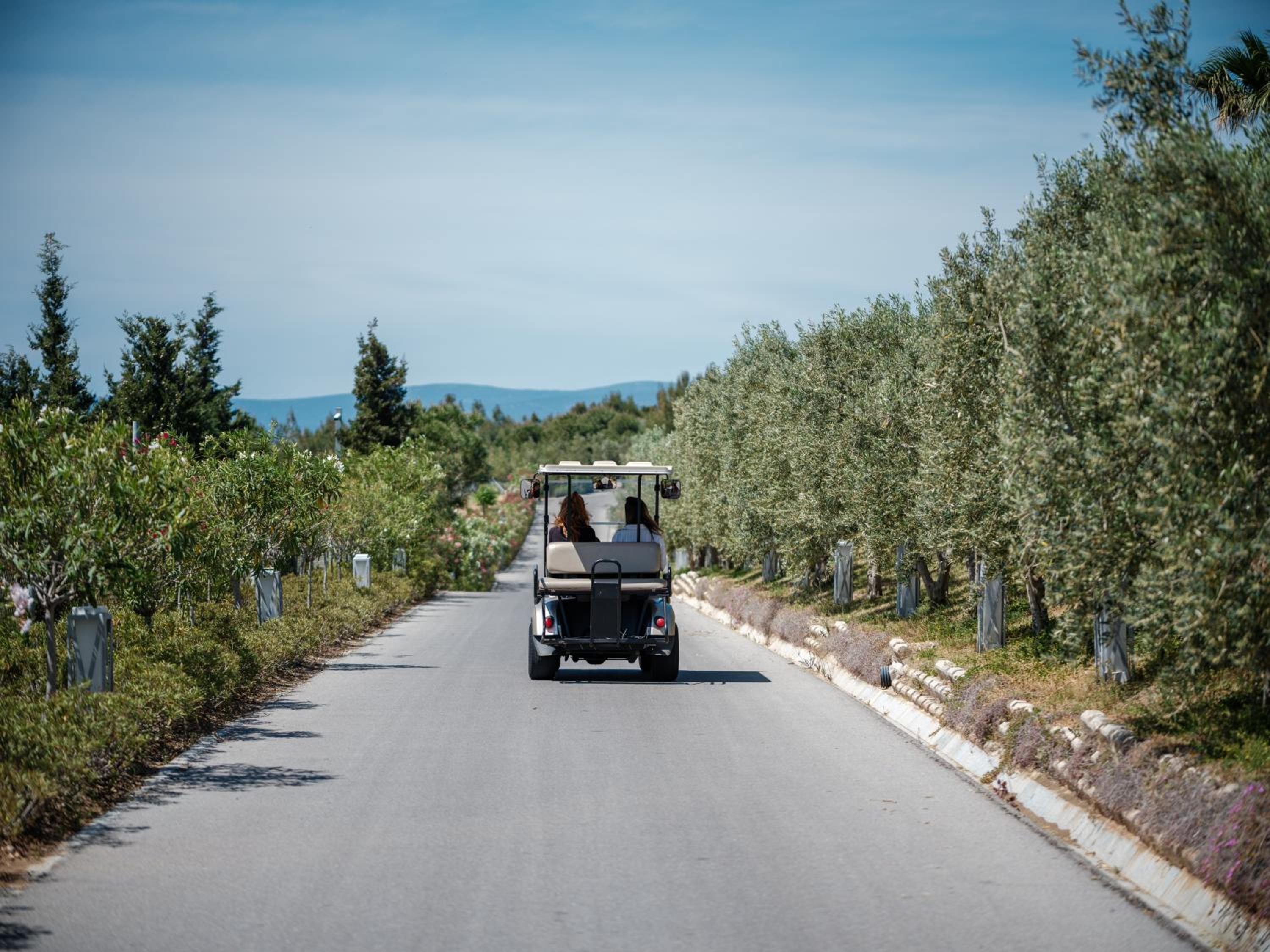 Facilities quite far apart so buggy is needed (€100 a day a little expensive). Larger selection of tea and coffee in room would improve experience :)