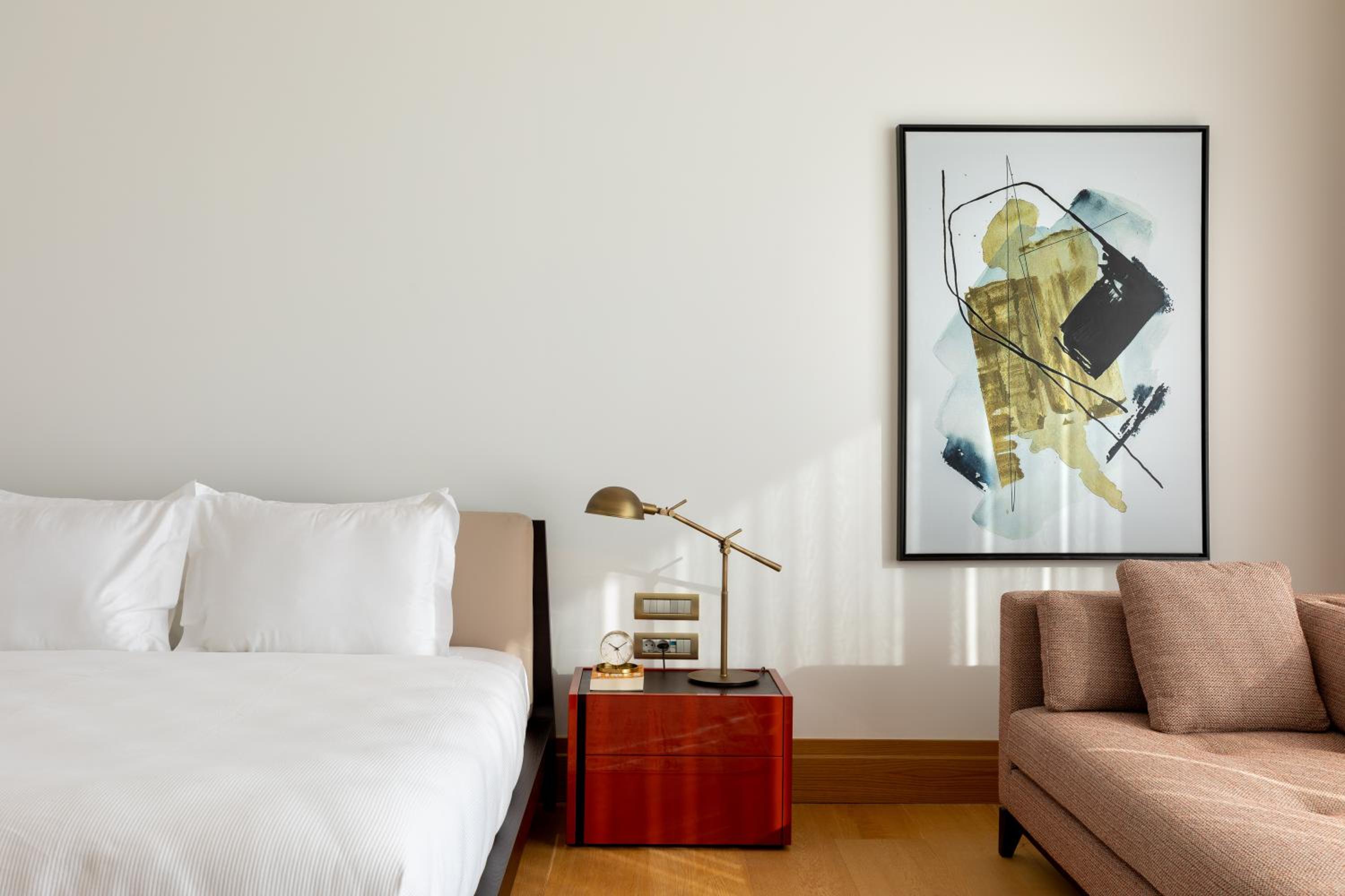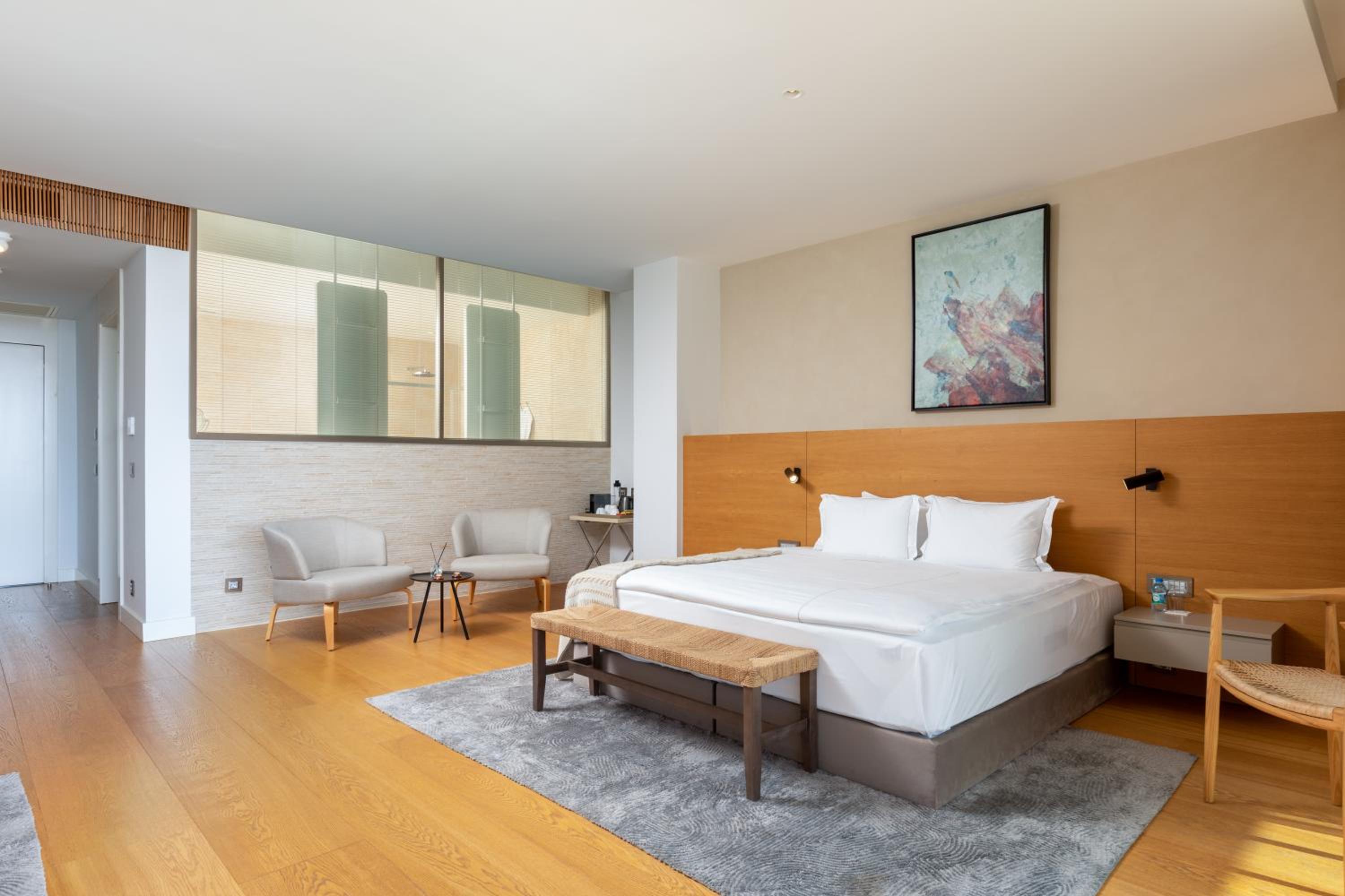 The rooms are great and big enough. The bed was feeling like sleeping over clouds. If you want to have a morning coffee the terrace of the room was big and the view was really nice. I cannot share enough compliments about the gym that is located in the hotel. The team was helpful and made the stay enjoyable.