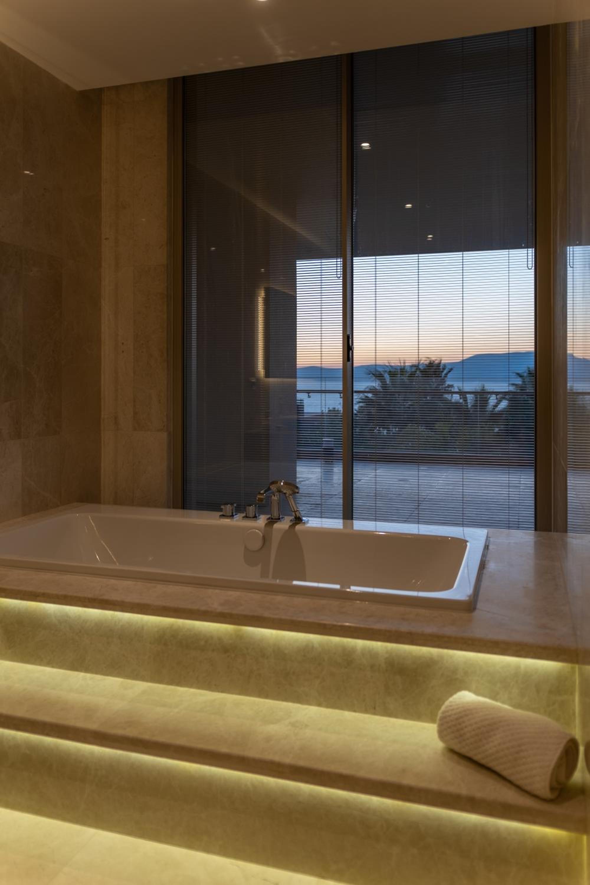 The customer service is absolutely fantastic, everyone was so kind and always communicated well, they also called the local Chios ferry to inquire about times, the people go really over and beyond; the heated bathroom floors were a nice touch and the rooms were modern and clean. Gym had all the right equipment as well, and there is a lovely dock where you can swim in the turquoise waters effortlessly.